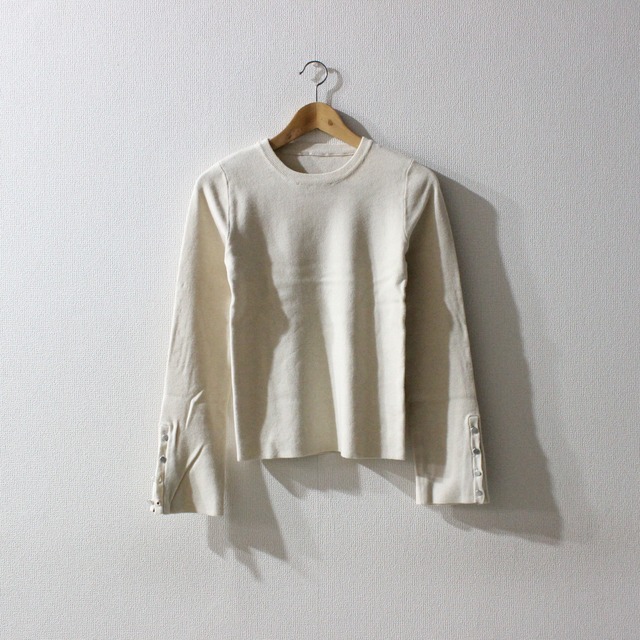 サイズ F(M-L) 着丈55.5㎝(最長部) バスト約69㎝ 袖長さ約63㎝ 腕回り約27㎝ 伸縮性はあります。 透け感はほとんどありません。 ひっかけにご注意ください。 平らなところで平置きにして図っています。 状態により、数値に若干の誤差がございます。 実際に近い色合いに撮影していますが 若干の違いが生まれることがございます。 カラー アイボリー グレー 素材 レーヨン52% ポリエステル29% ナイロン19% 原産国 中国 袖の配色がポイントのニットトップスです。 大胆な切り替えが目を惹くフレアスリーブ。 袖口に施したボタンを開けると、鮮やかなカラーが覗き、着こなしに遊び心をプラス。 コンパクトな身頃とのバランスで、スタイルアップも叶う一枚です。 モード感のある着こなしからカジュアルなデニムスタイルまで、幅広く活躍します。 モデル身長約154㎝