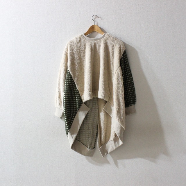 サイズ 1(S~M) 着丈前約50㎝後ろ約95㎝ バスト約120㎝ 袖長さ約47㎝ 腕回り約36㎝ 伸縮性は少しあります。 透け感はほとんどありません。 ひっかけにご注意ください。 平らなところで平置きにして図っています。 状態により、数値に若干の誤差がございます。 実際に近い色合いに撮影していますが 若干の違いが生まれることがございます。 カラー ベージュ カーキ ブラック 素材 本体 ポリエステル100% リブ部分 綿95% ポリウレタン5% 格子部分 アクリル57% ポリエステル30% ウール8% レーヨン5% 原産国 中国 ふわっとしたボアと、立体感ある格子柄ニットを ドッキングした異素材テイルカットトレーナー。 裾はテイルカットデザインで 動きに合わせて揺れる後ろ丈が印象的な一枚です。 ゆったりしたシルエットで、パンツにもスカートにも バランスよく合わせられ、レイヤードスタイルにも重宝するアイテムです。 モデル身長約154㎝