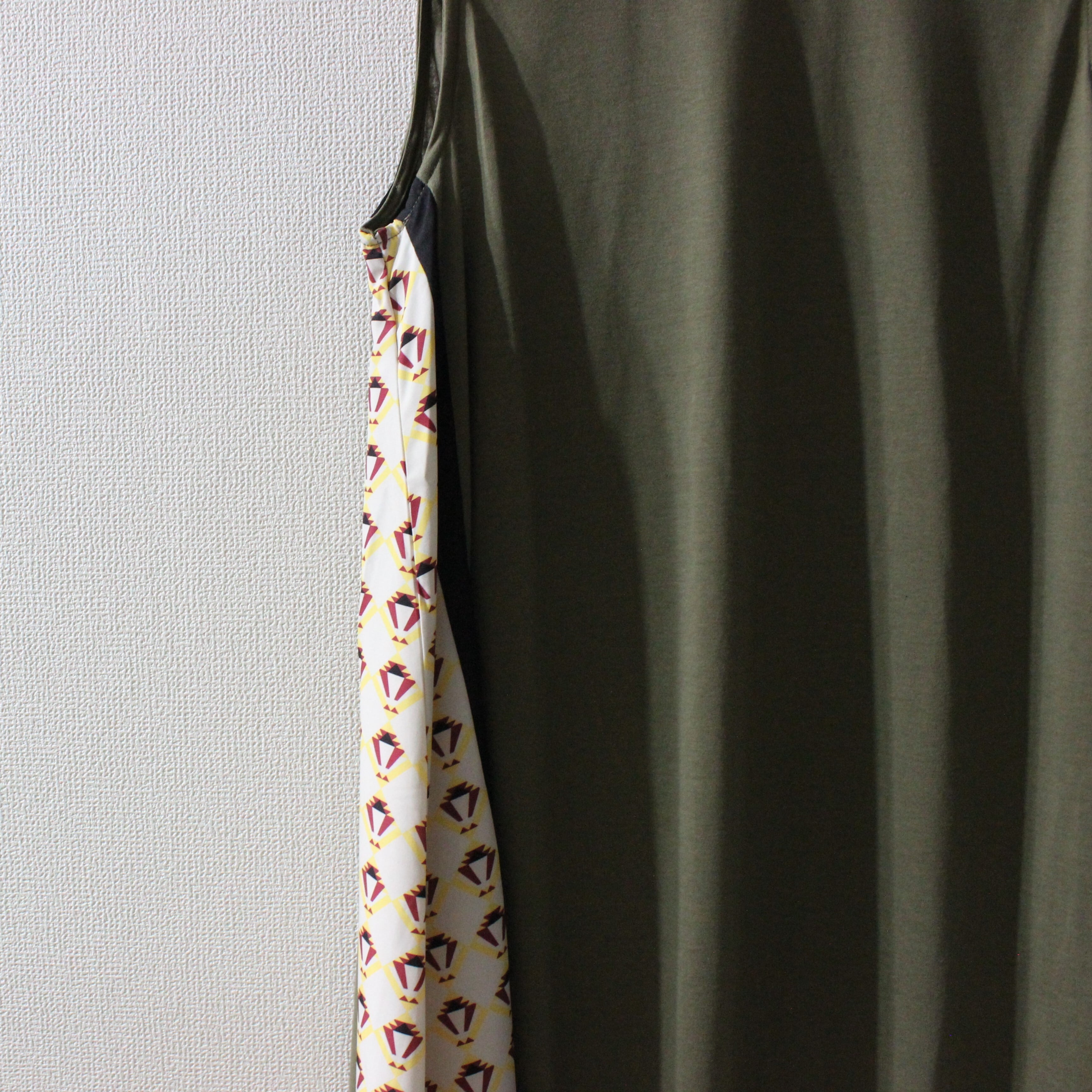 ふんわりAラインのシルエットにサイドの切替がアクセントのワンピース。