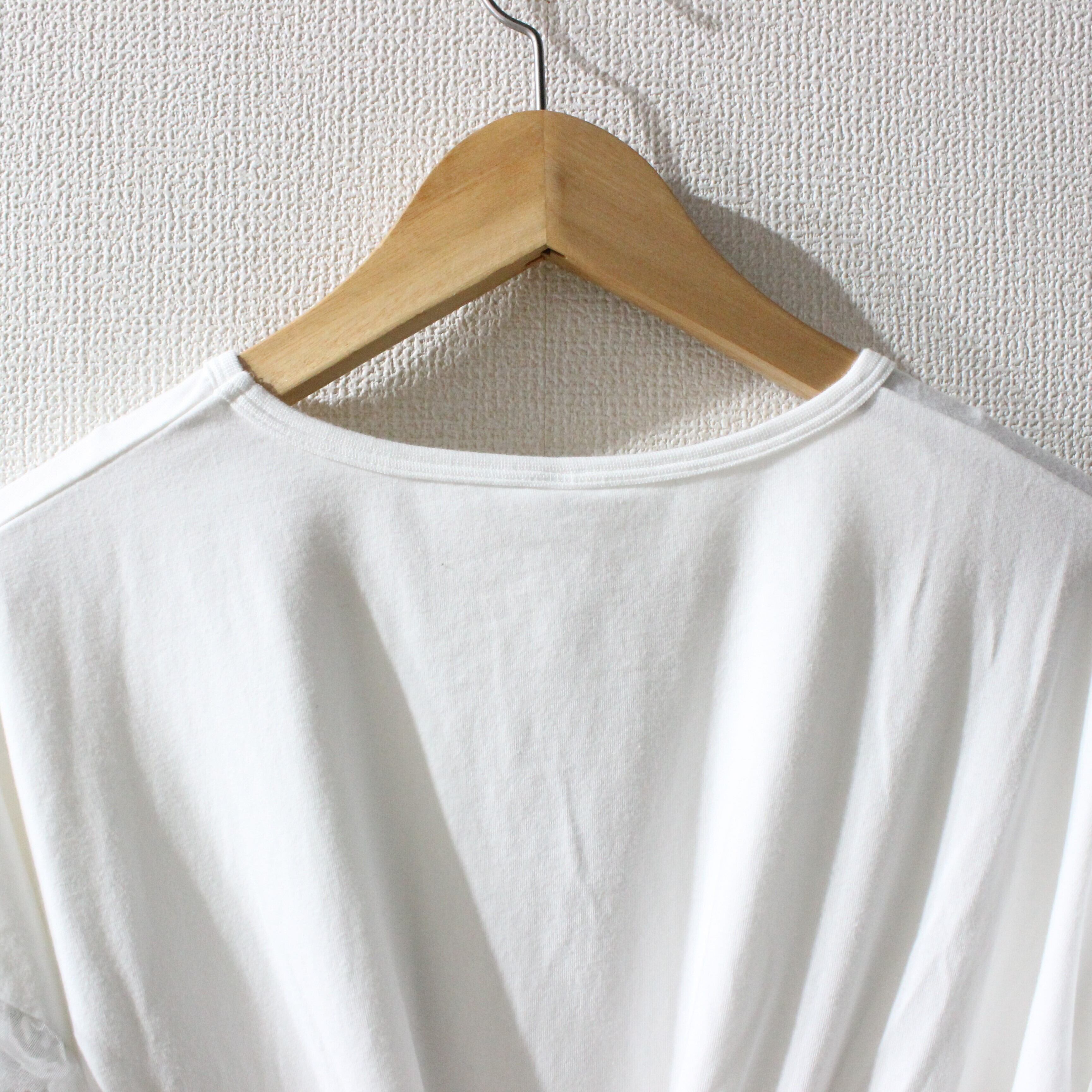 やわらかく肌ざわりの良いST天竺素材の身頃に、透け感のあるウェーブサークル柄の