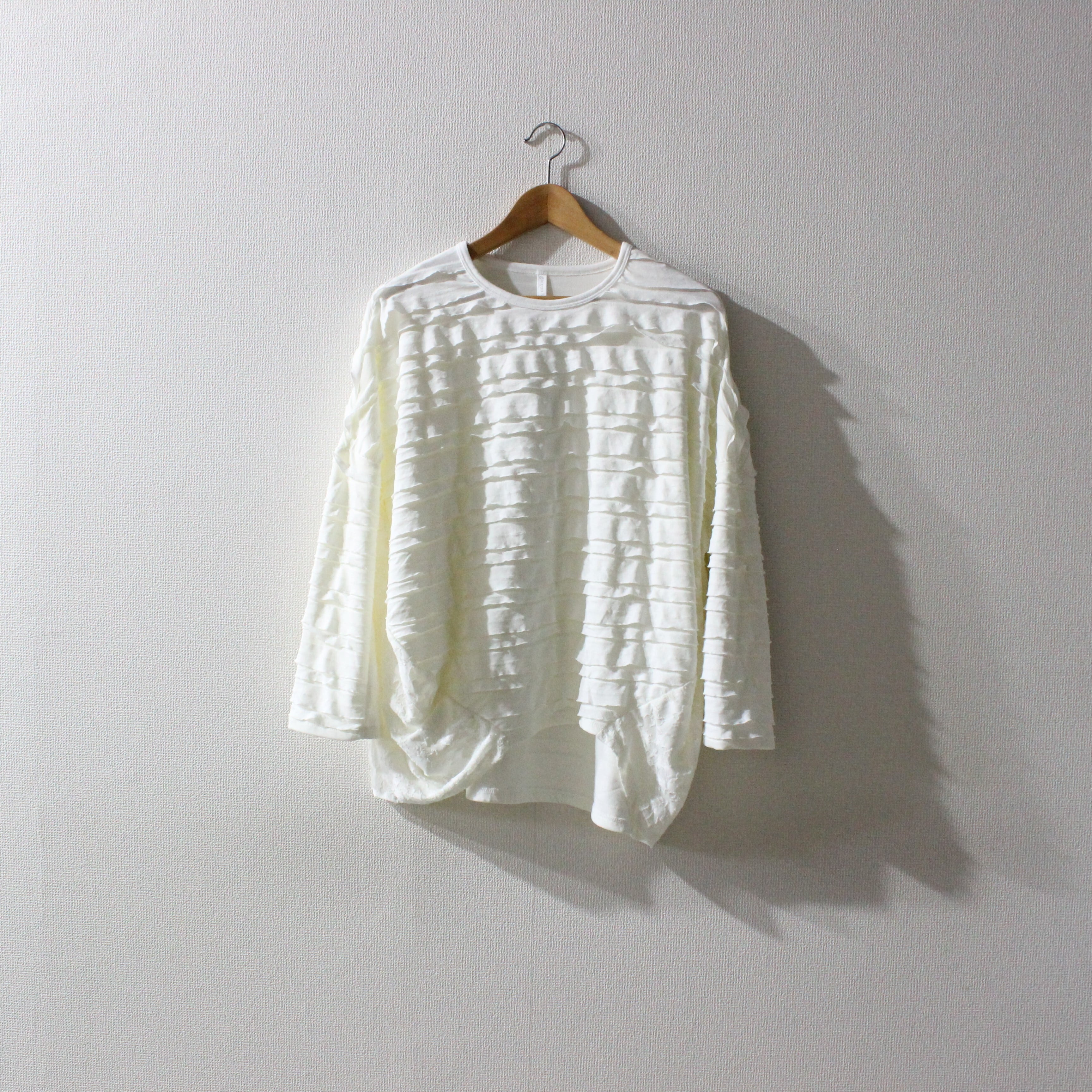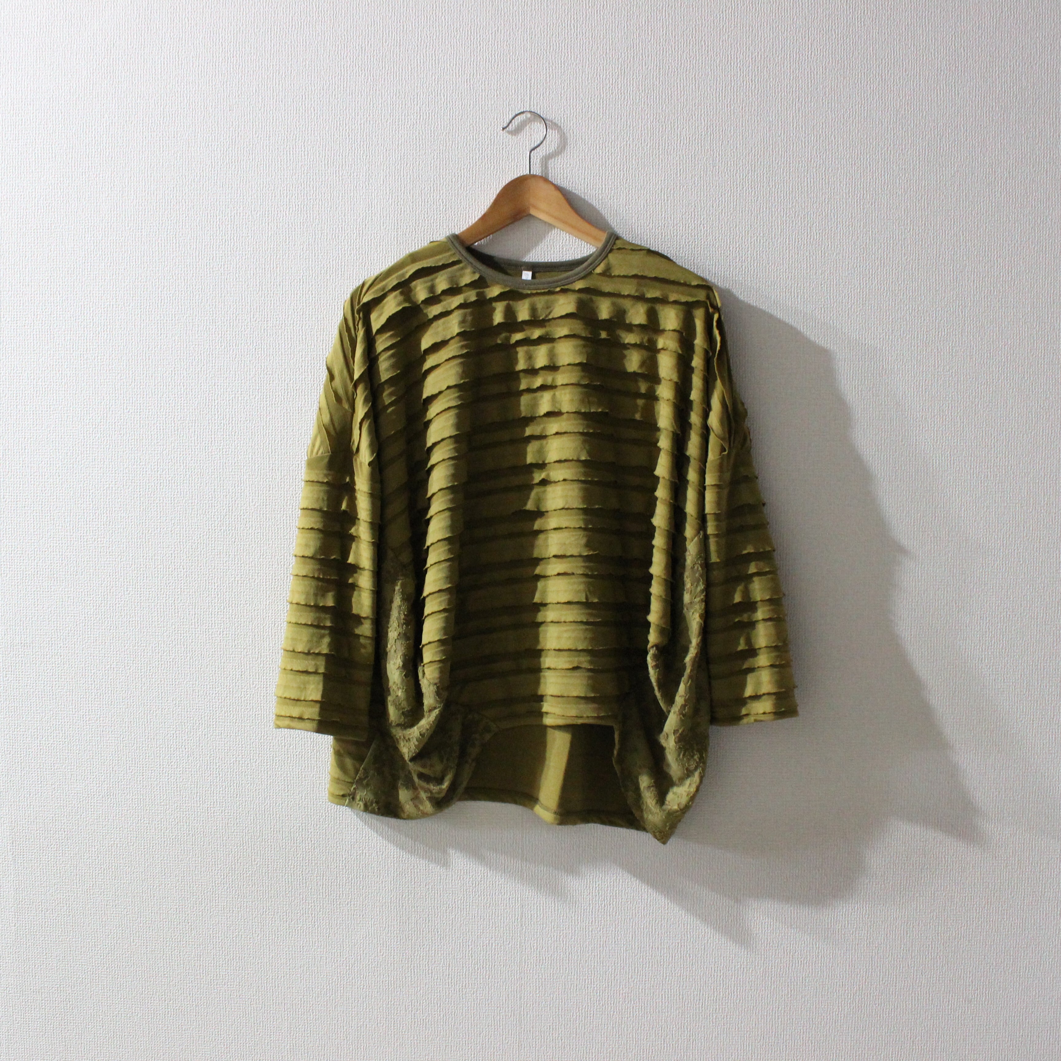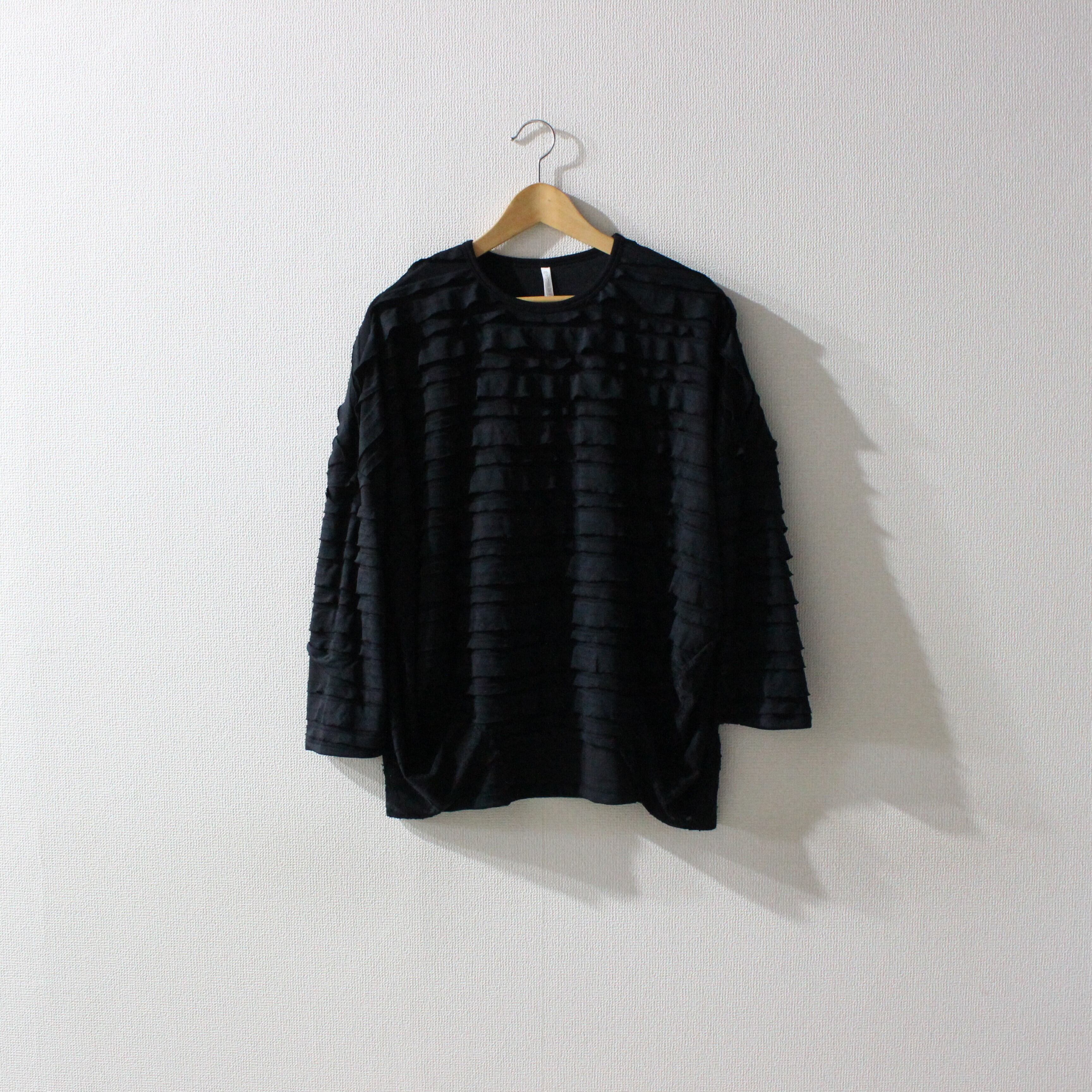 段々とした立体感が特徴の素材を全面に使用したバルーンシルエットのプルオーバー。