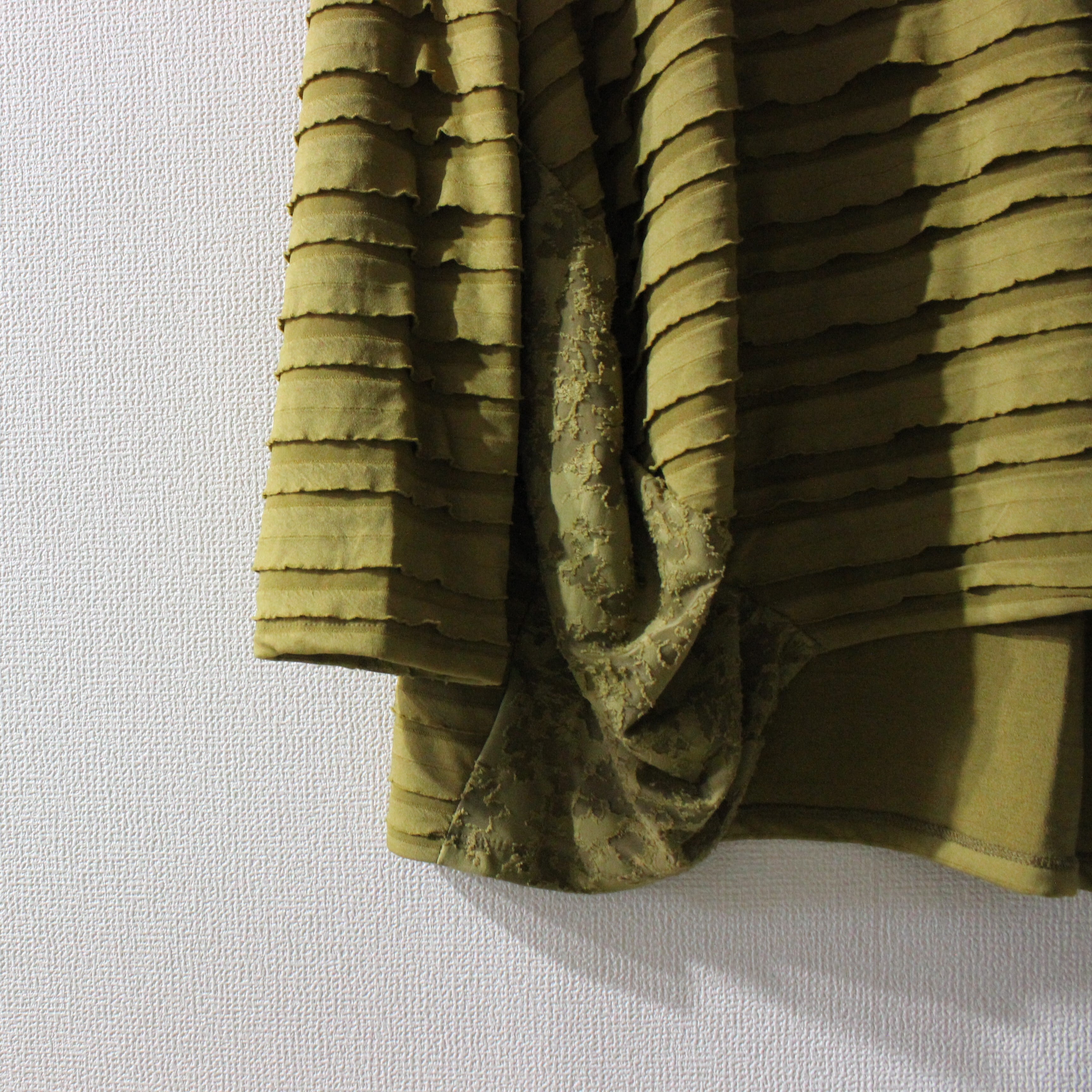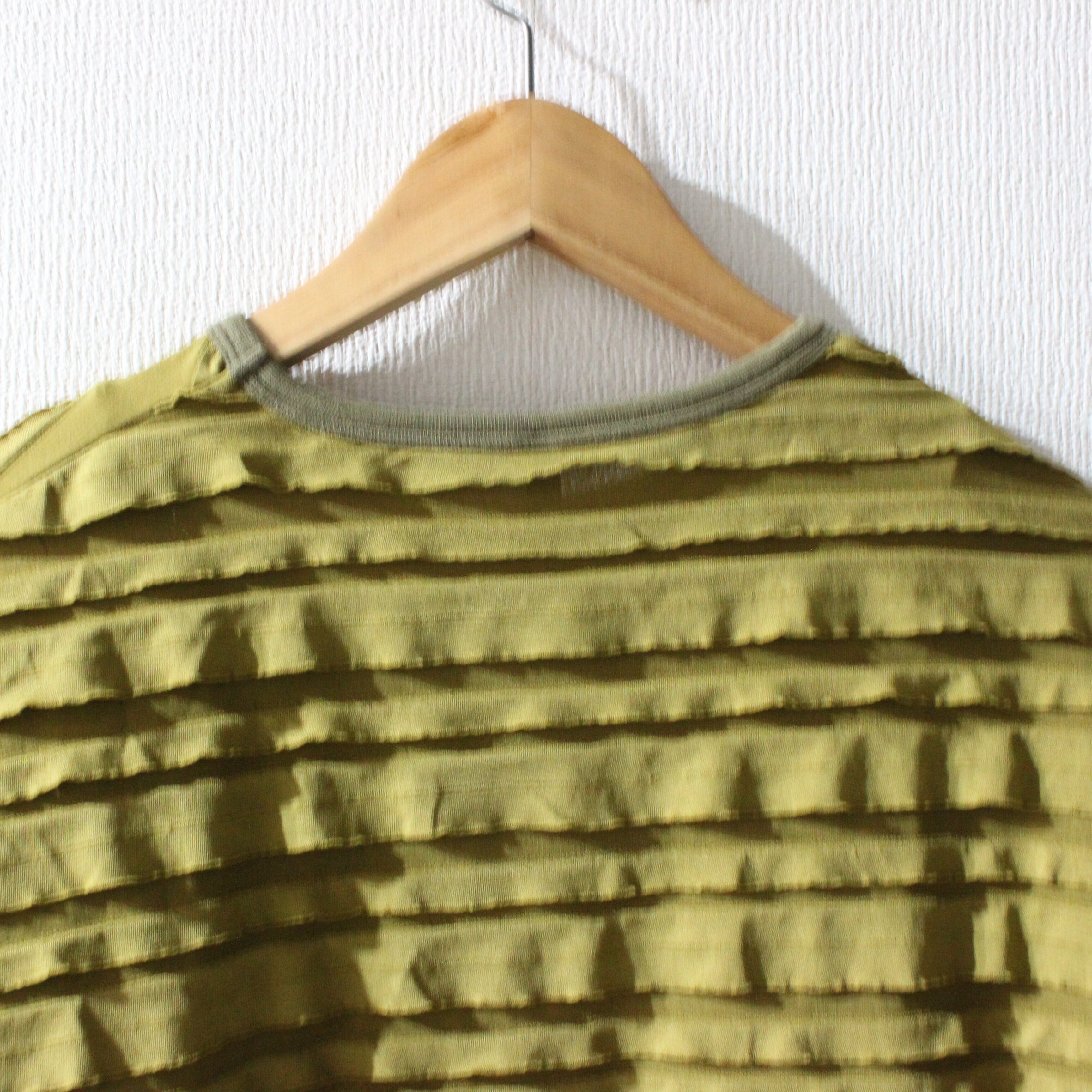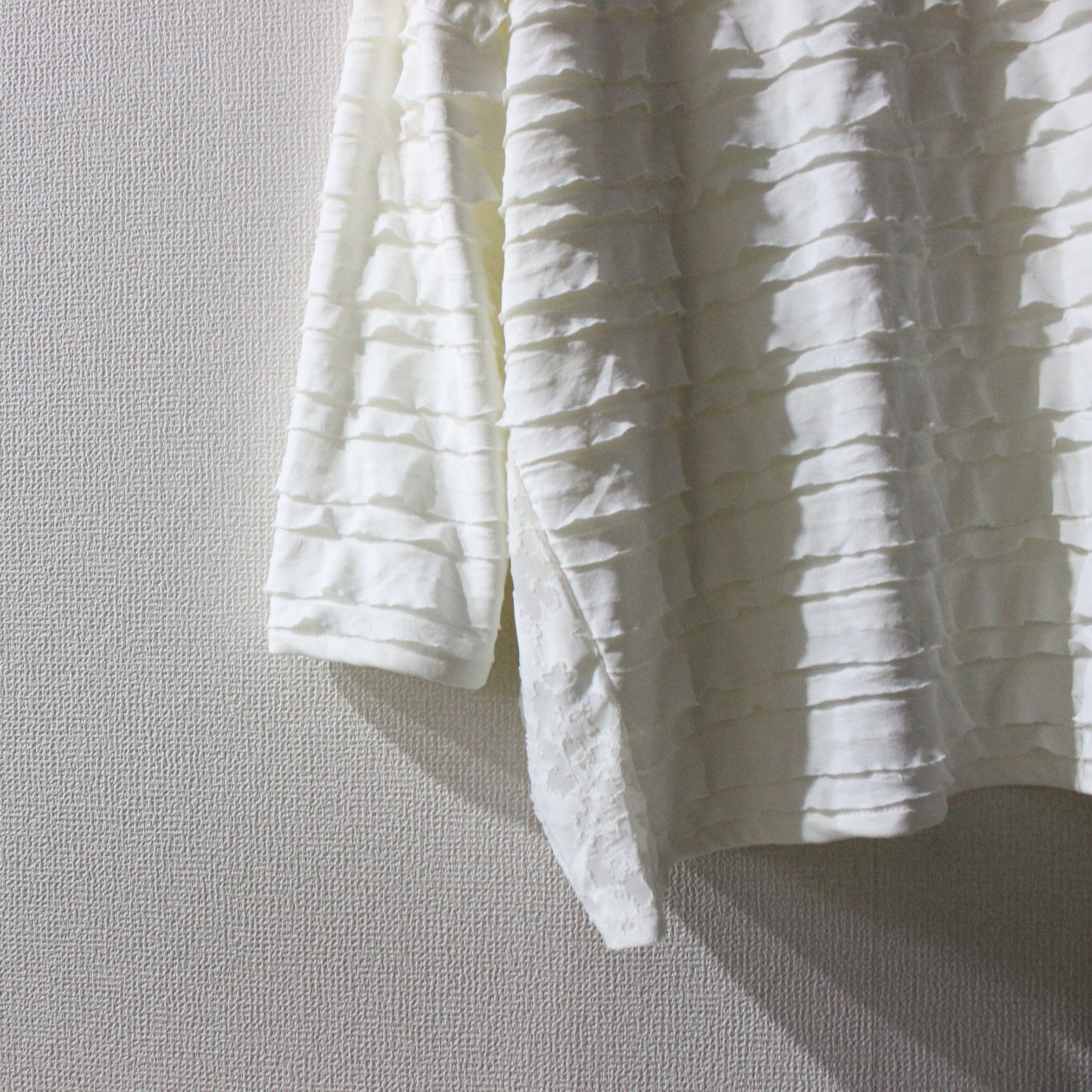 段々とした立体感が特徴の素材を全面に使用したバルーンシルエットのプルオーバー。