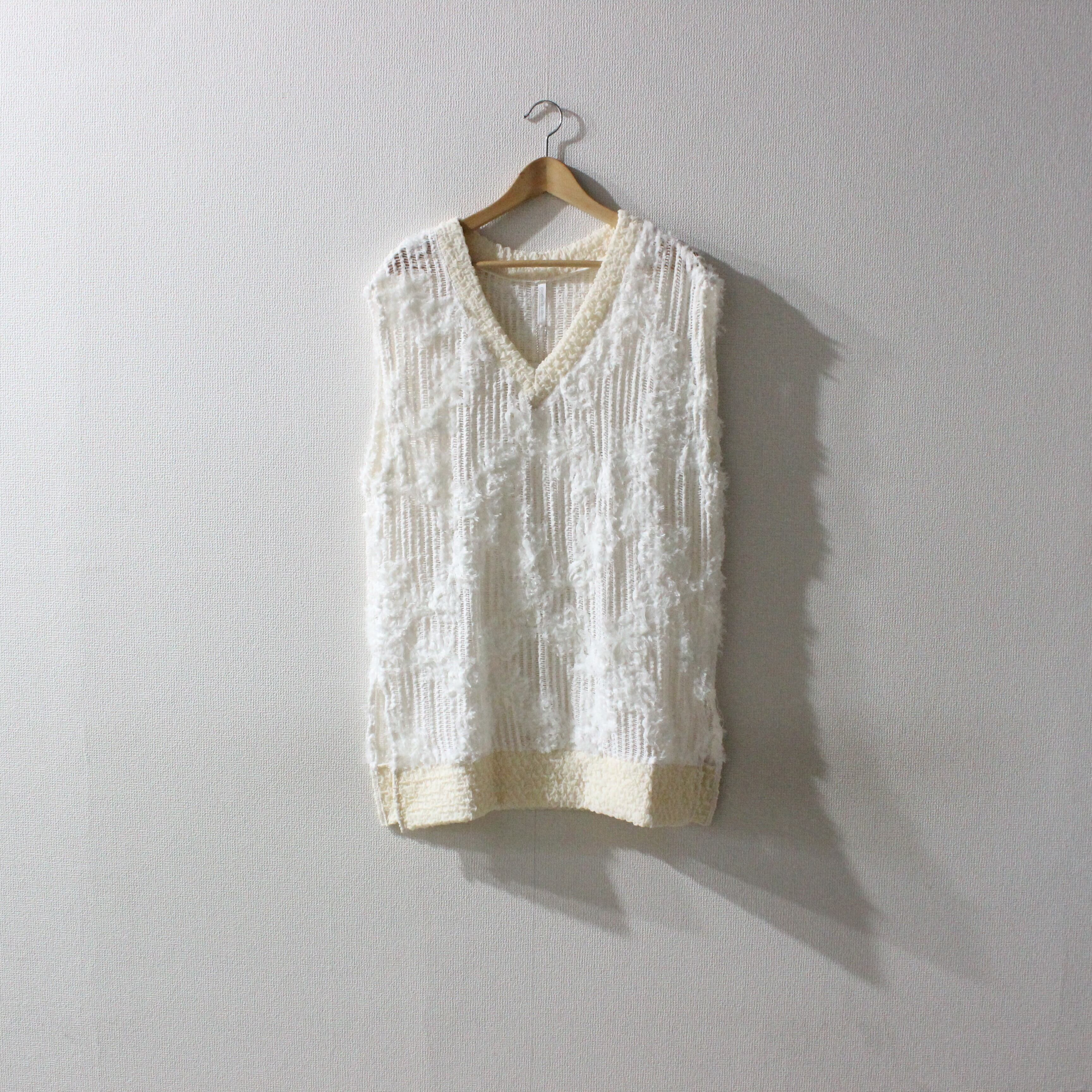 表情豊かなフリンジ刺繍が魅力のニットロングベスト。