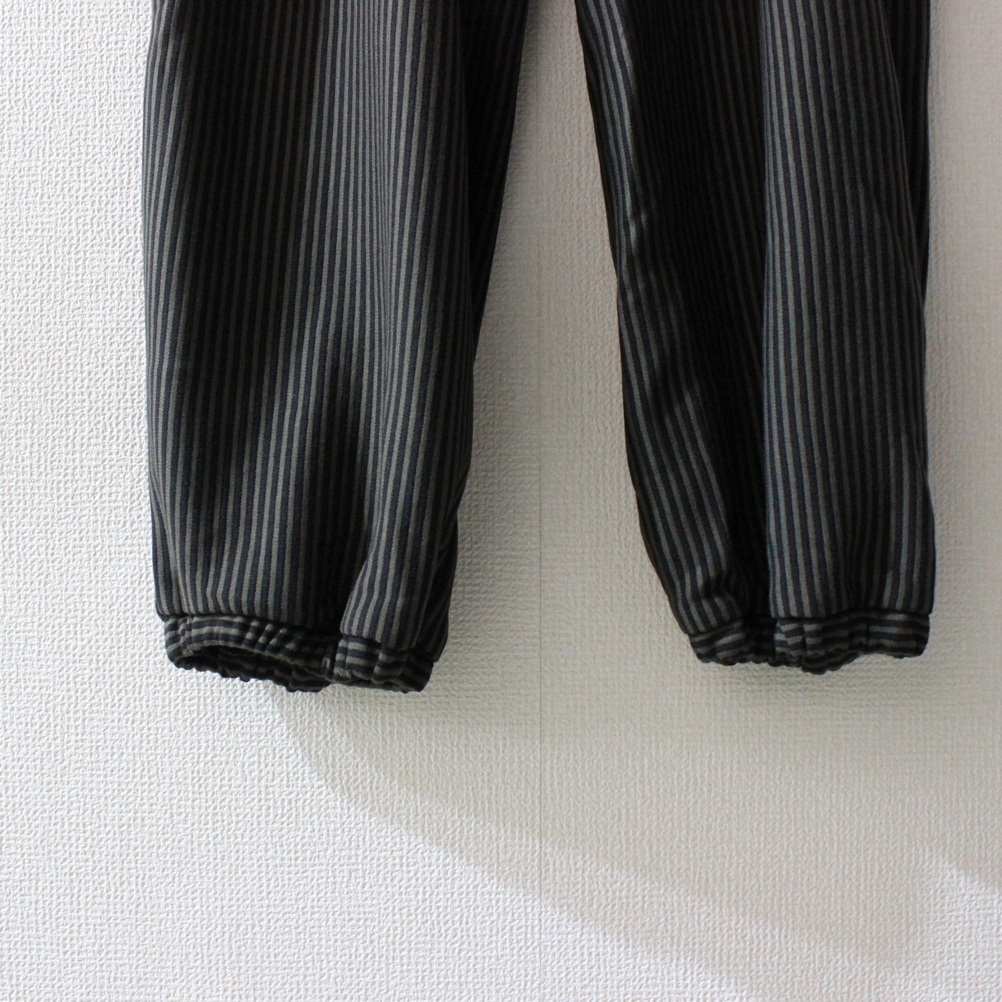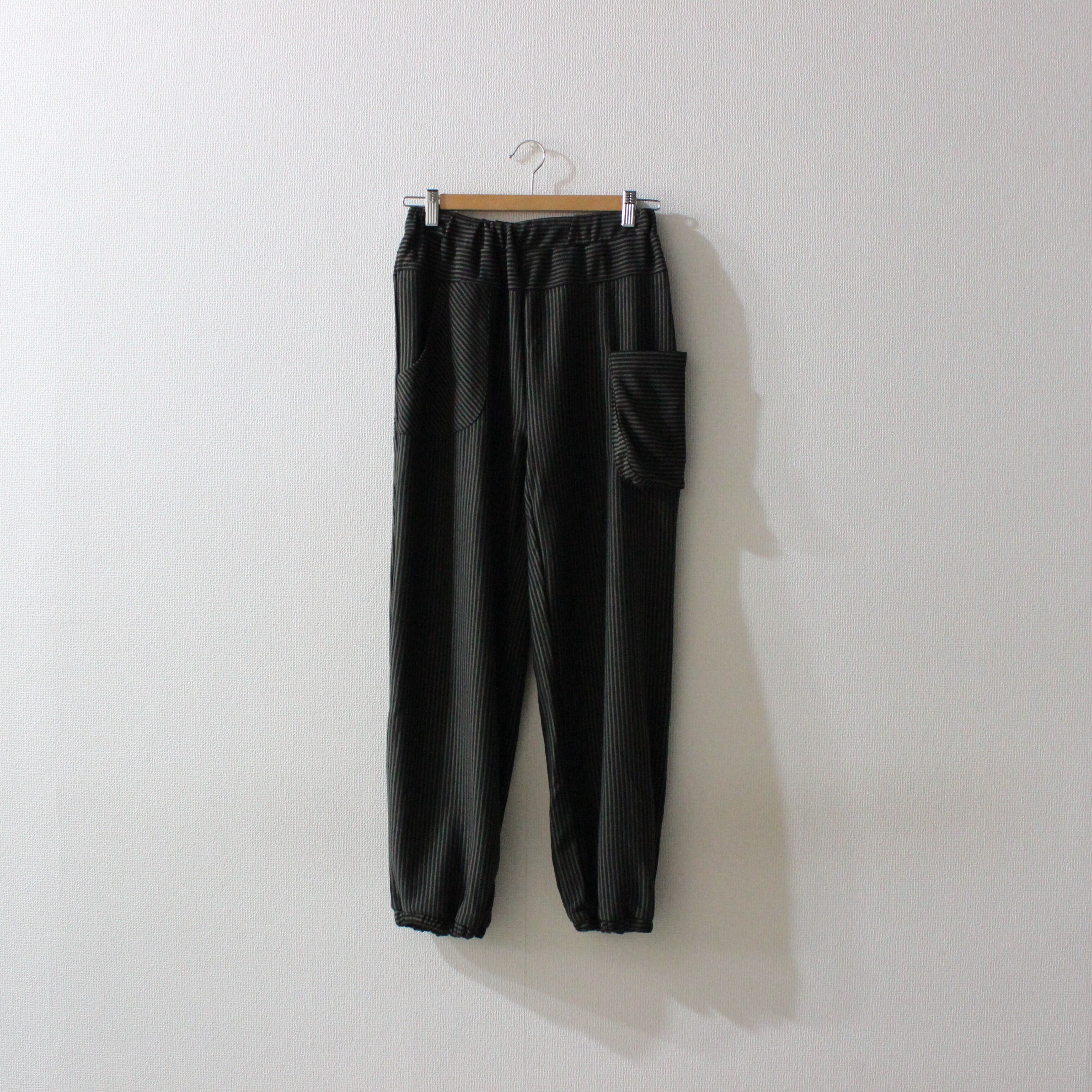ストライプに左右異なるポケットが印象的なジョガーパンツです。