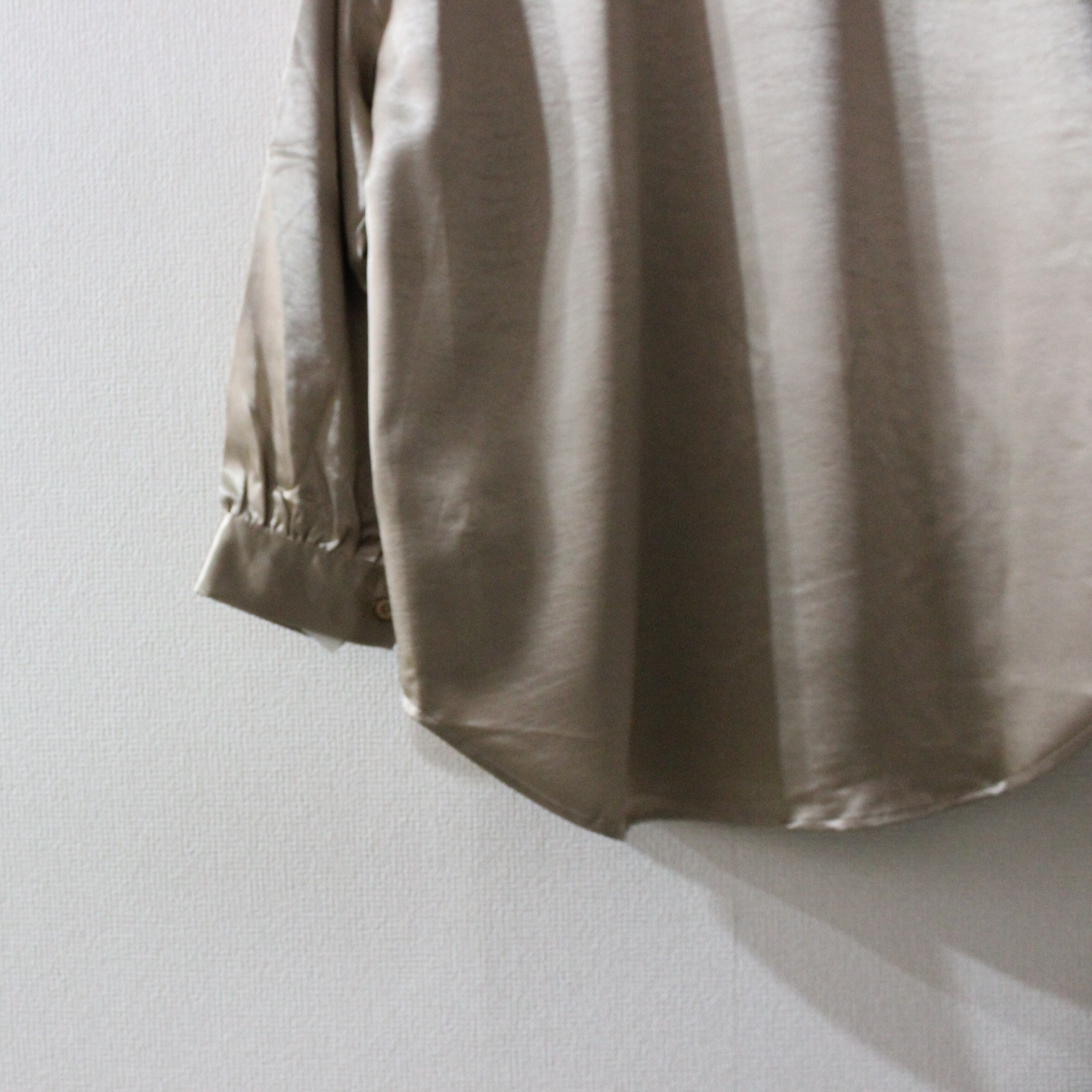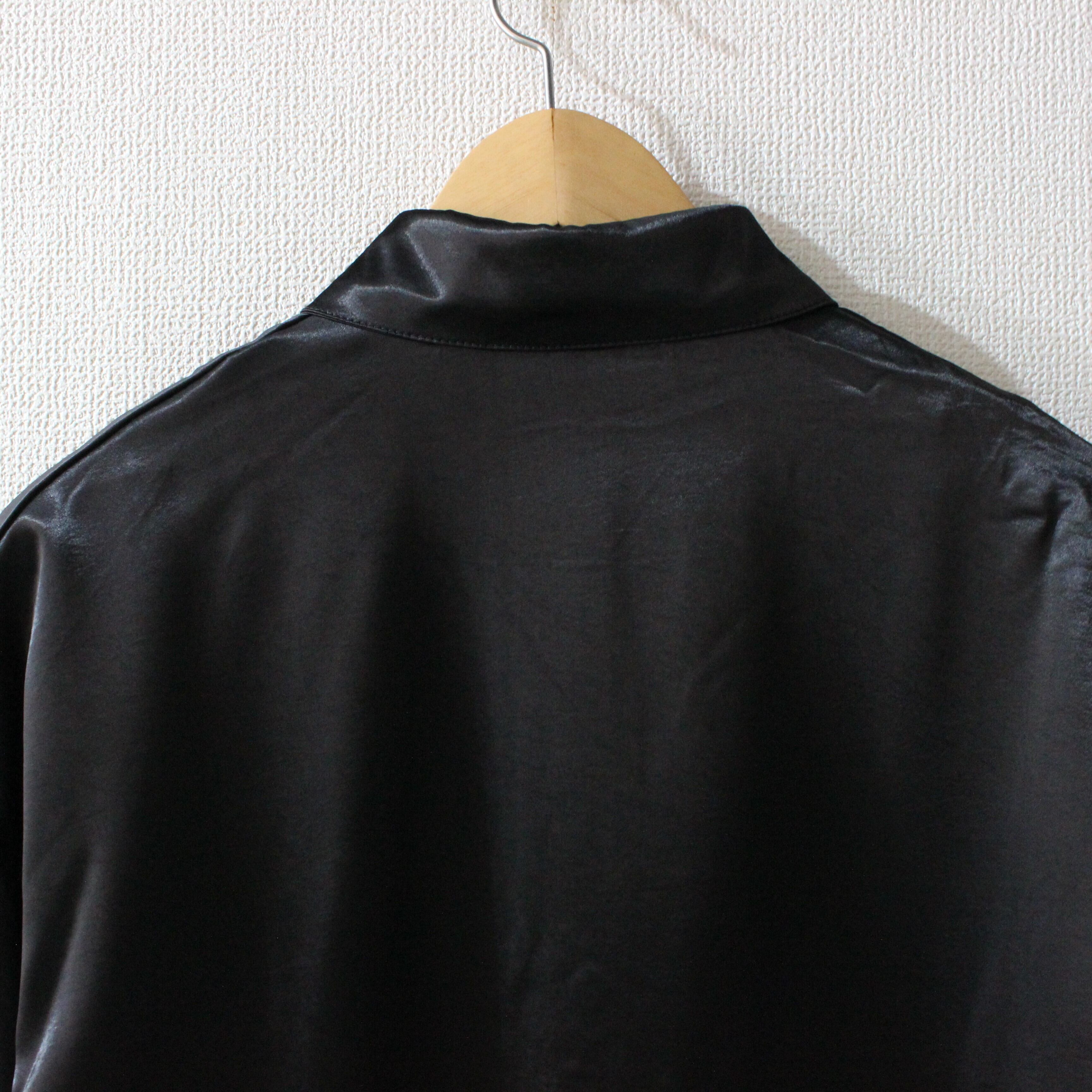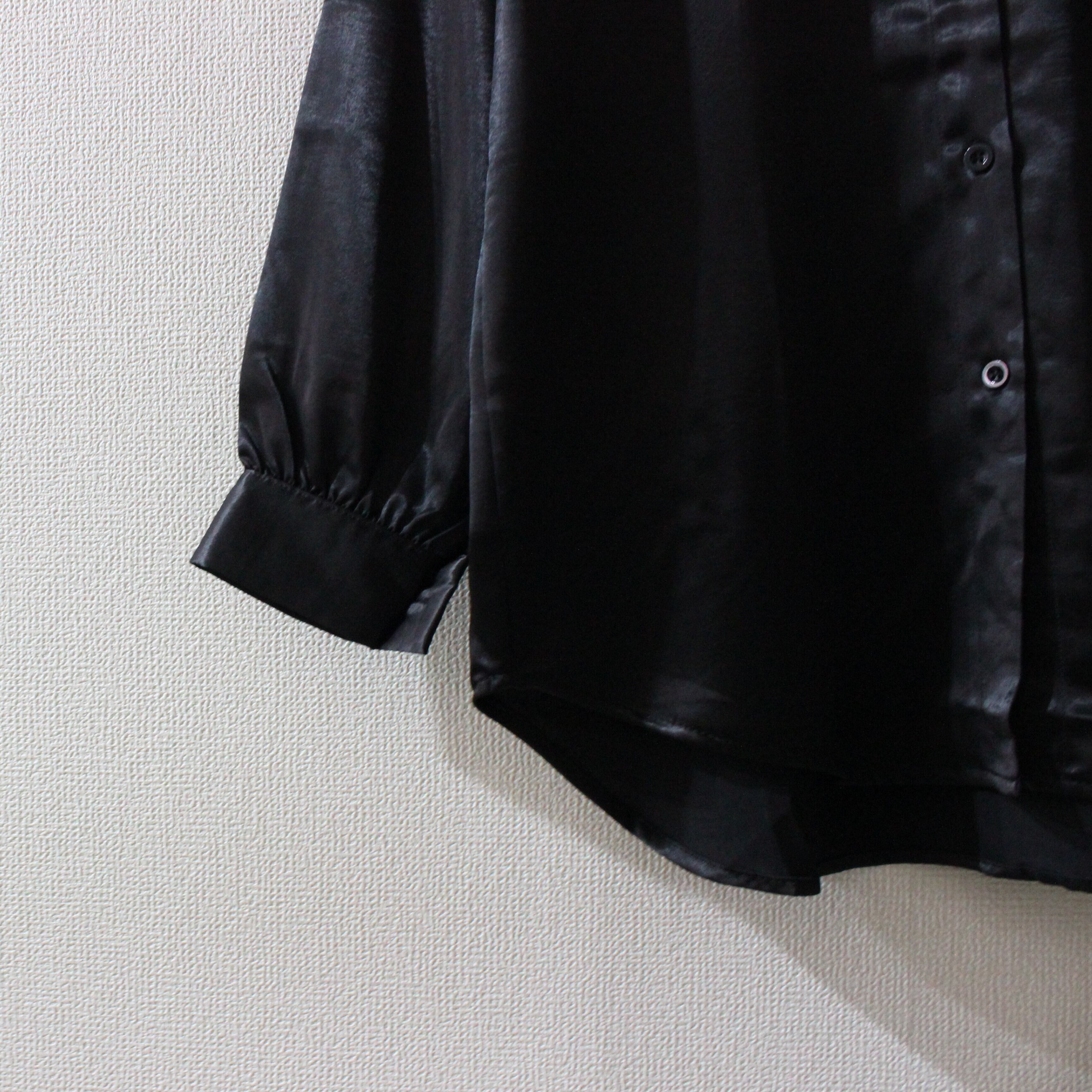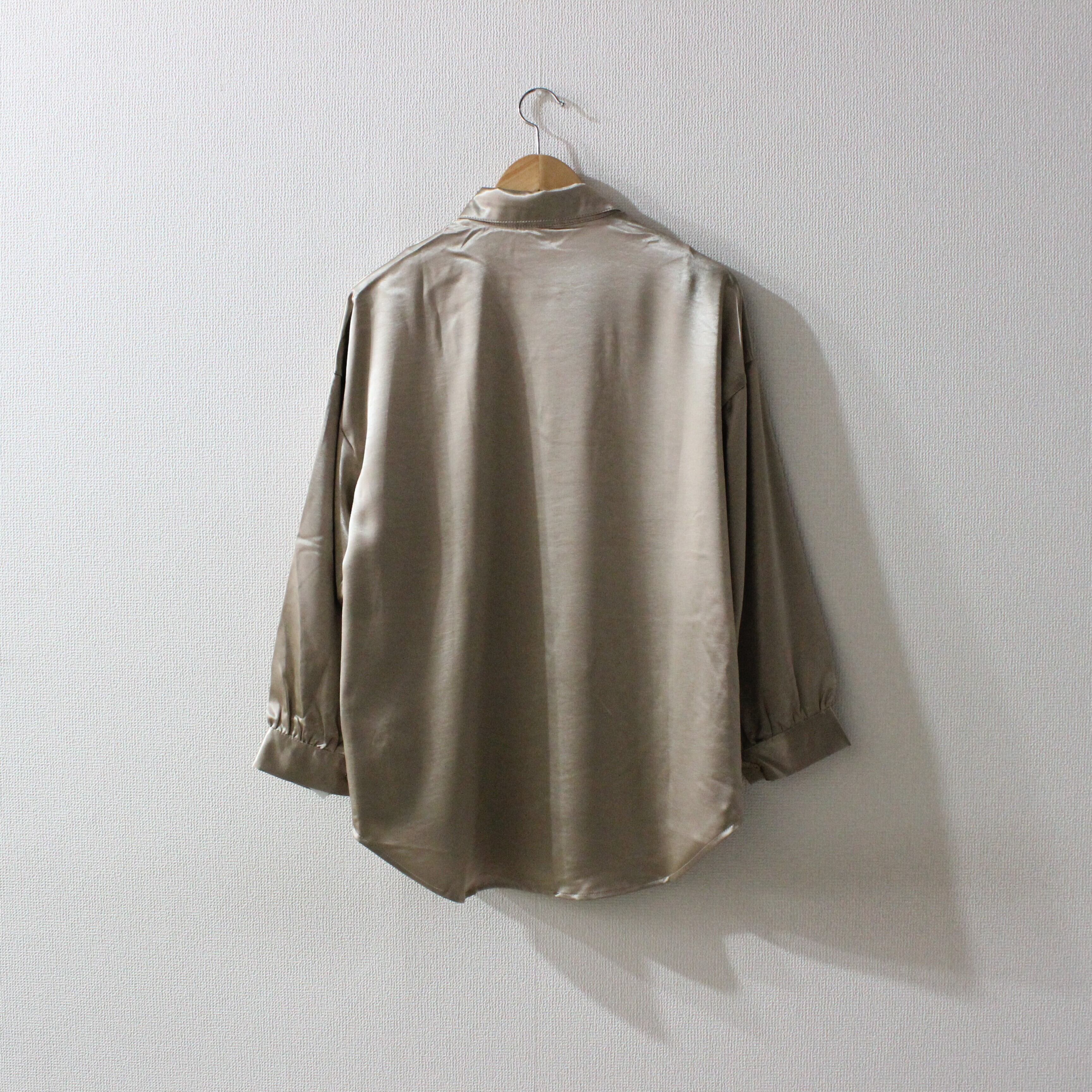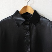 サテン調の光沢のある生地が上品なブラウスです。