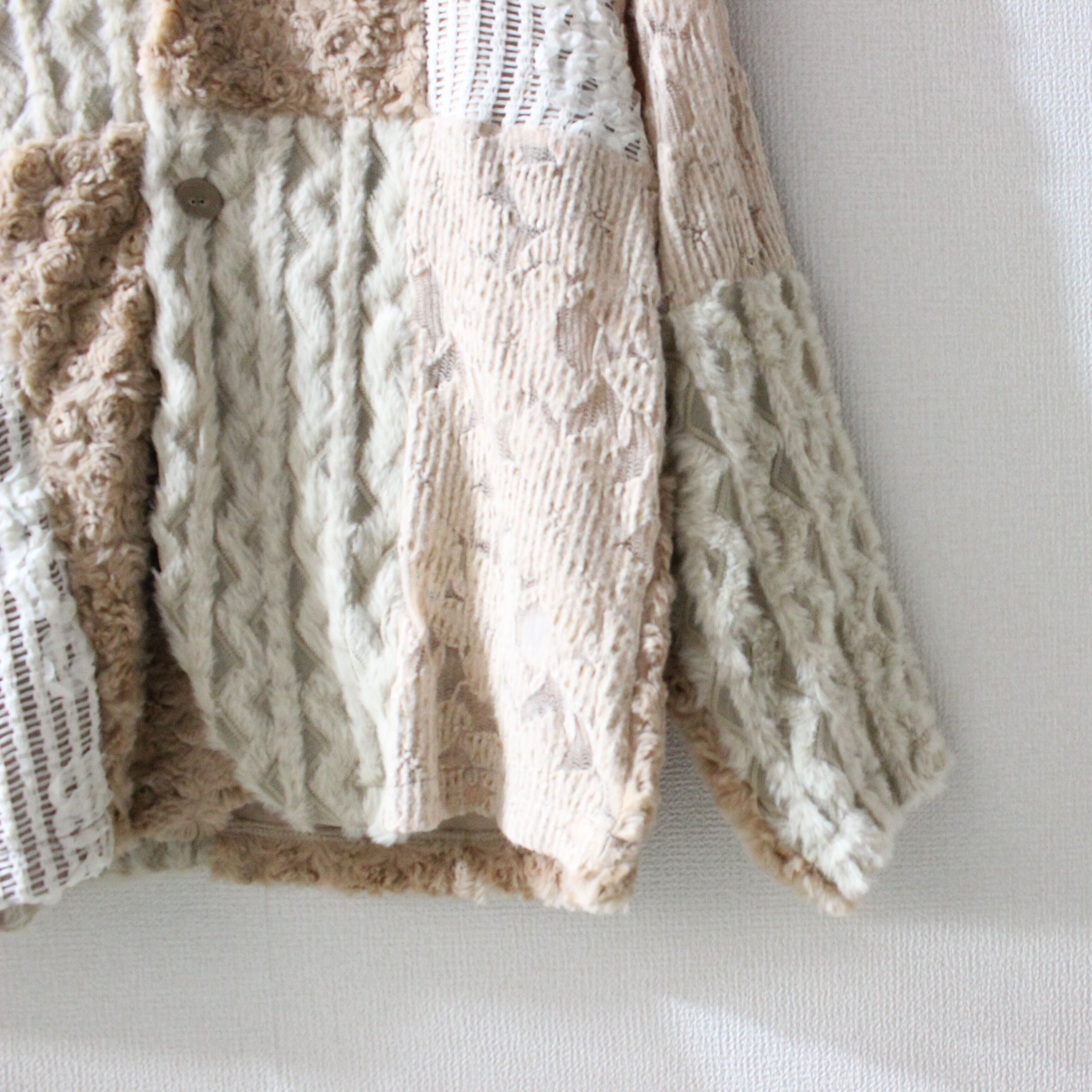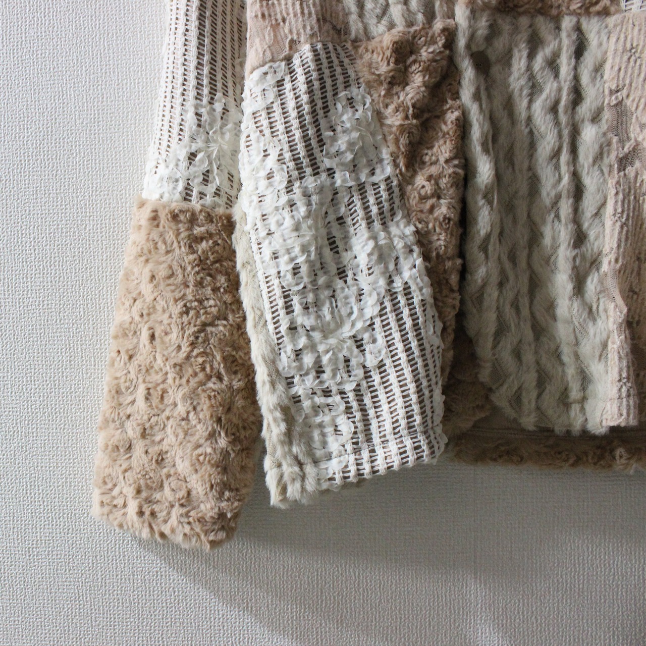 異なる素材を大胆にパッチワークし、ひと目で印象に残るデザインに仕上げました。