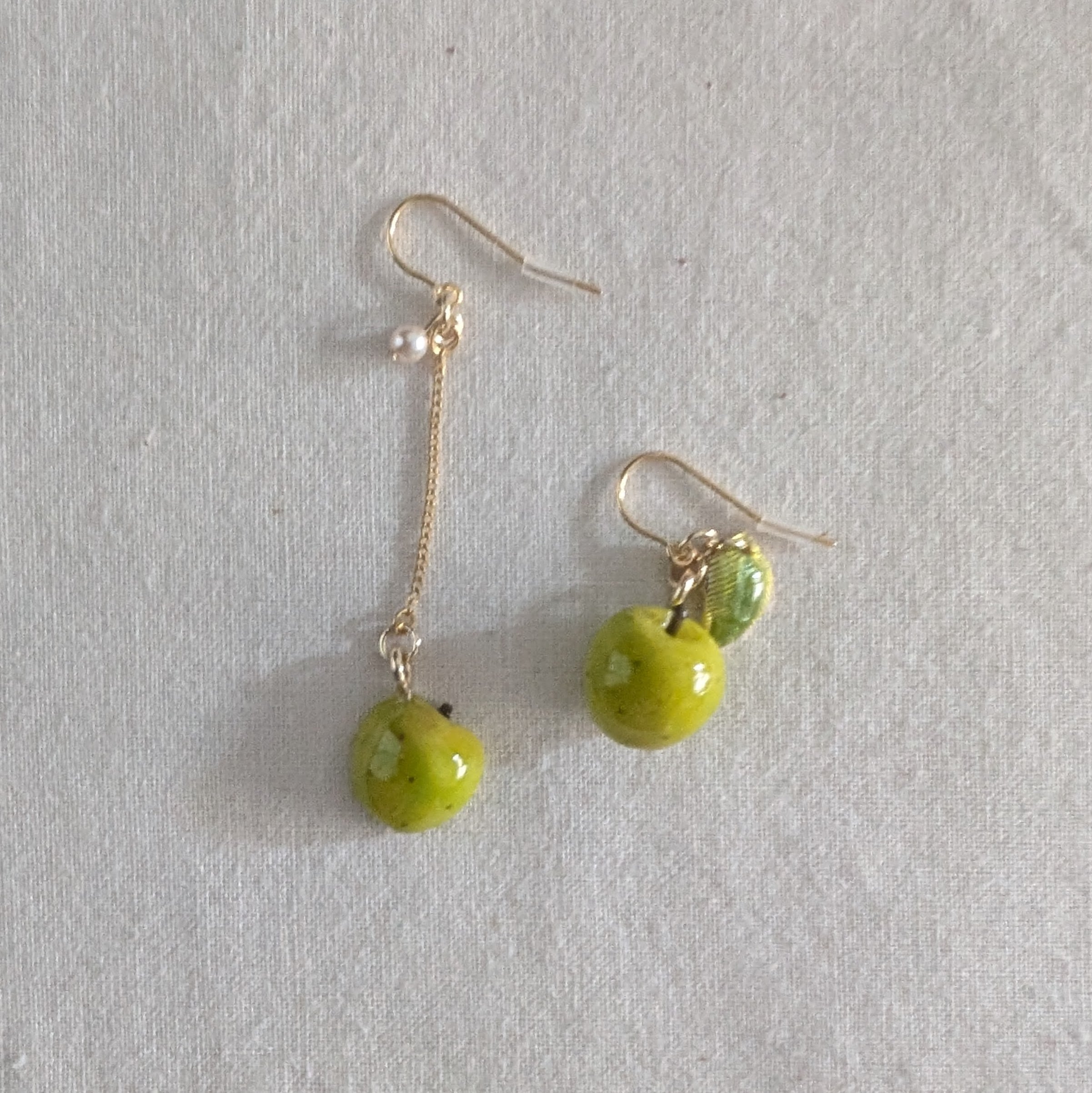 半分にカットされた青リンゴがとってもかわいいピアスです。
