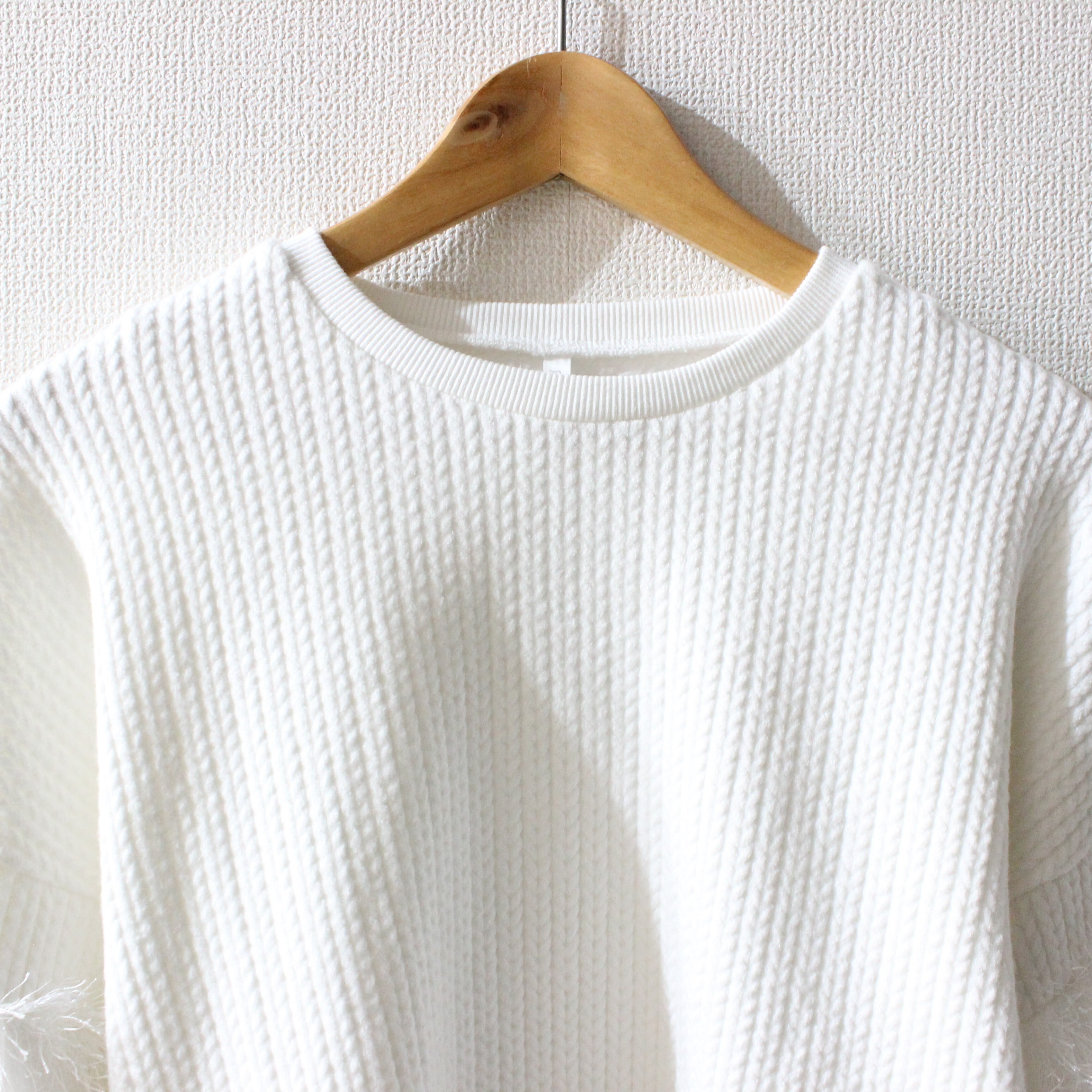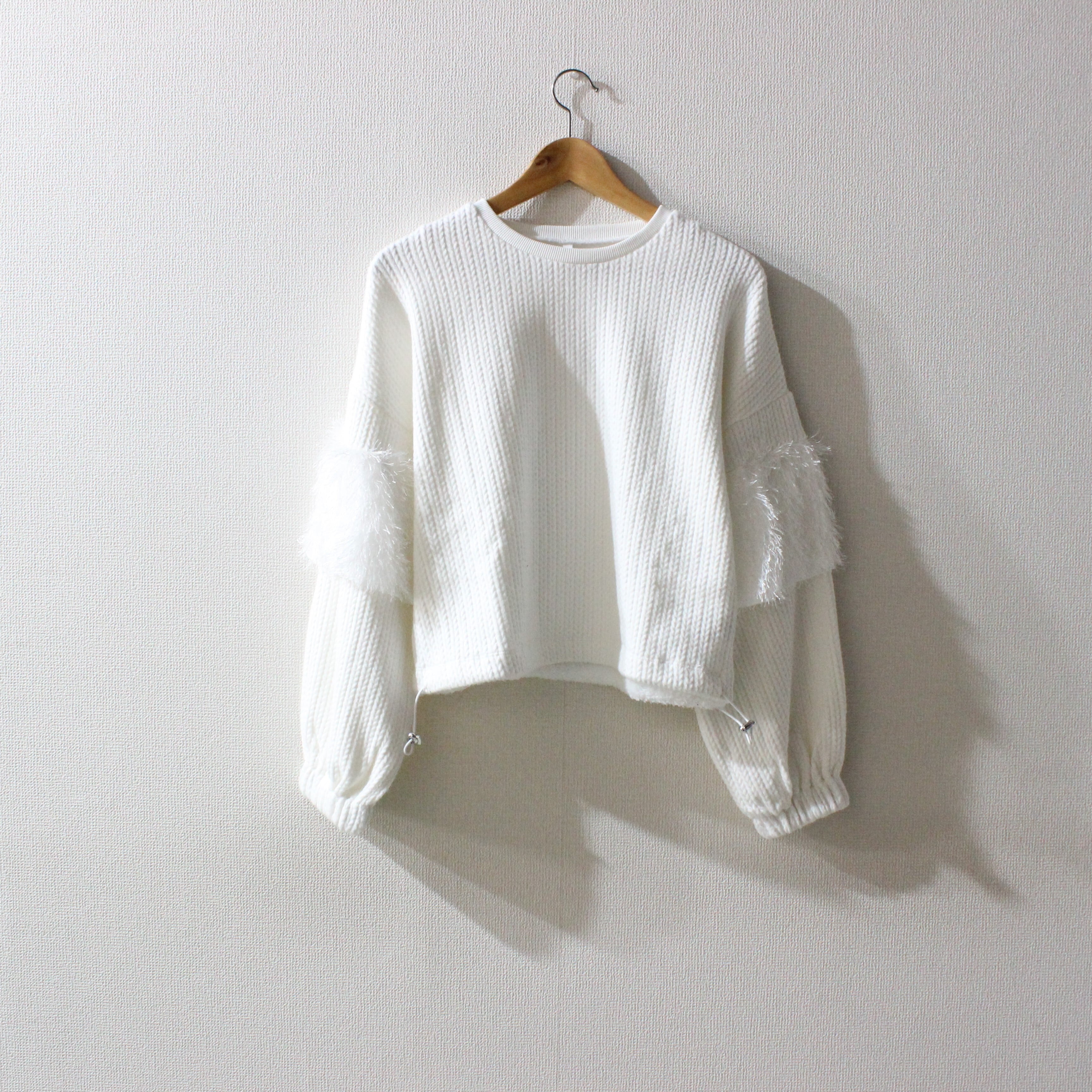 フリルが特徴的なフリルスリーブプルオーバー。