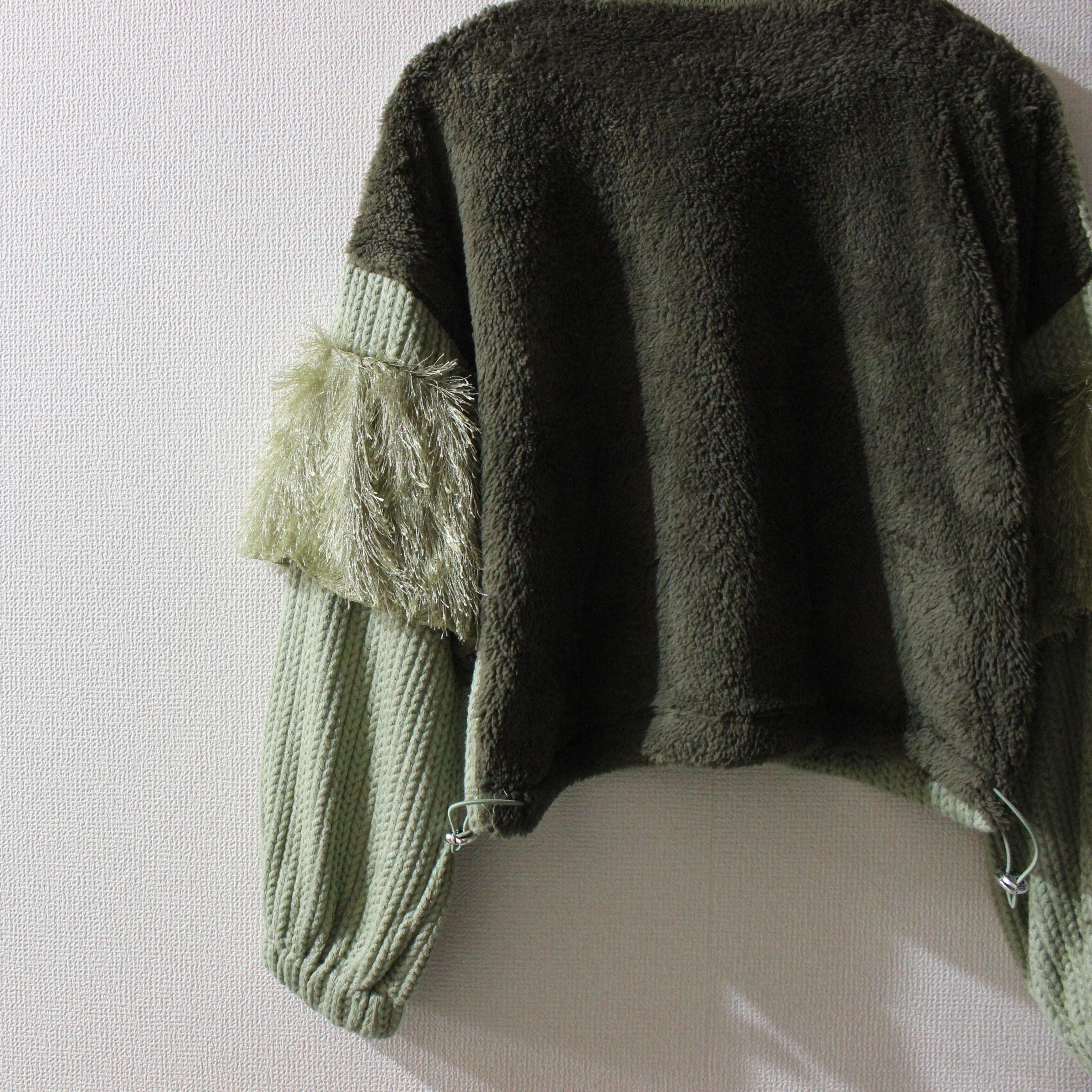 本体生地にはヘリンボーン、背面にはボアを使用し