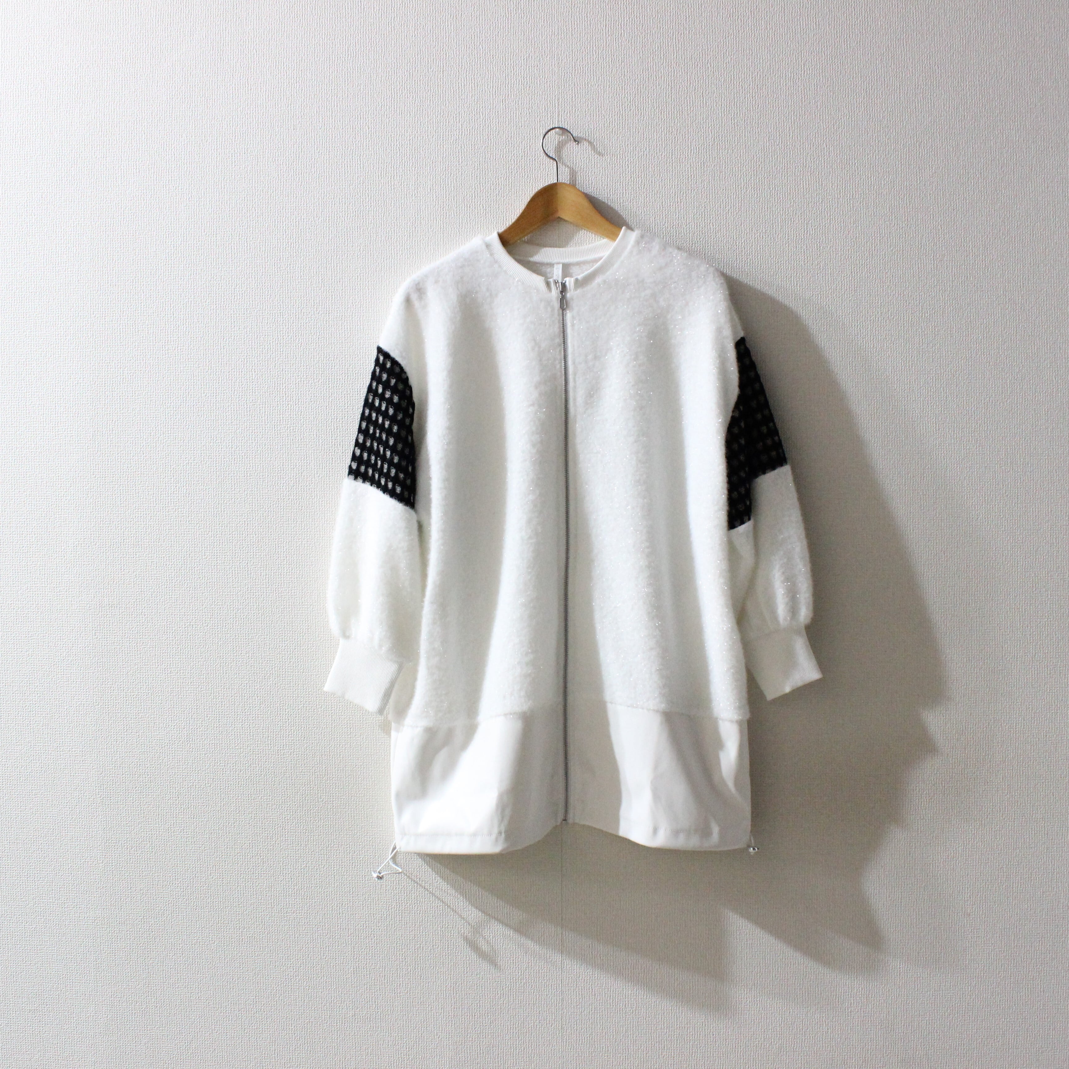 異素材を贅沢に組み合わせた、存在感のあるジップアップコーディガン。