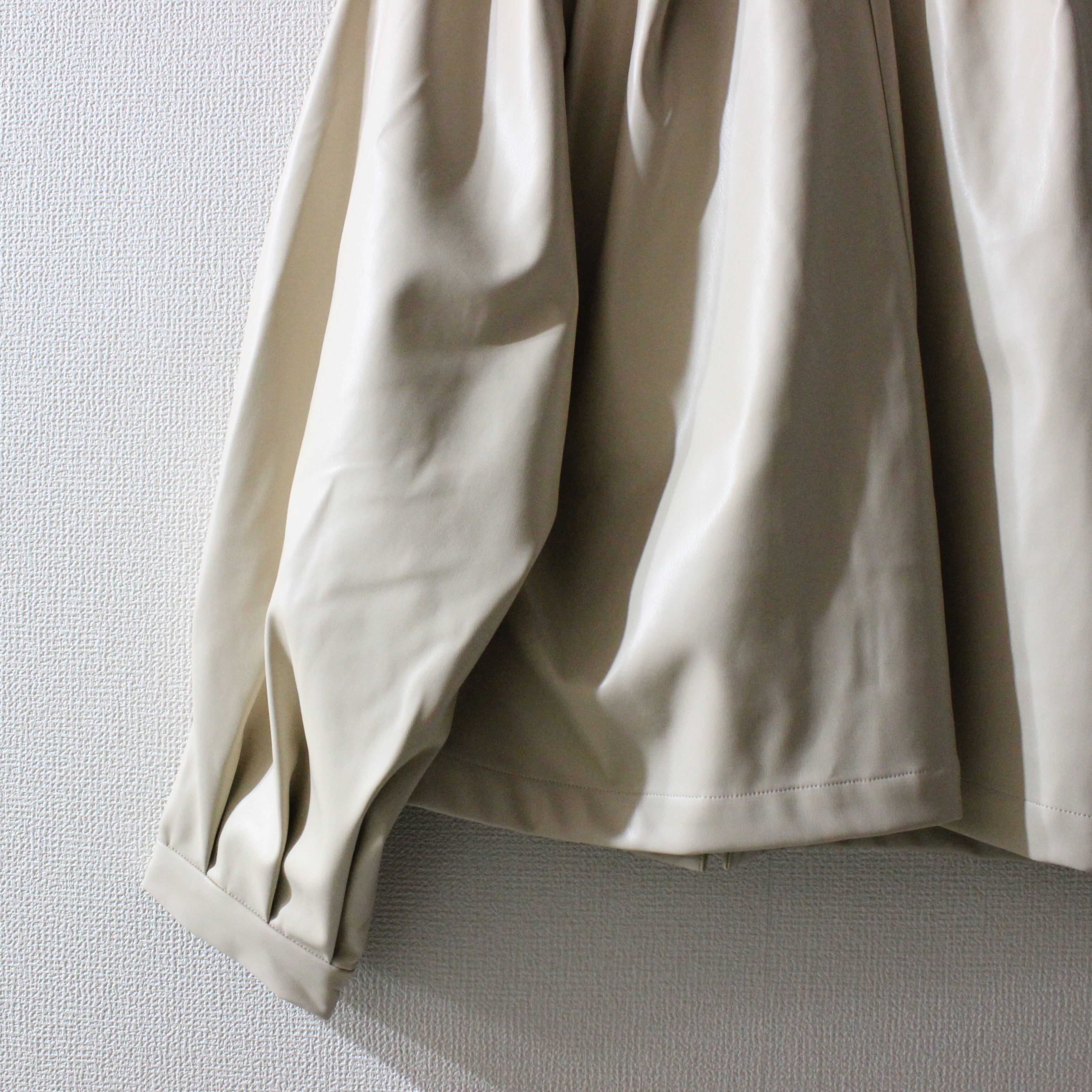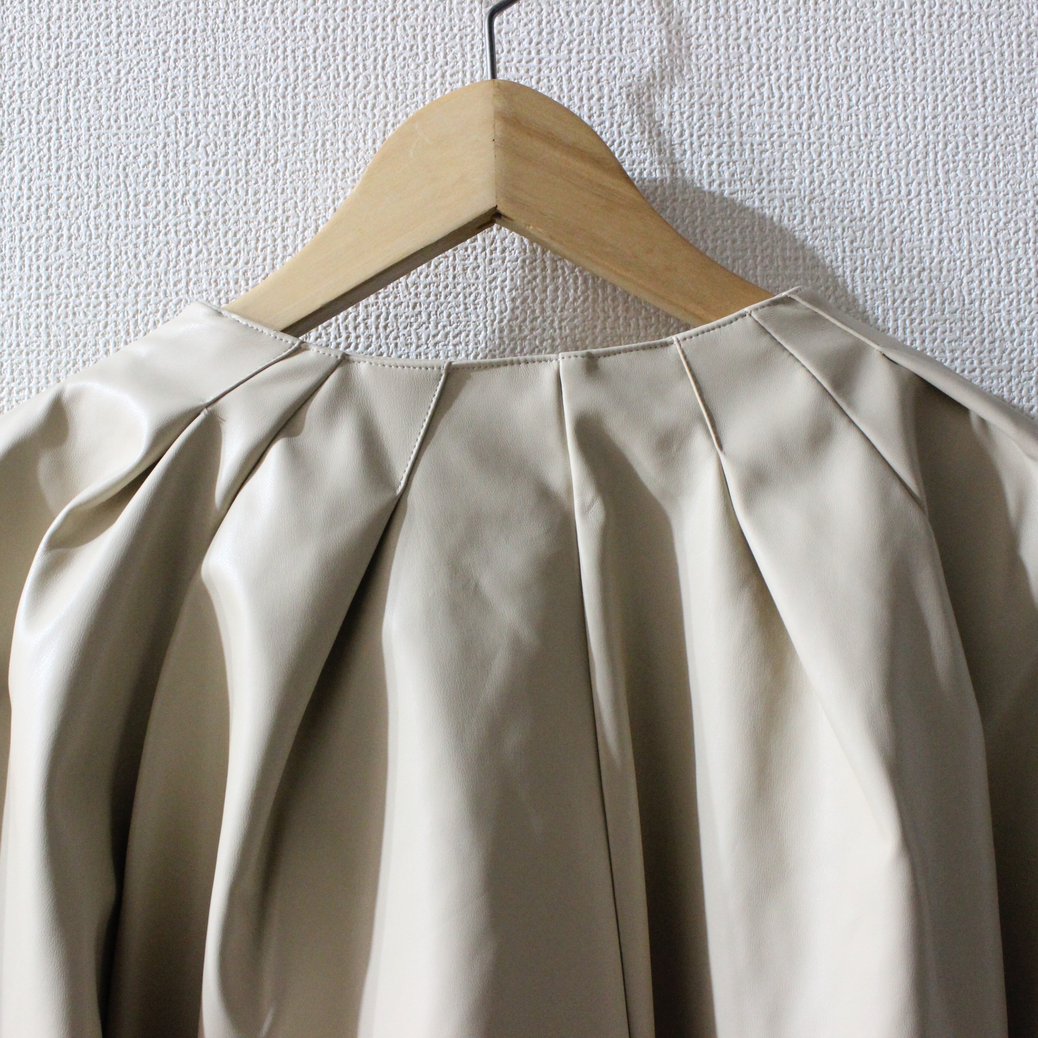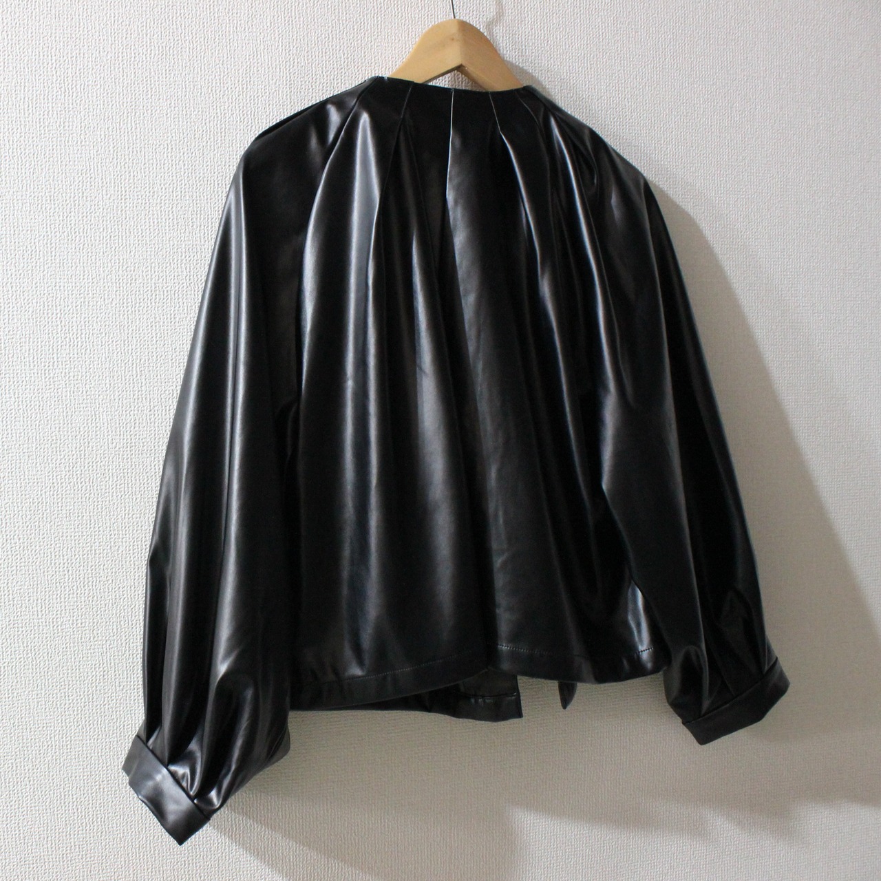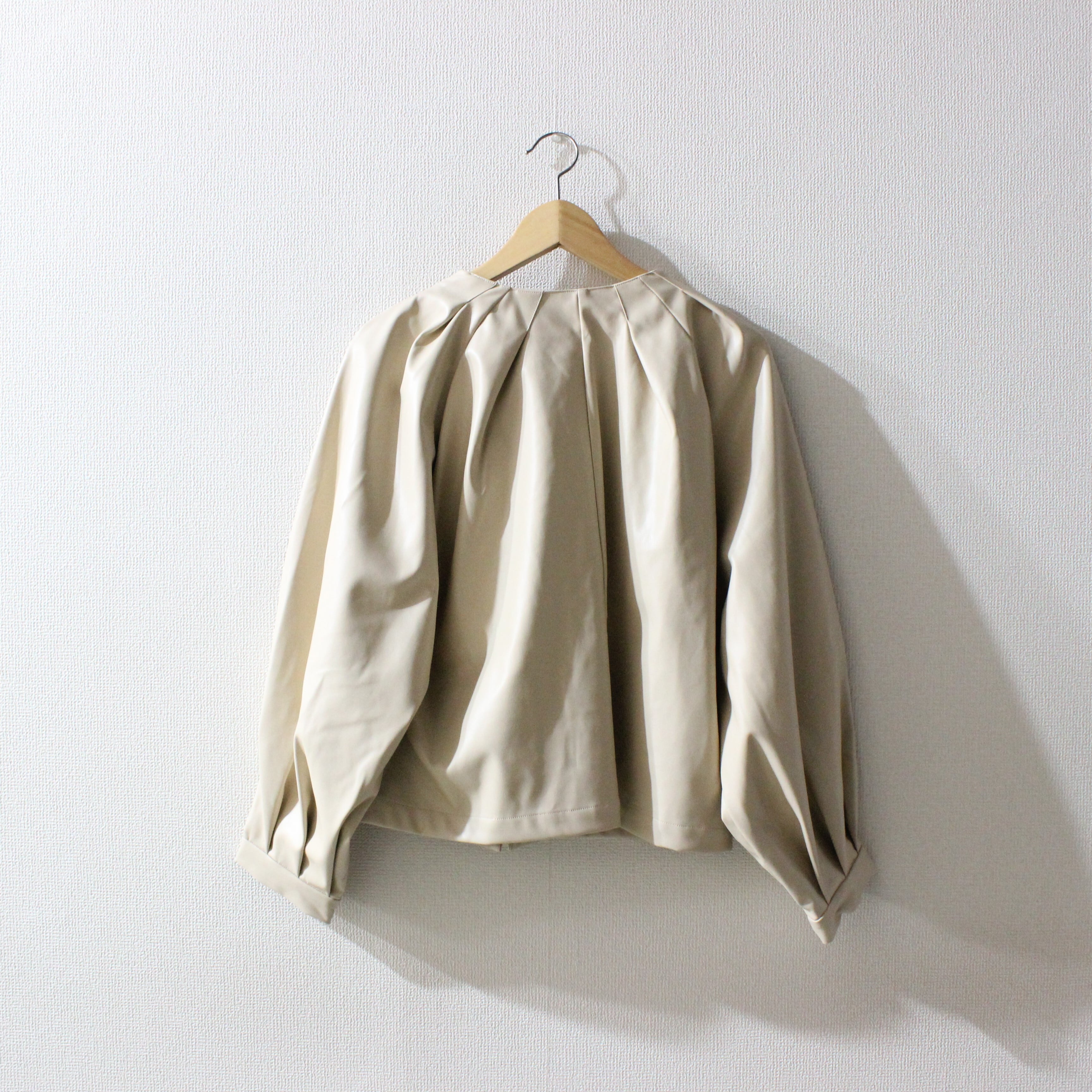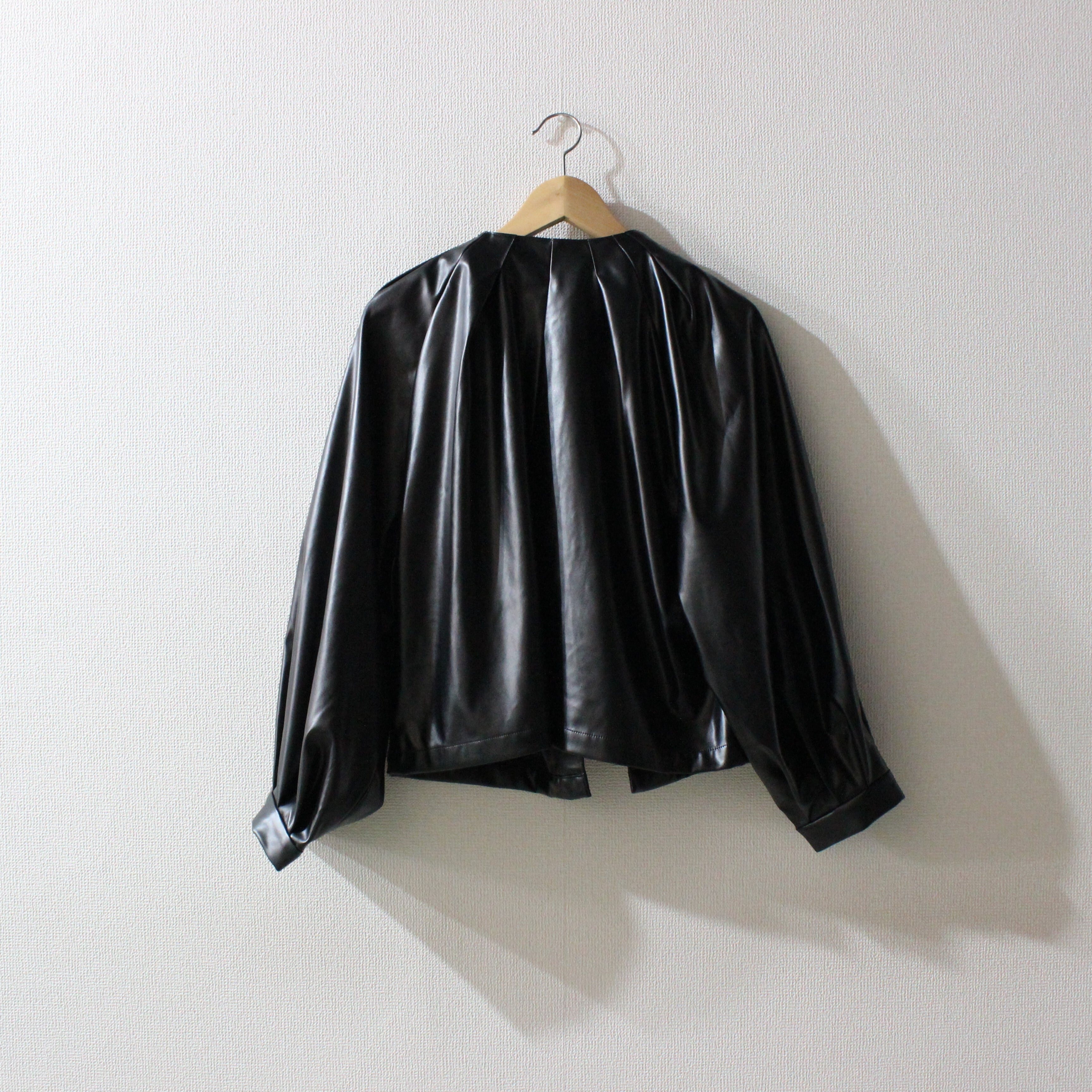 タックディテールが効いたフェイクレザーのバルーンスリーブジャケット。