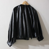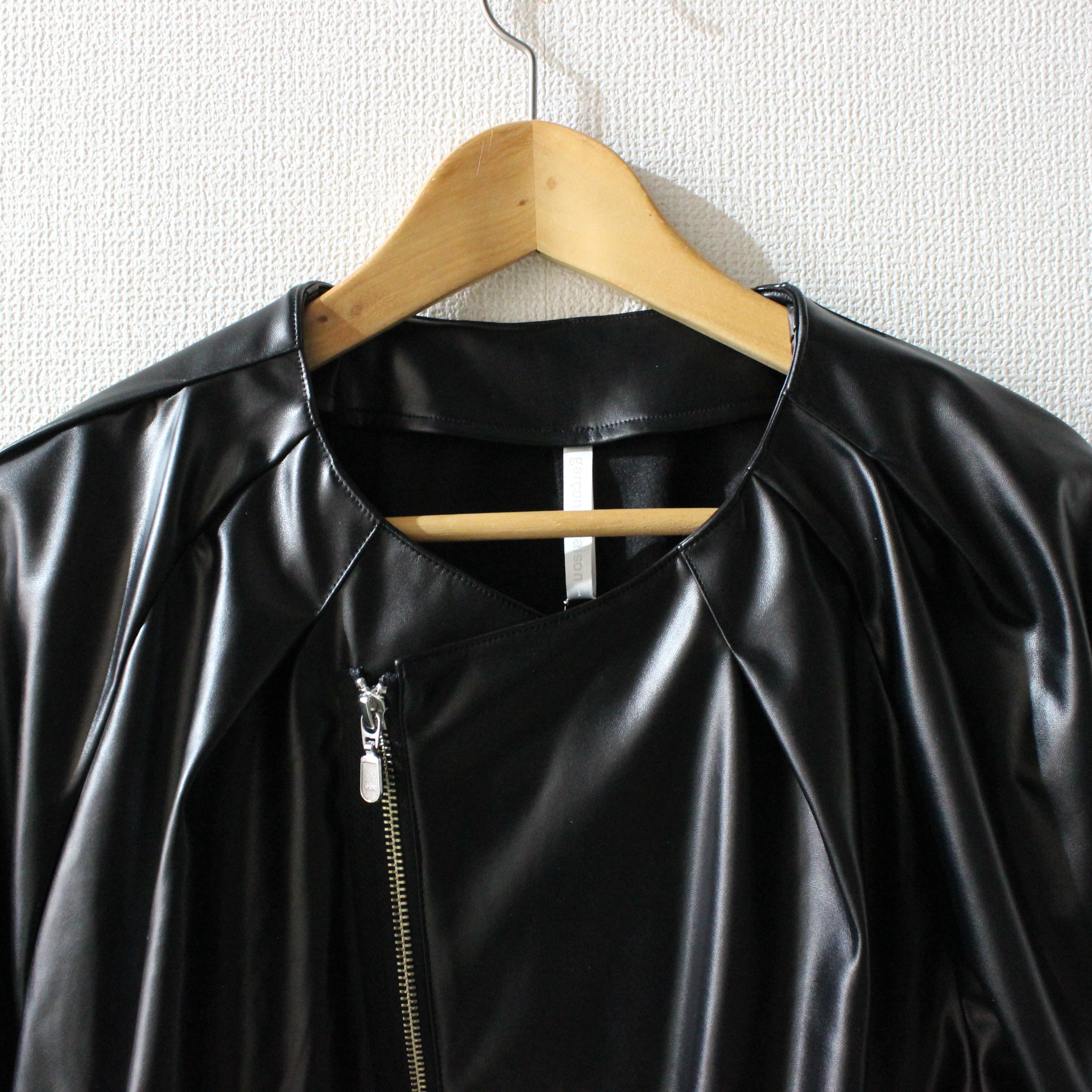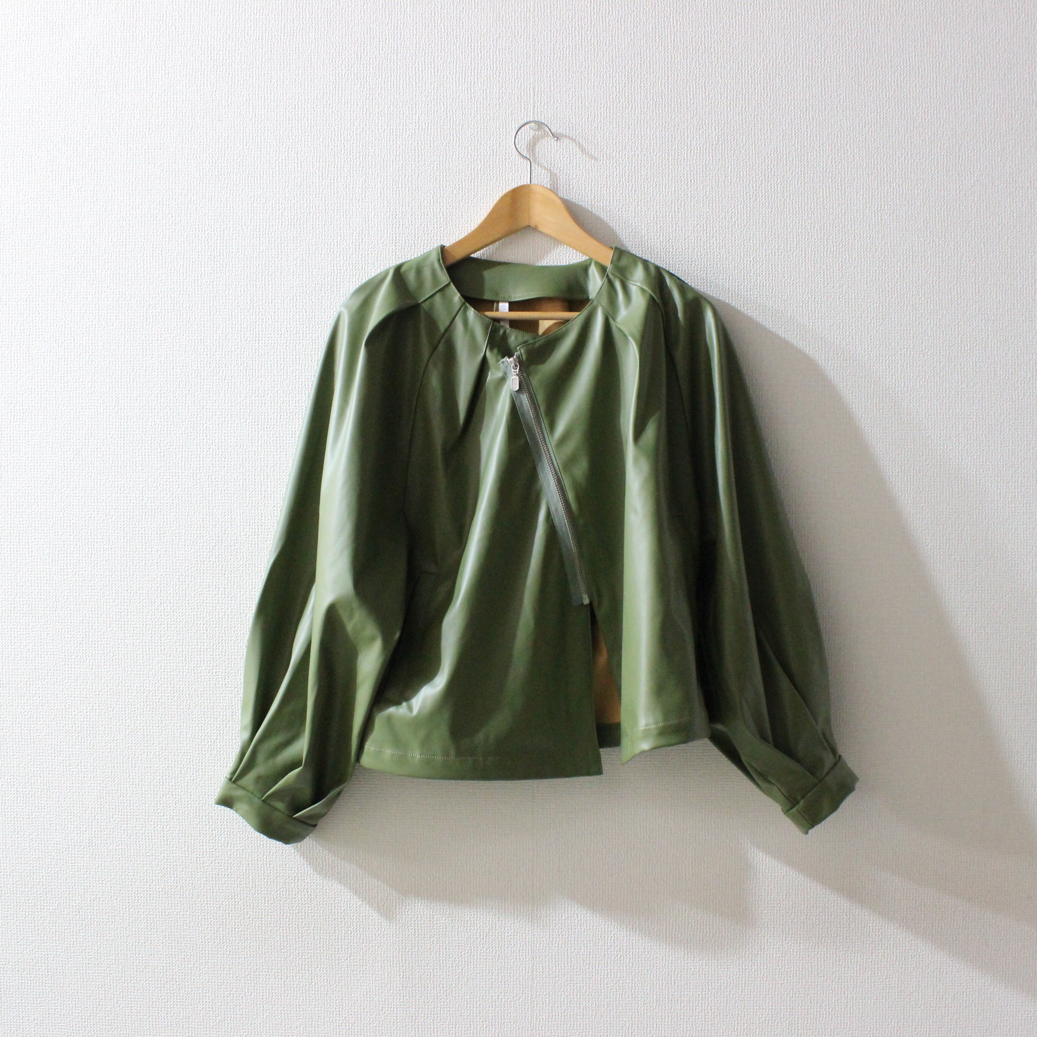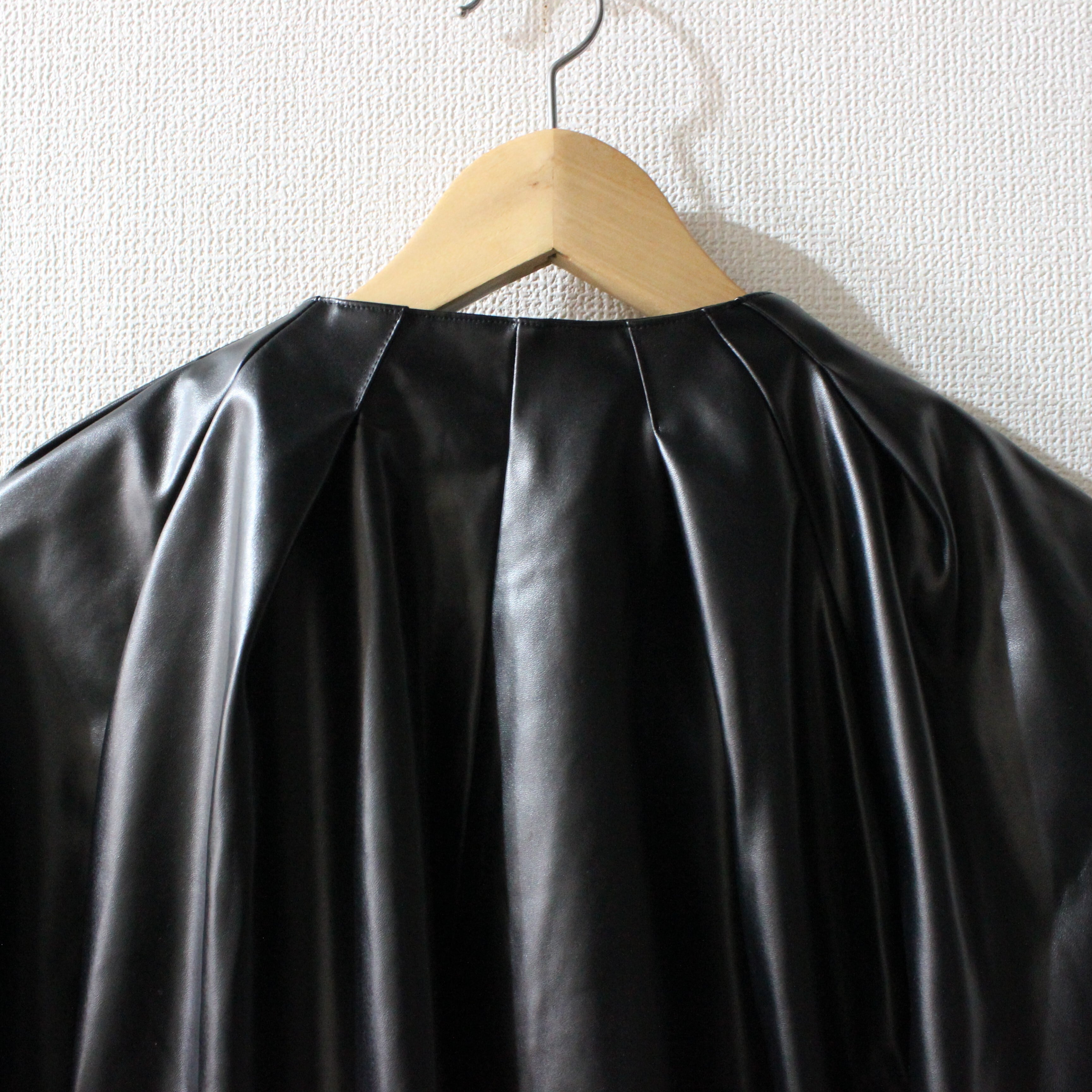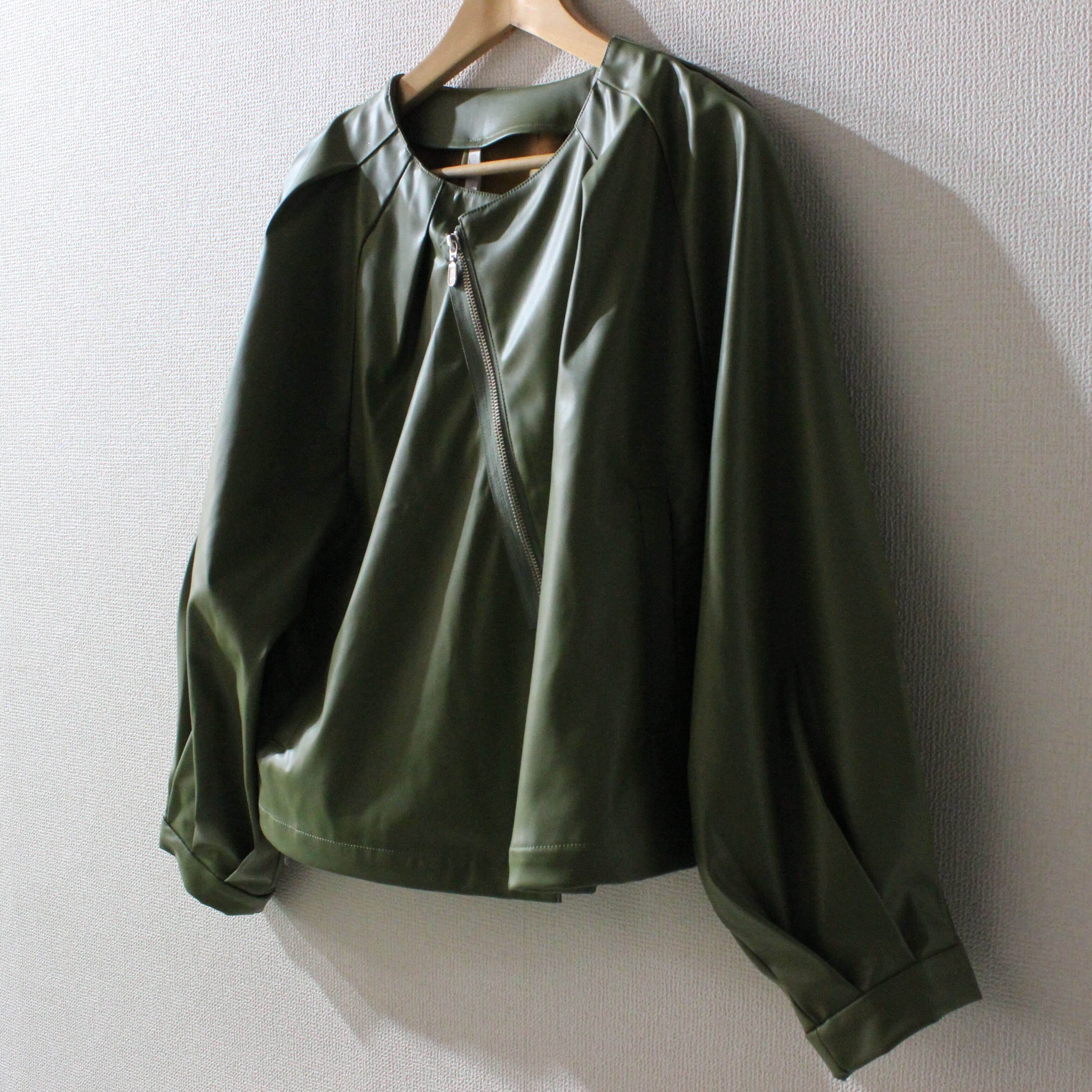タックディテールが効いたフェイクレザーのバルーンスリーブジャケット。