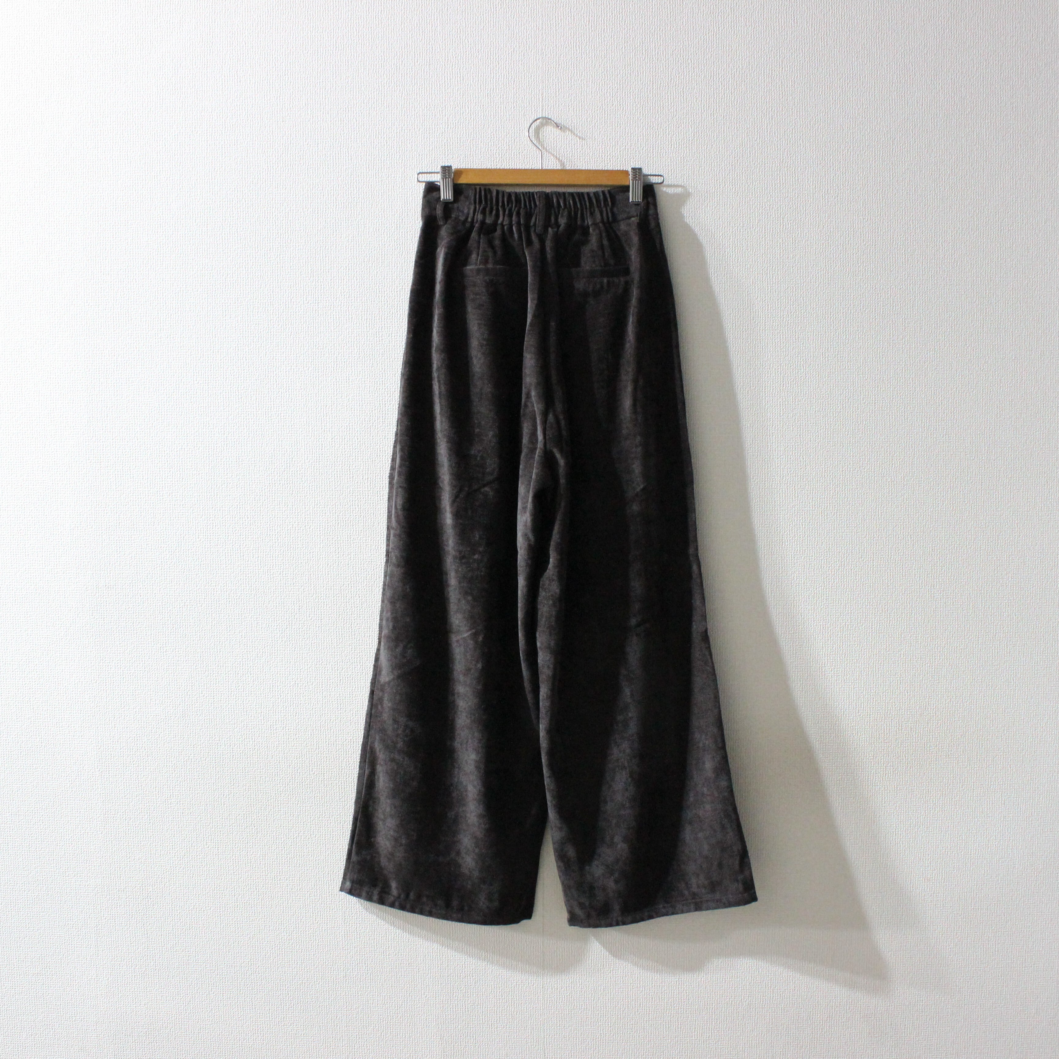 ワイドながら腰回りはすっきりと見せ、スタイルアップを叶えます。
