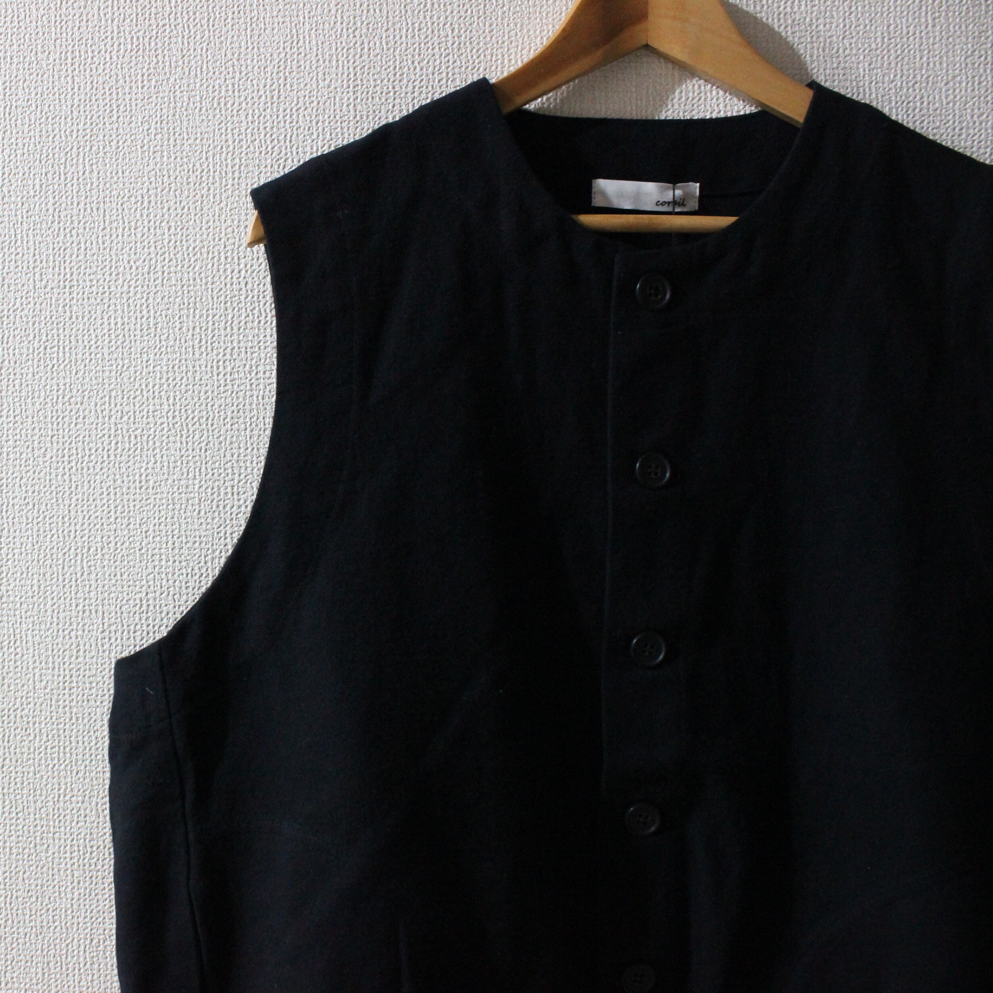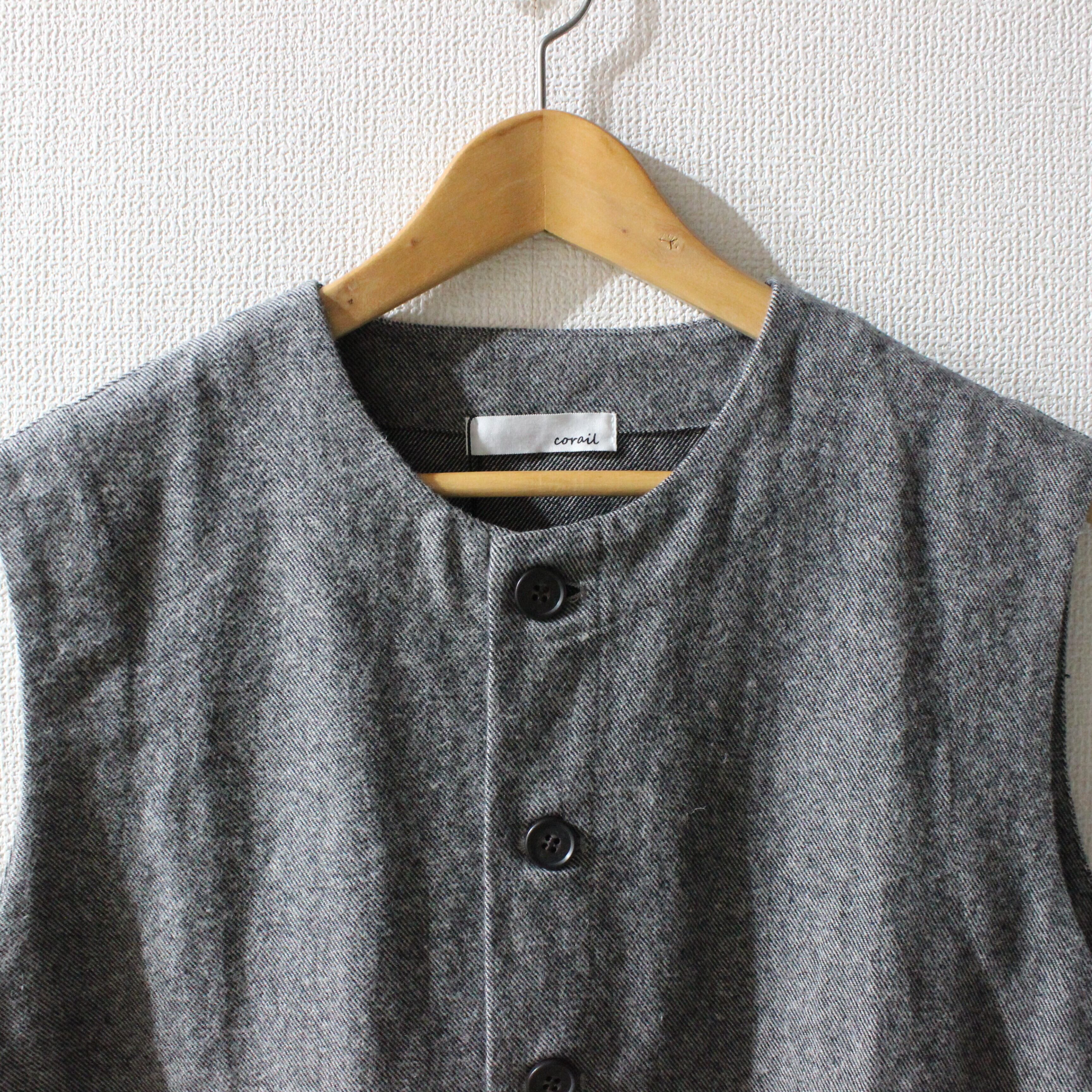corail綿麻先染めツイル起毛前開きベスト