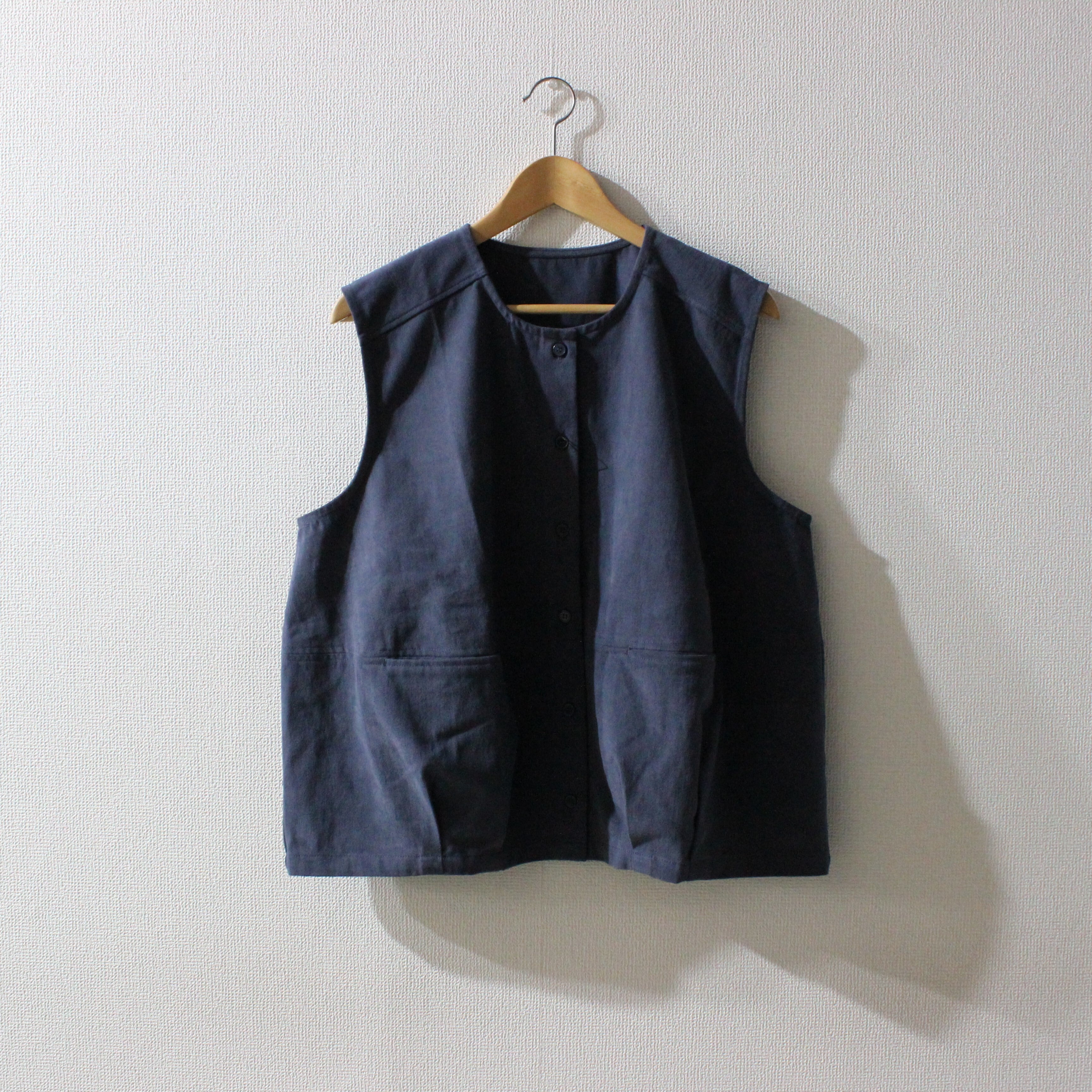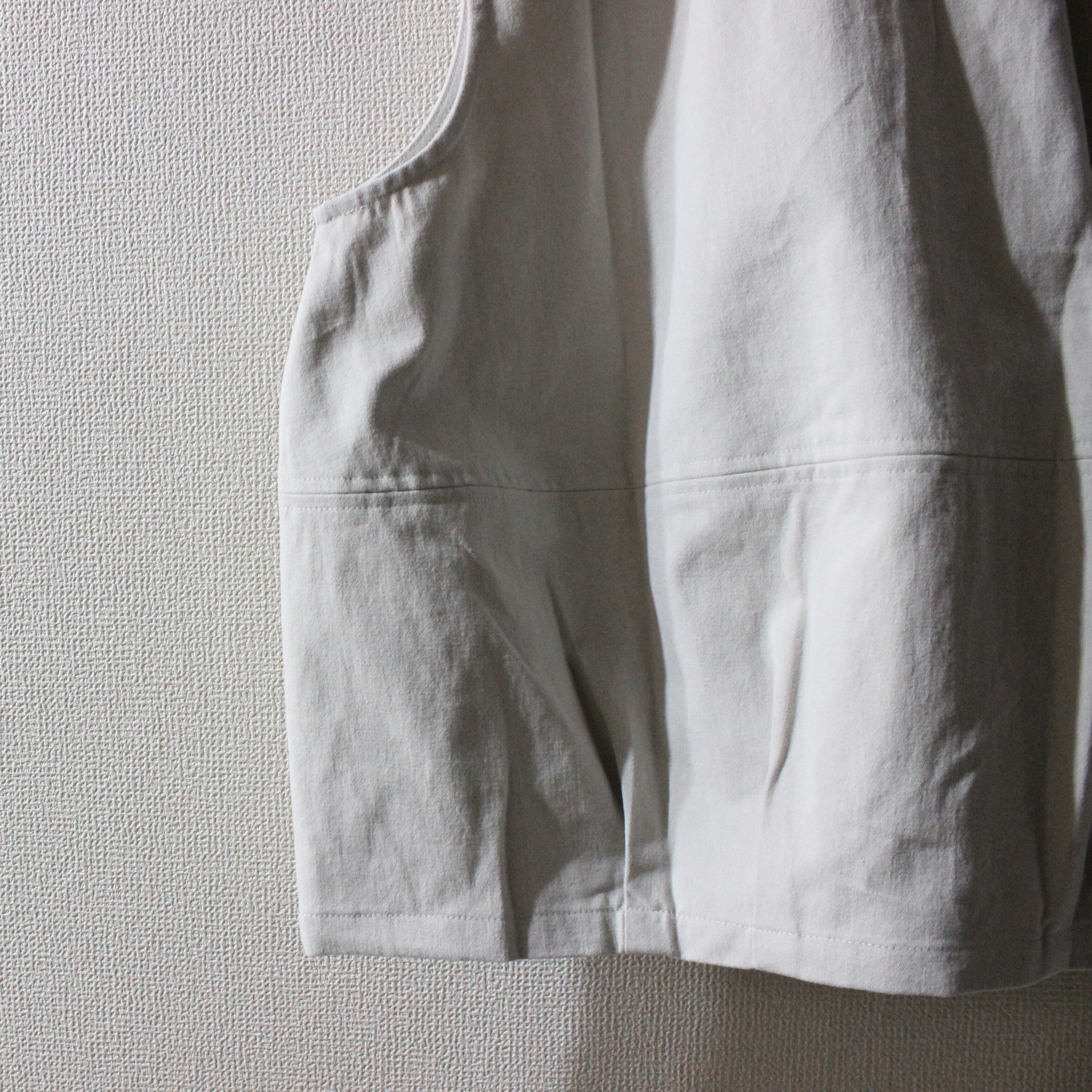 ゆったりとした身幅と裾のタックで女性らしいシルエットを描くベストです。