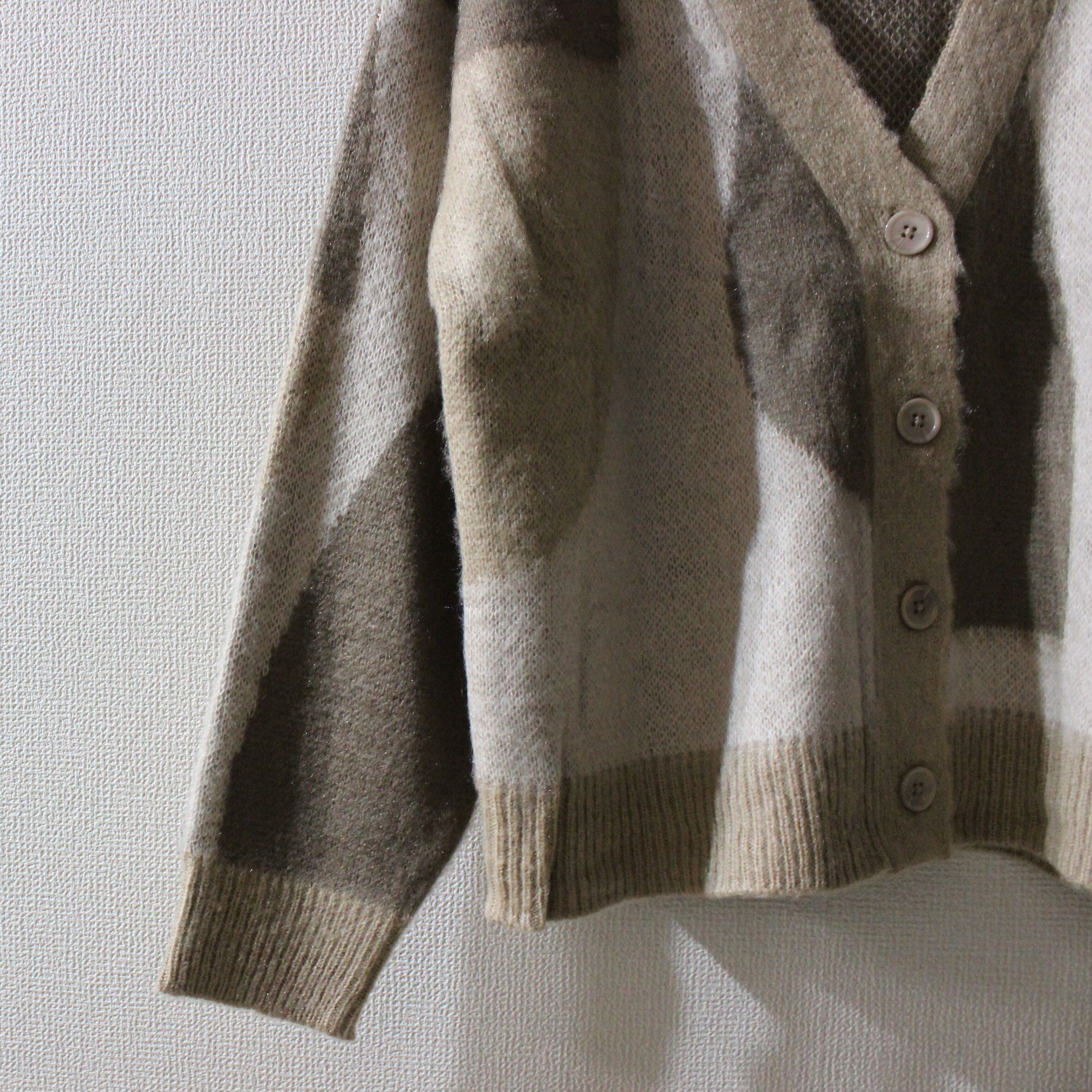 やわらかく優しいニュアンス柄が魅力的なカーディガンです。