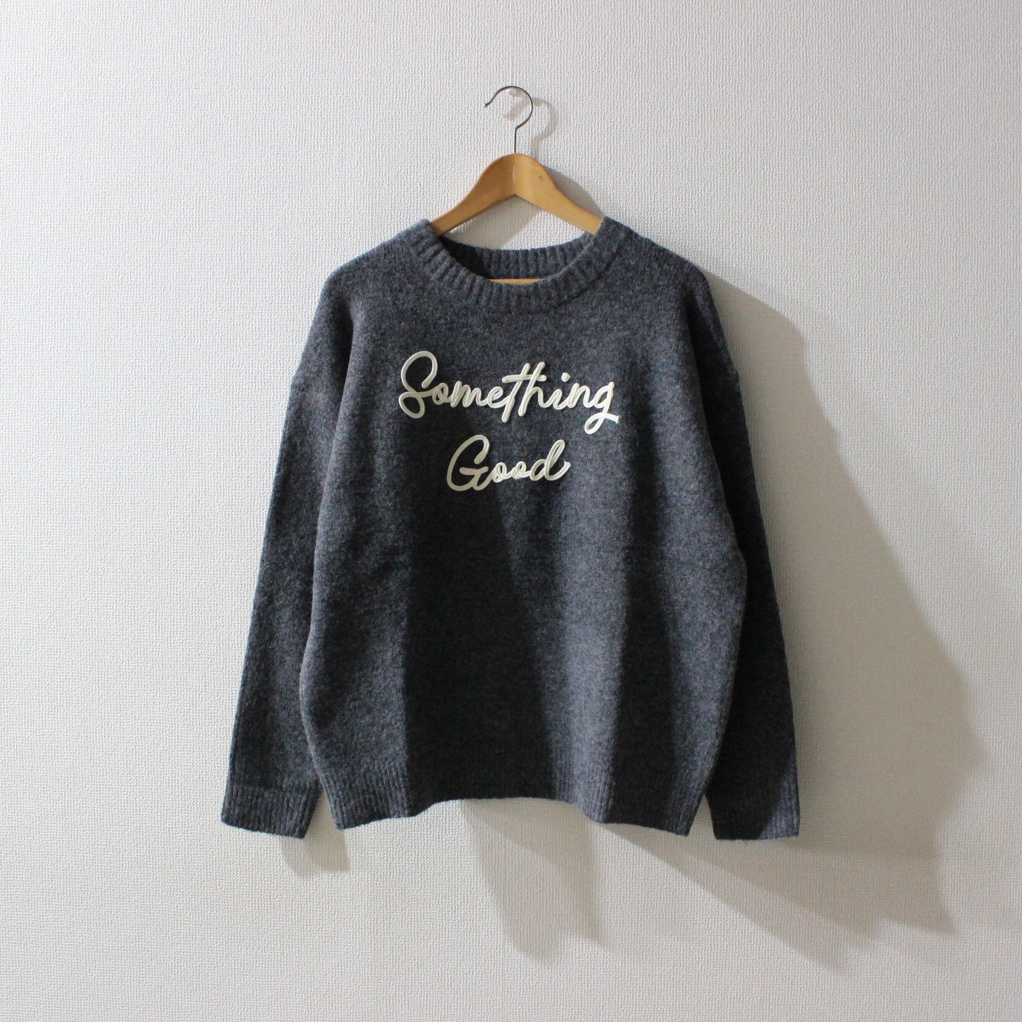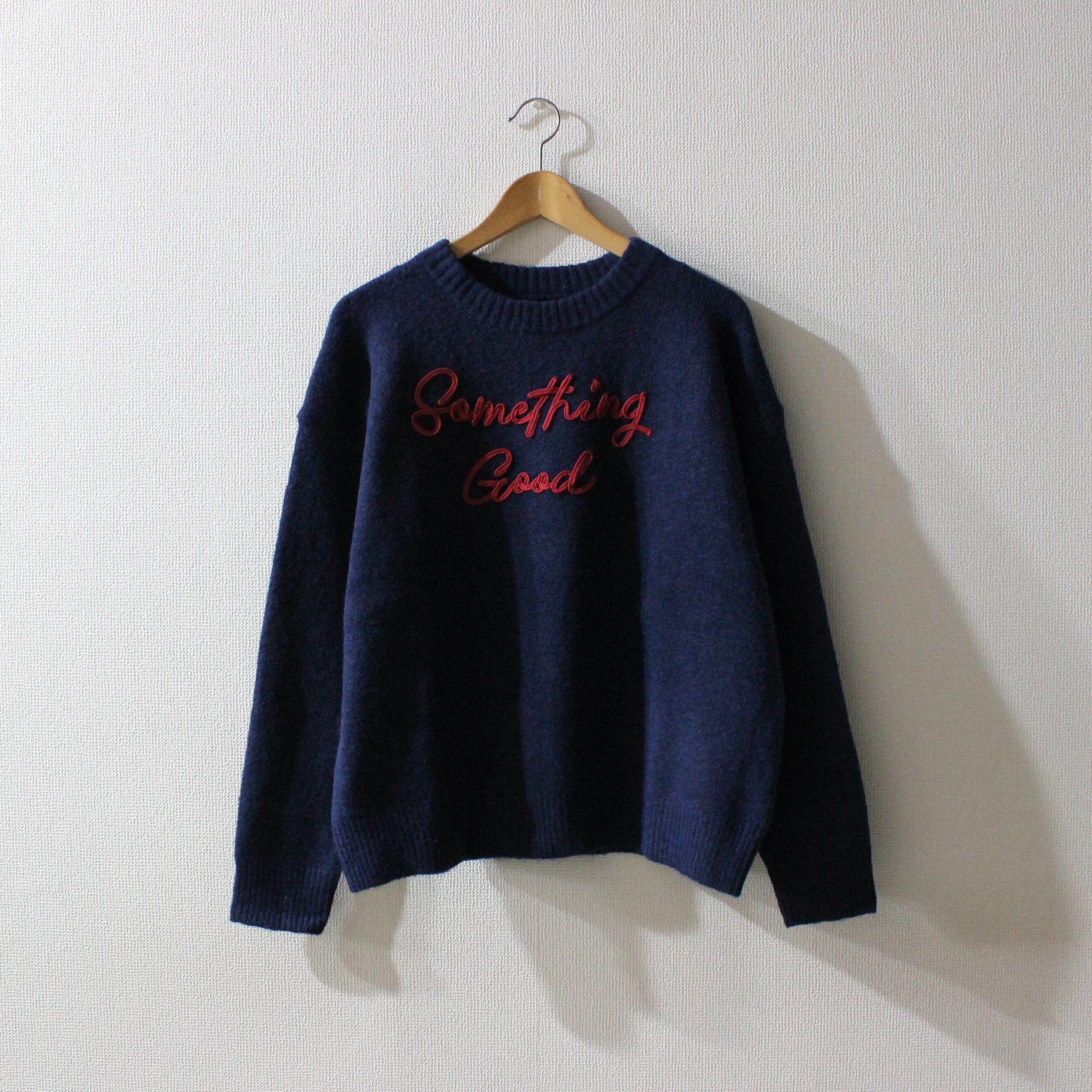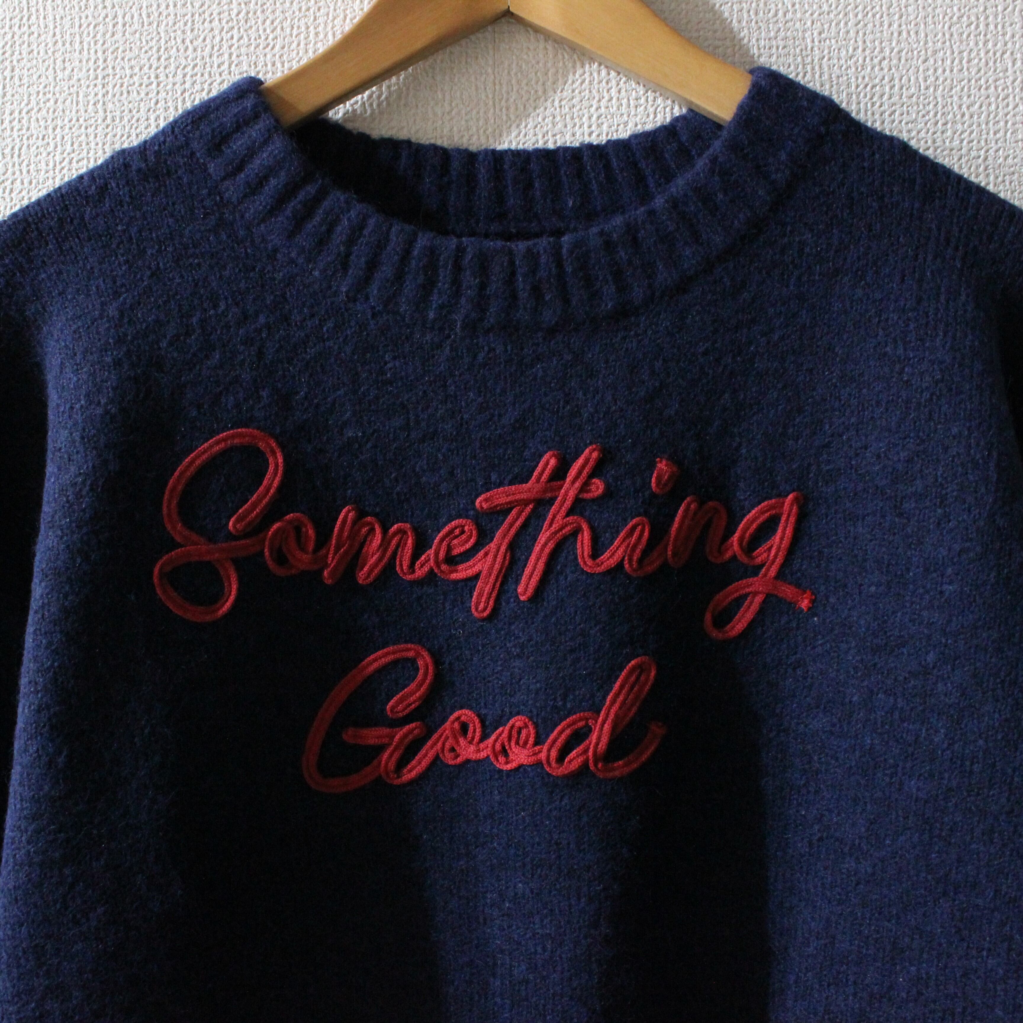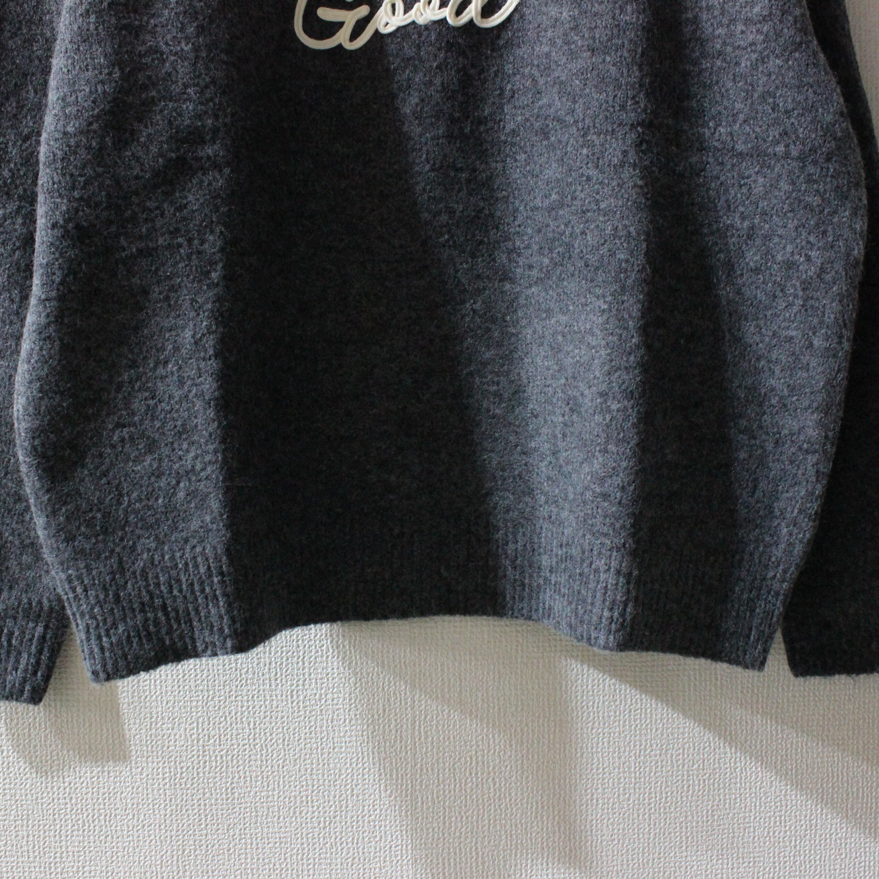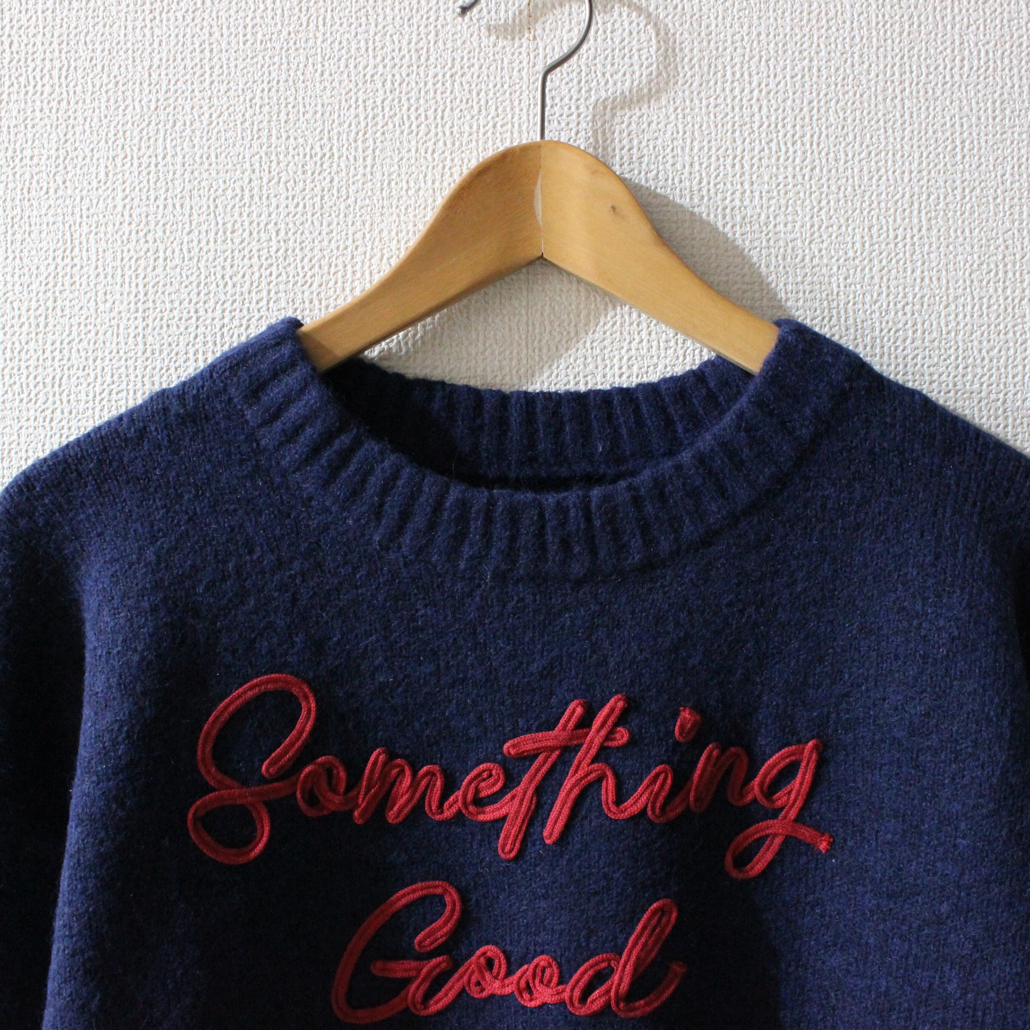 上品なコード刺繍のロゴが印象的なウール混ニットです。