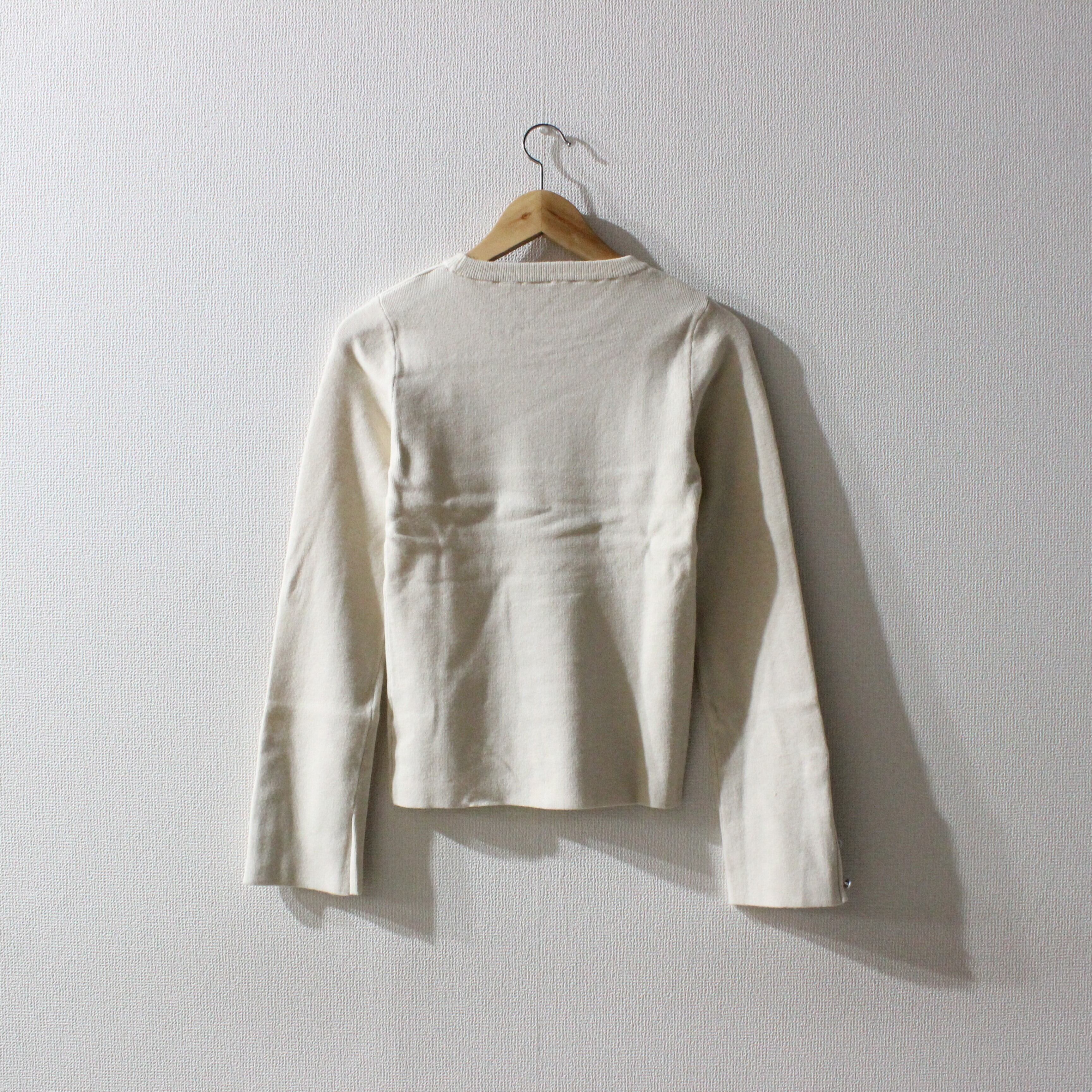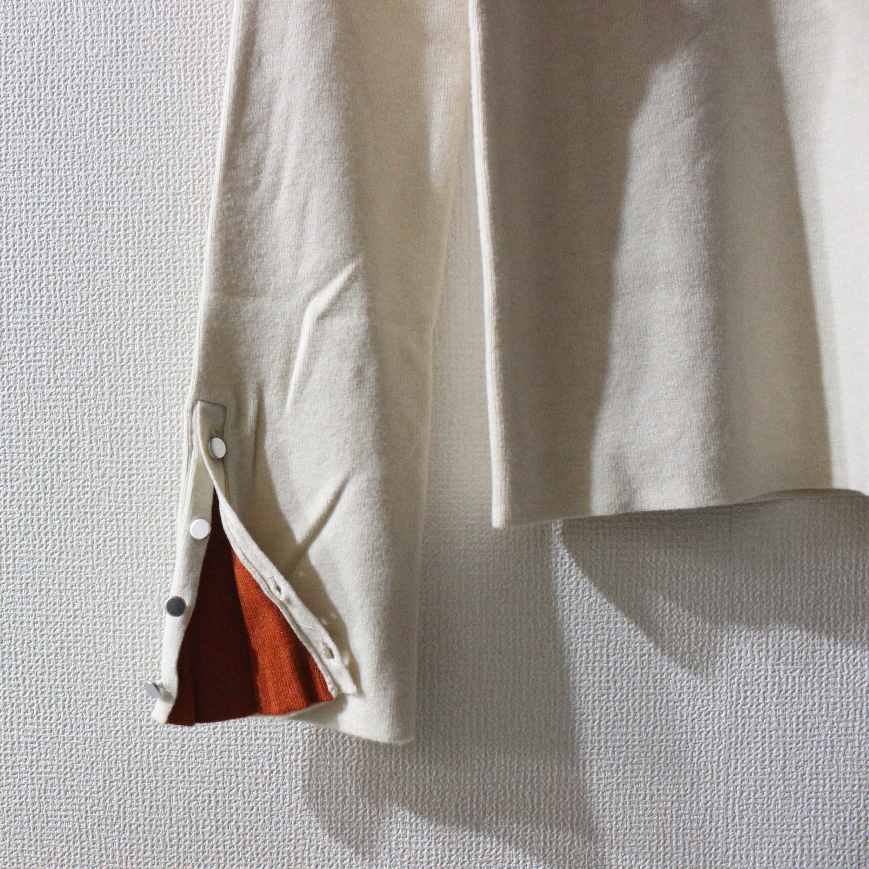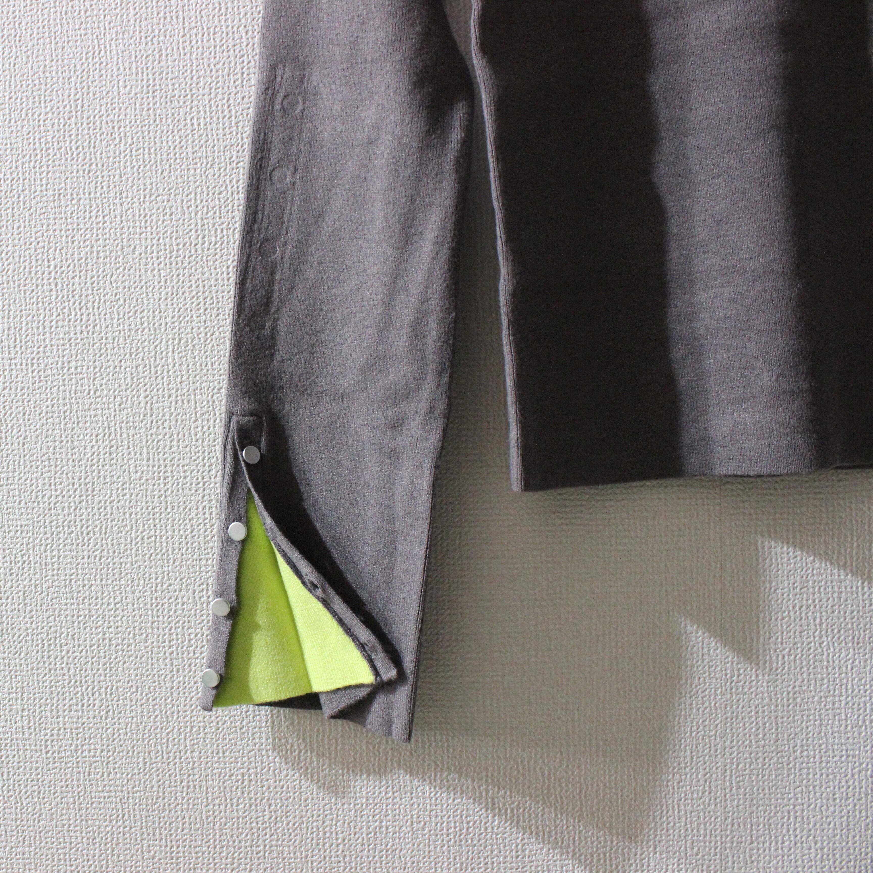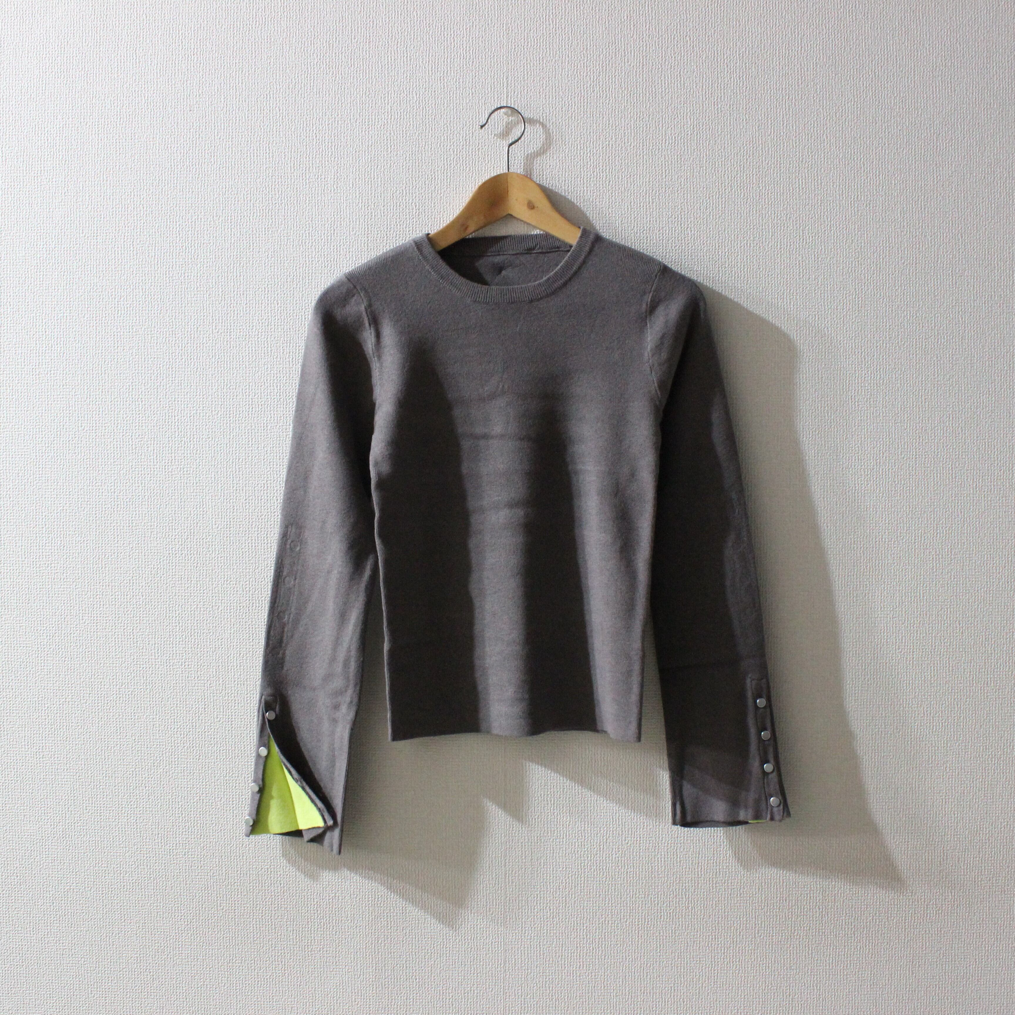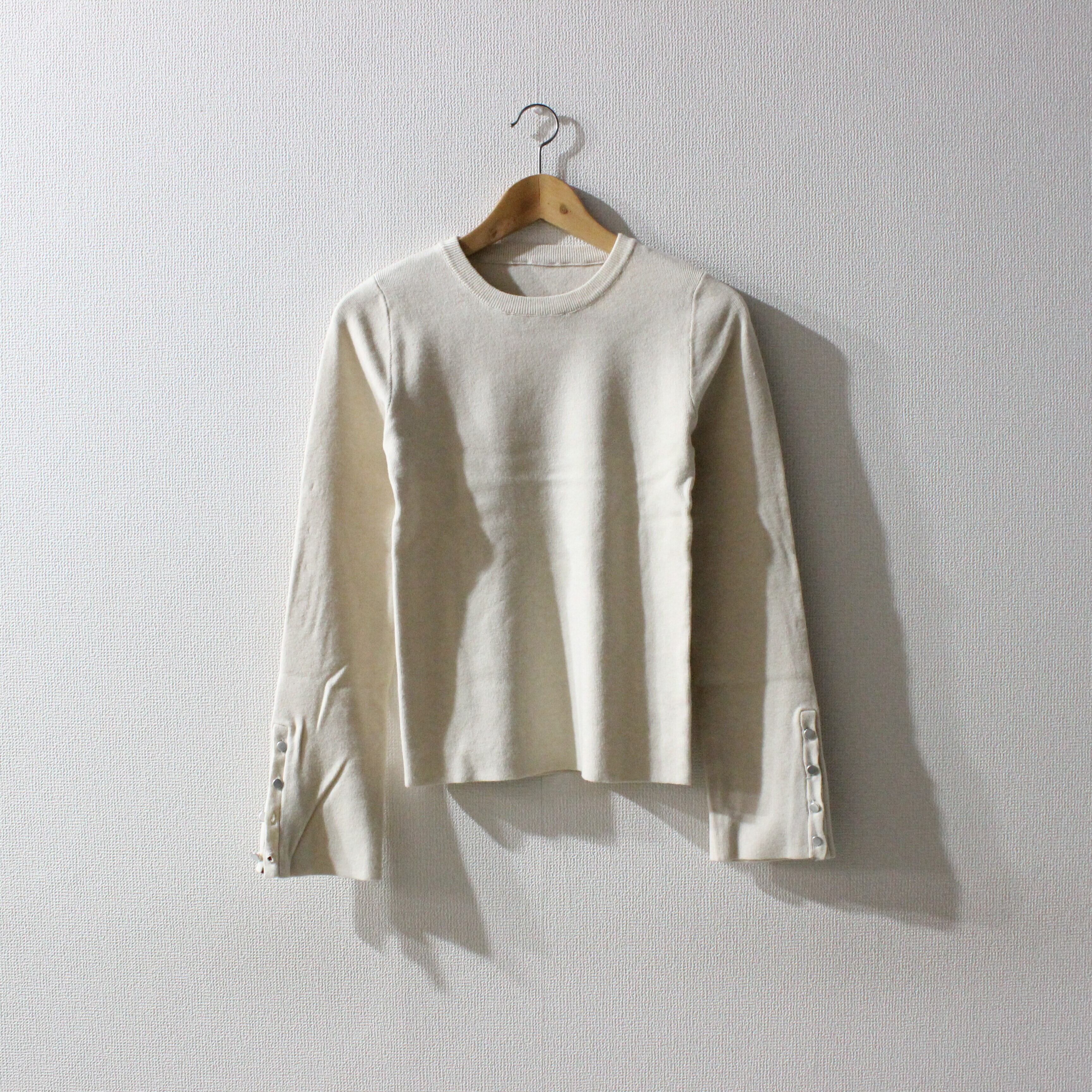 袖の配色がポイントのニットトップスです。