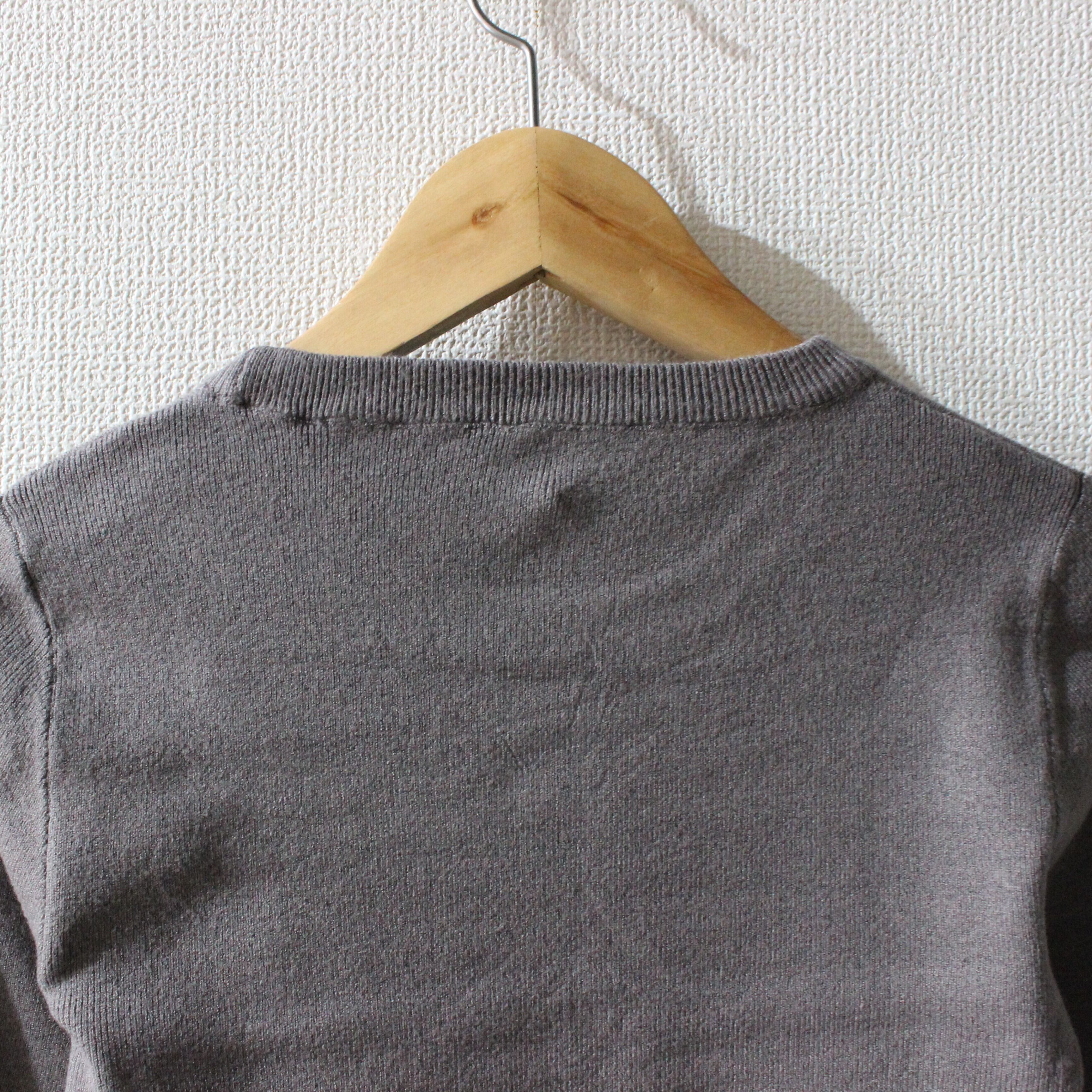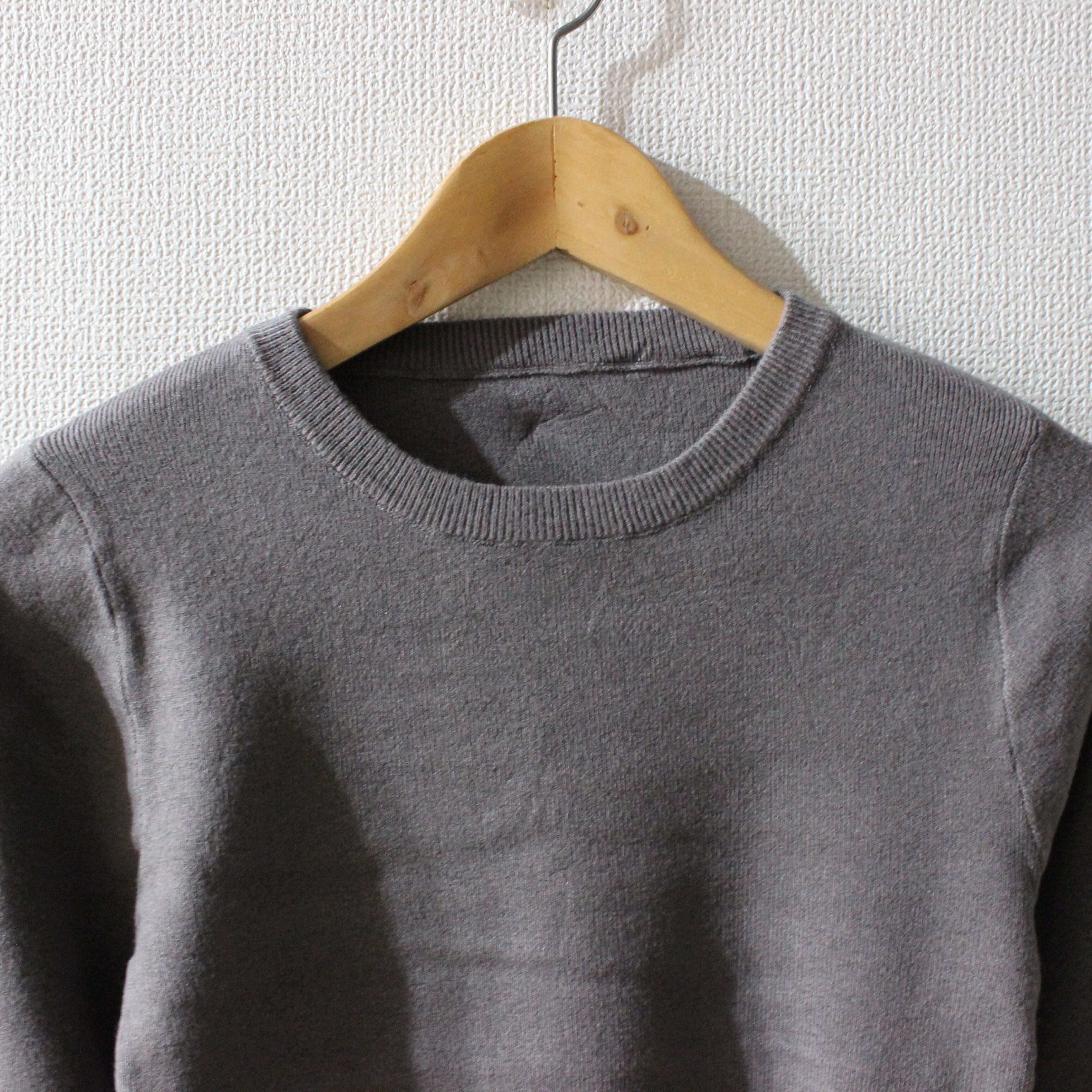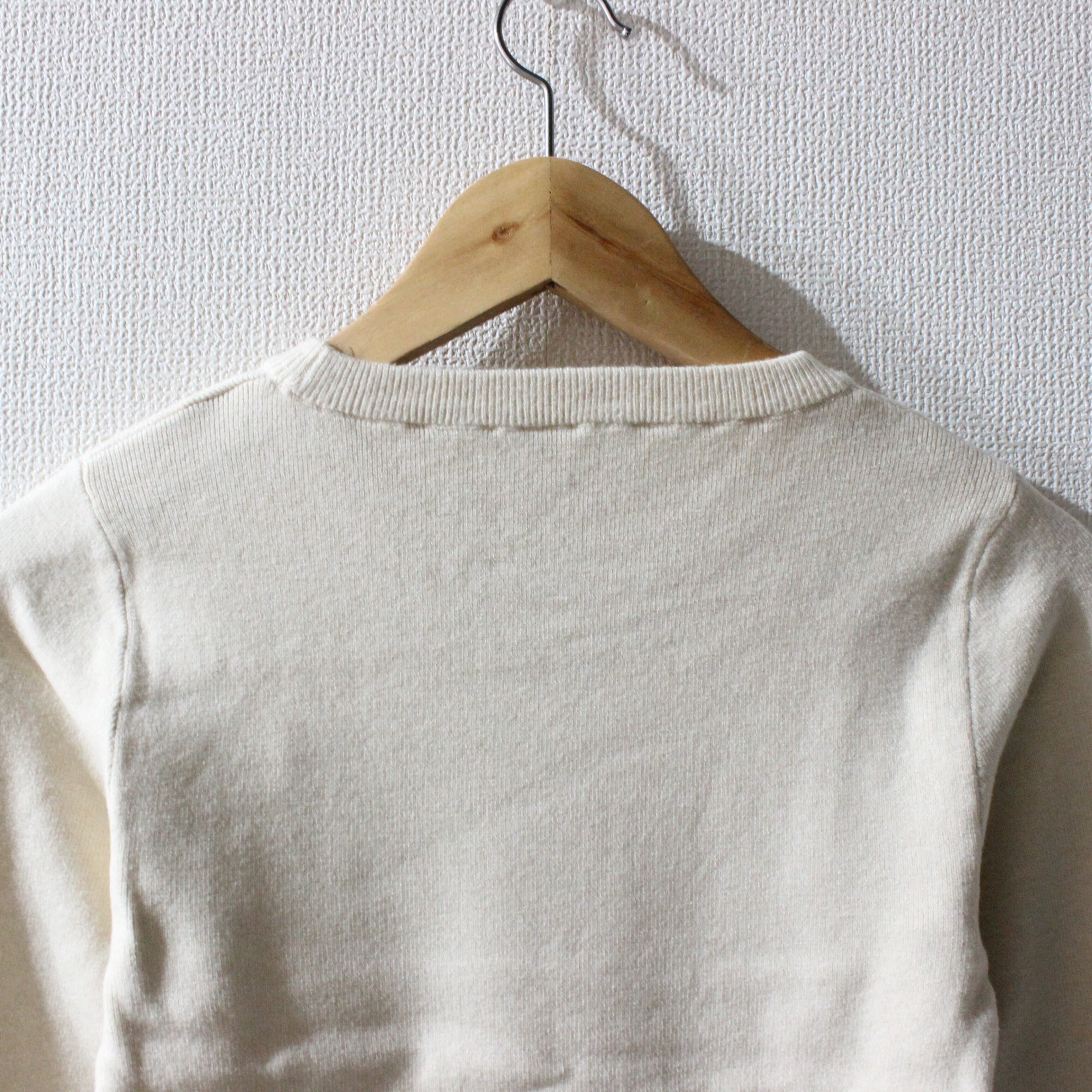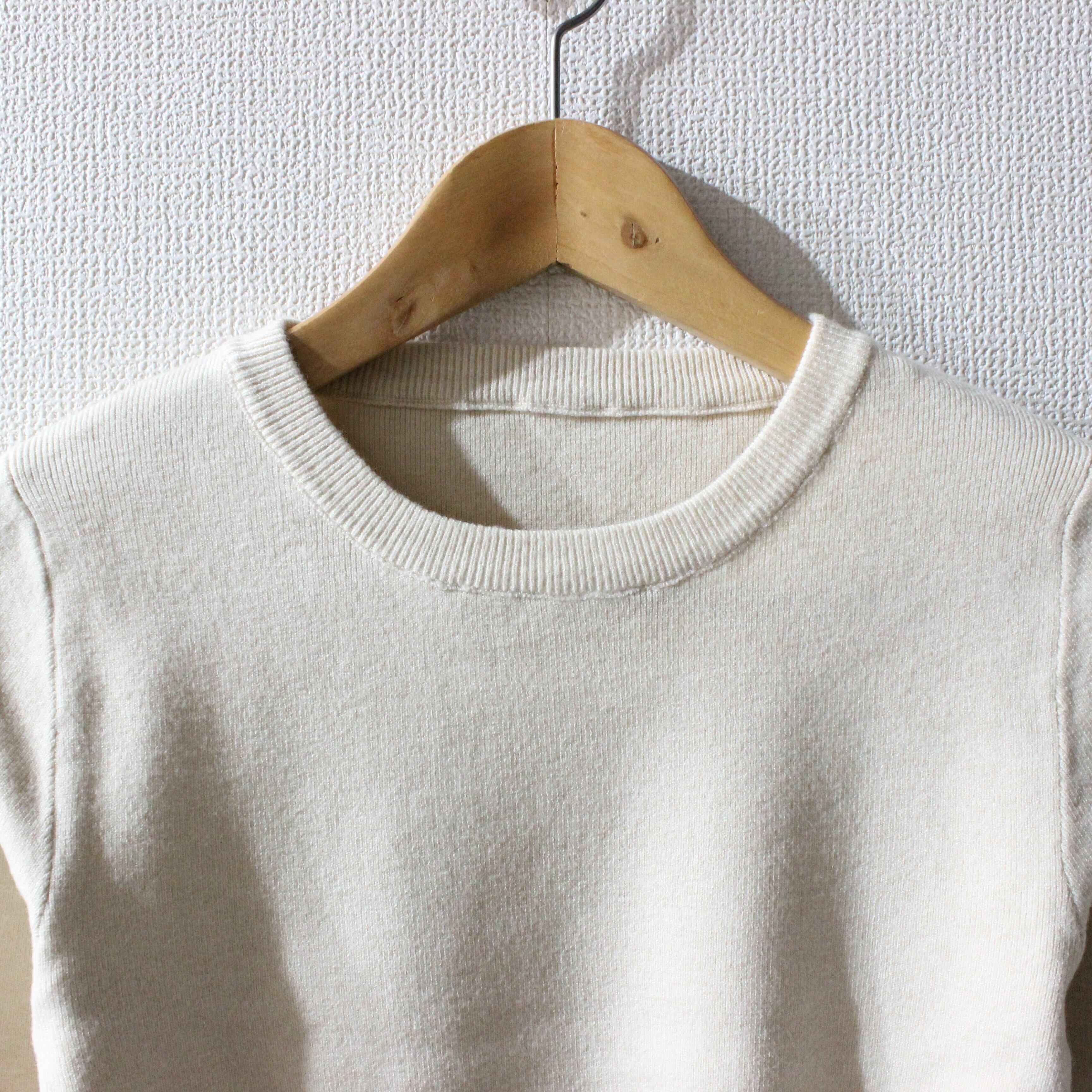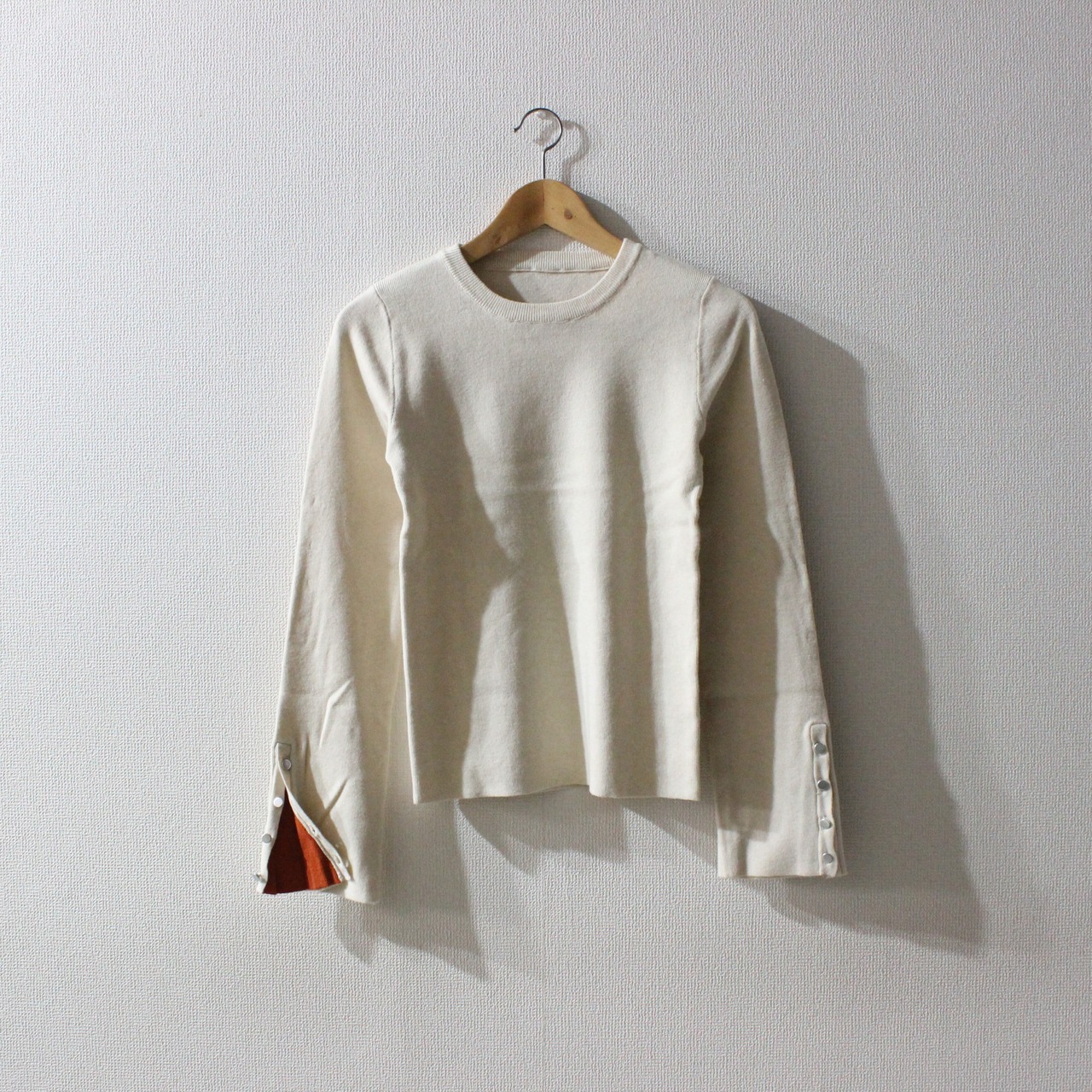 袖の配色がポイントのニットトップスです。