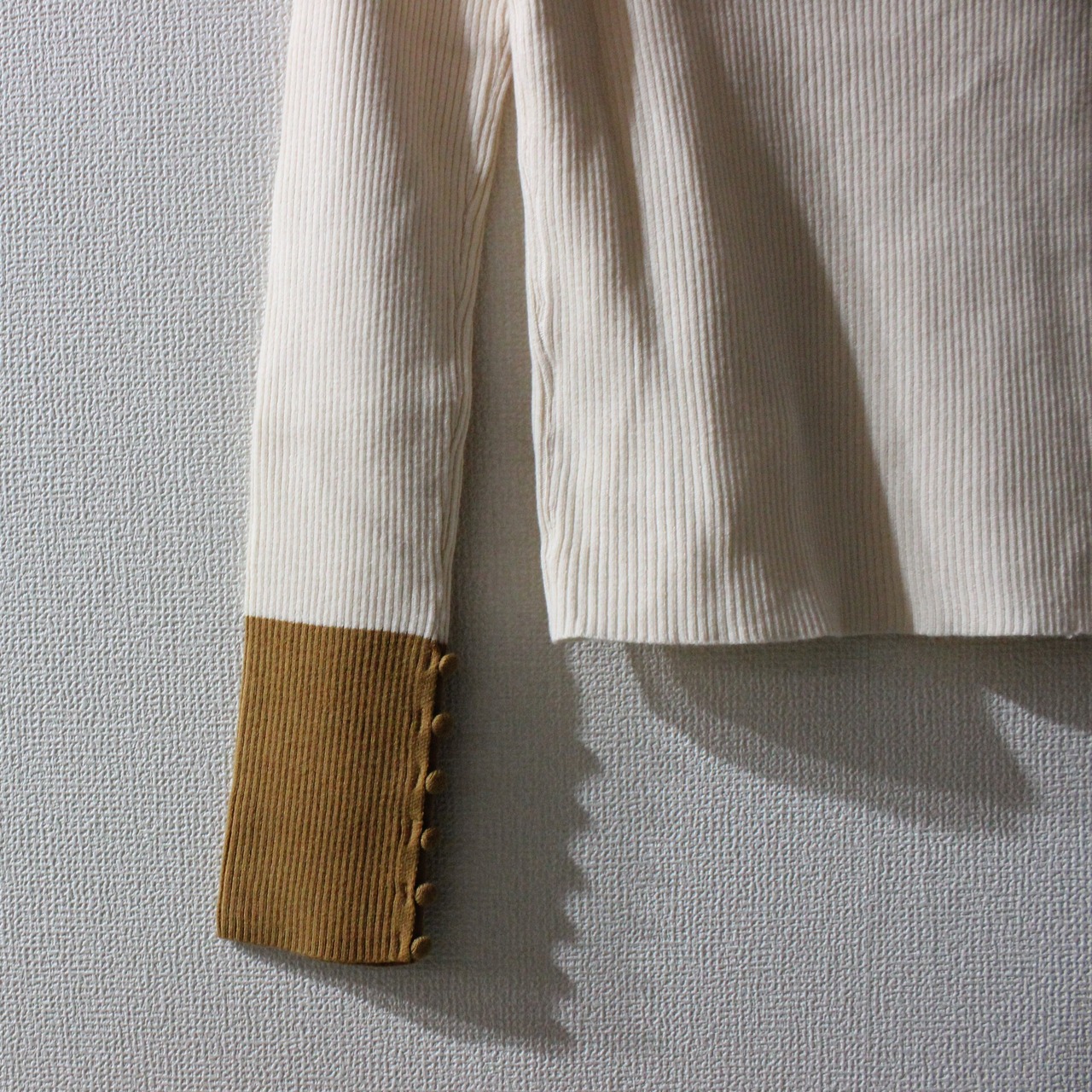 指穴あき仕様なので1枚ではもちろんレイヤードにもおすすめのアイテム。