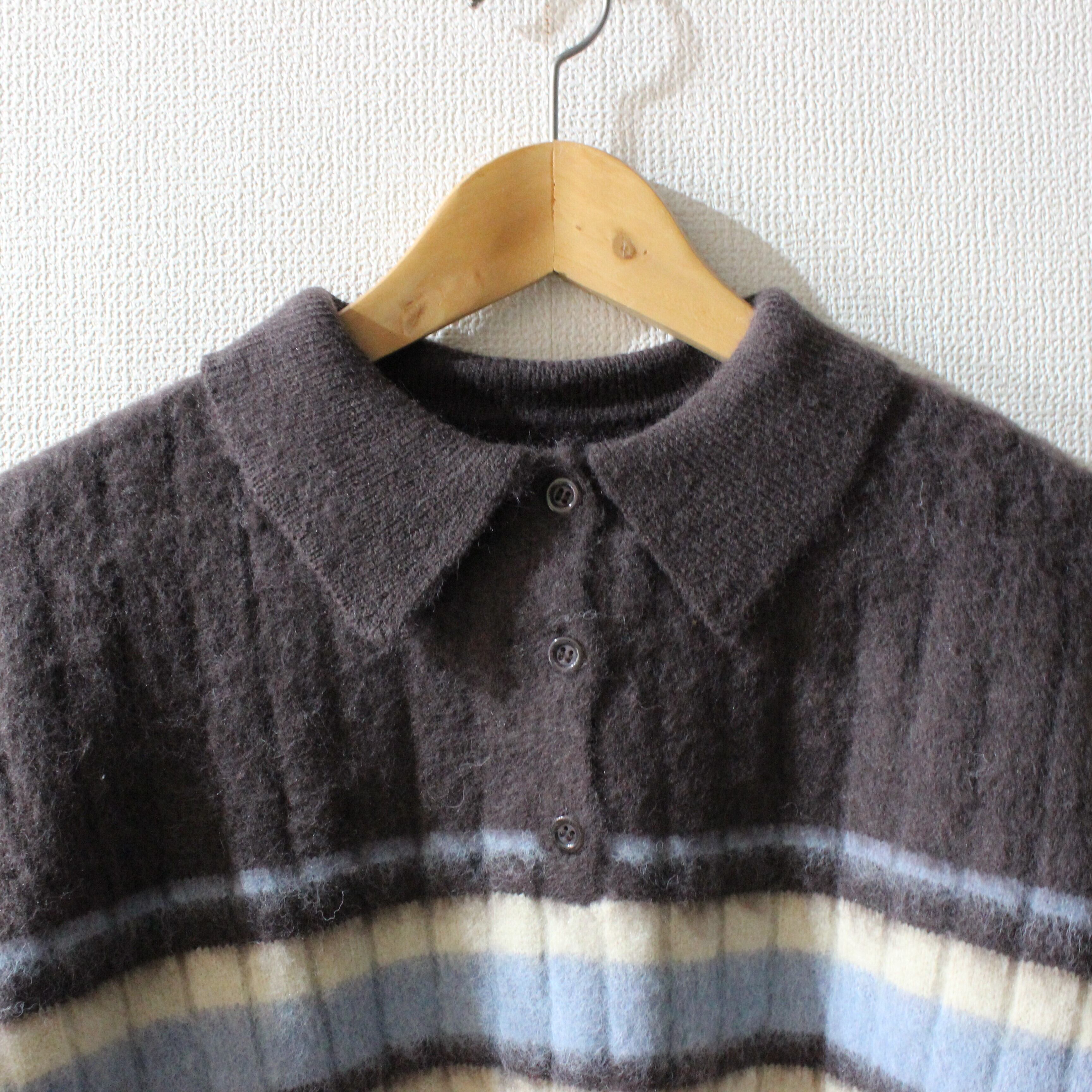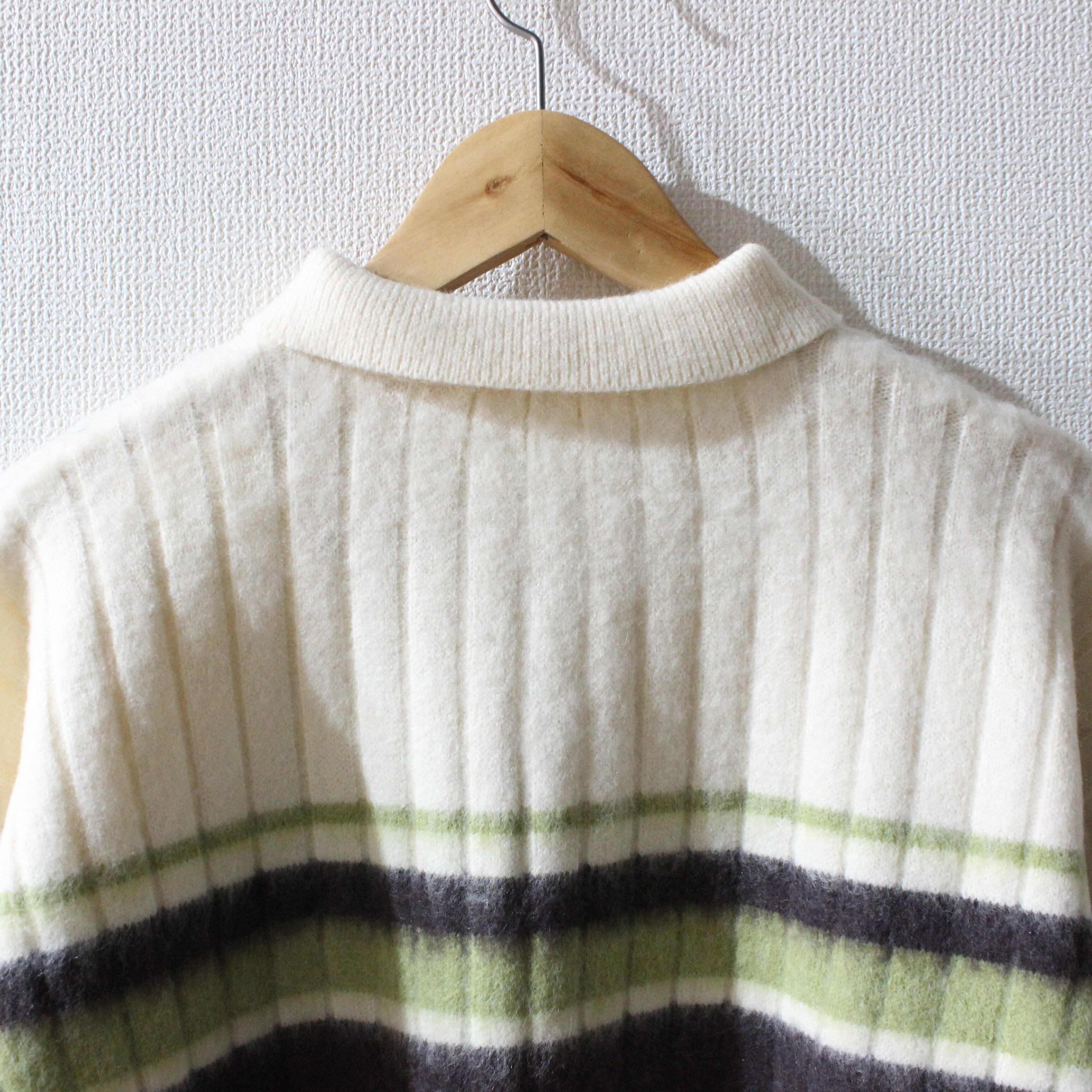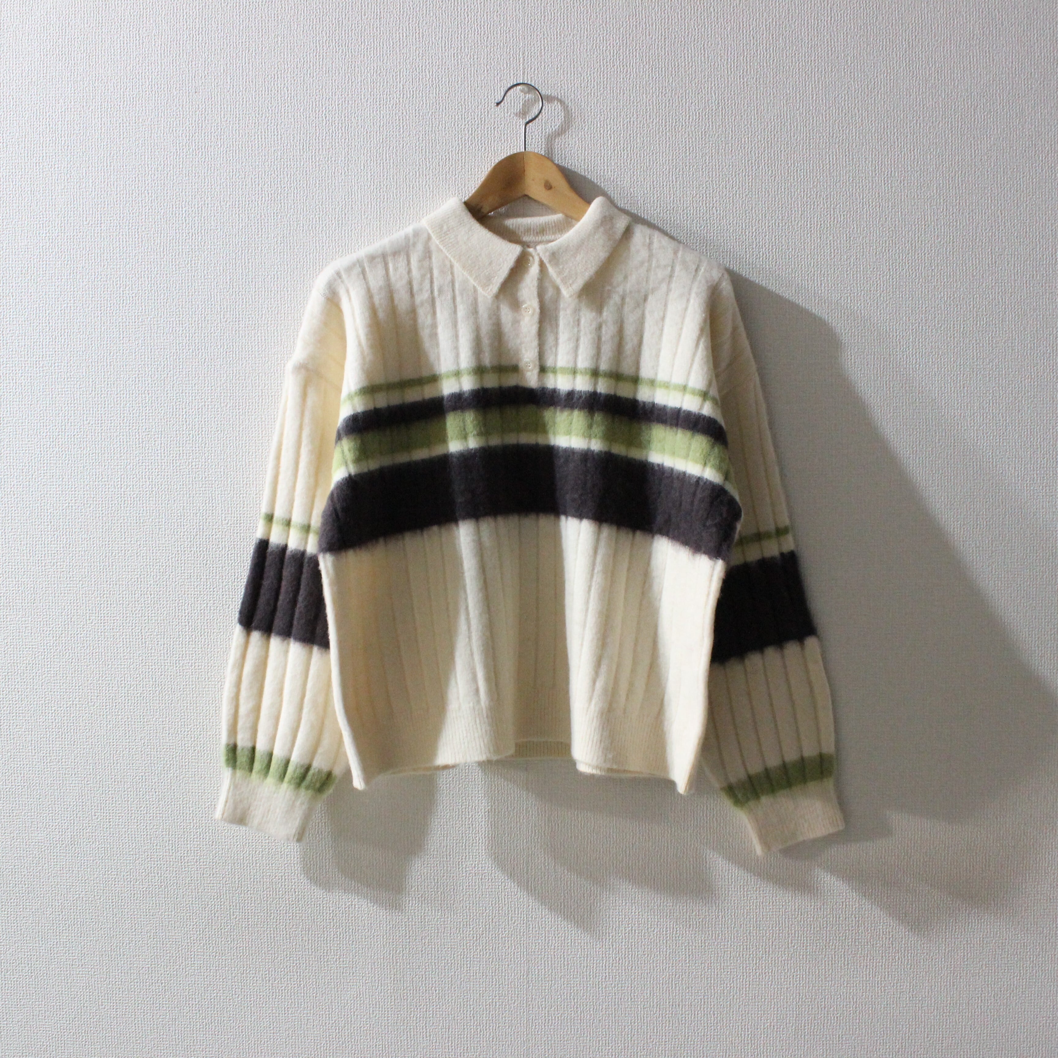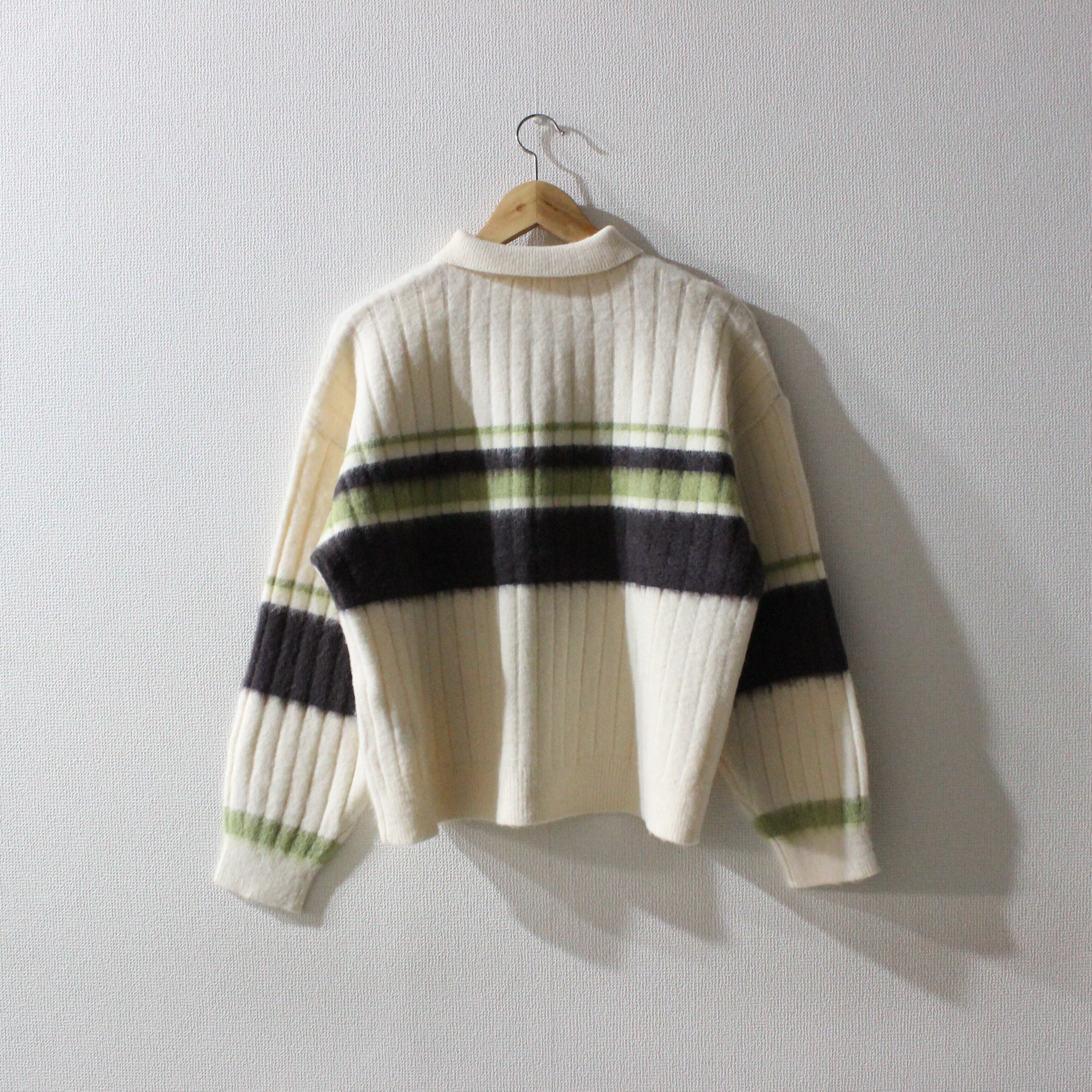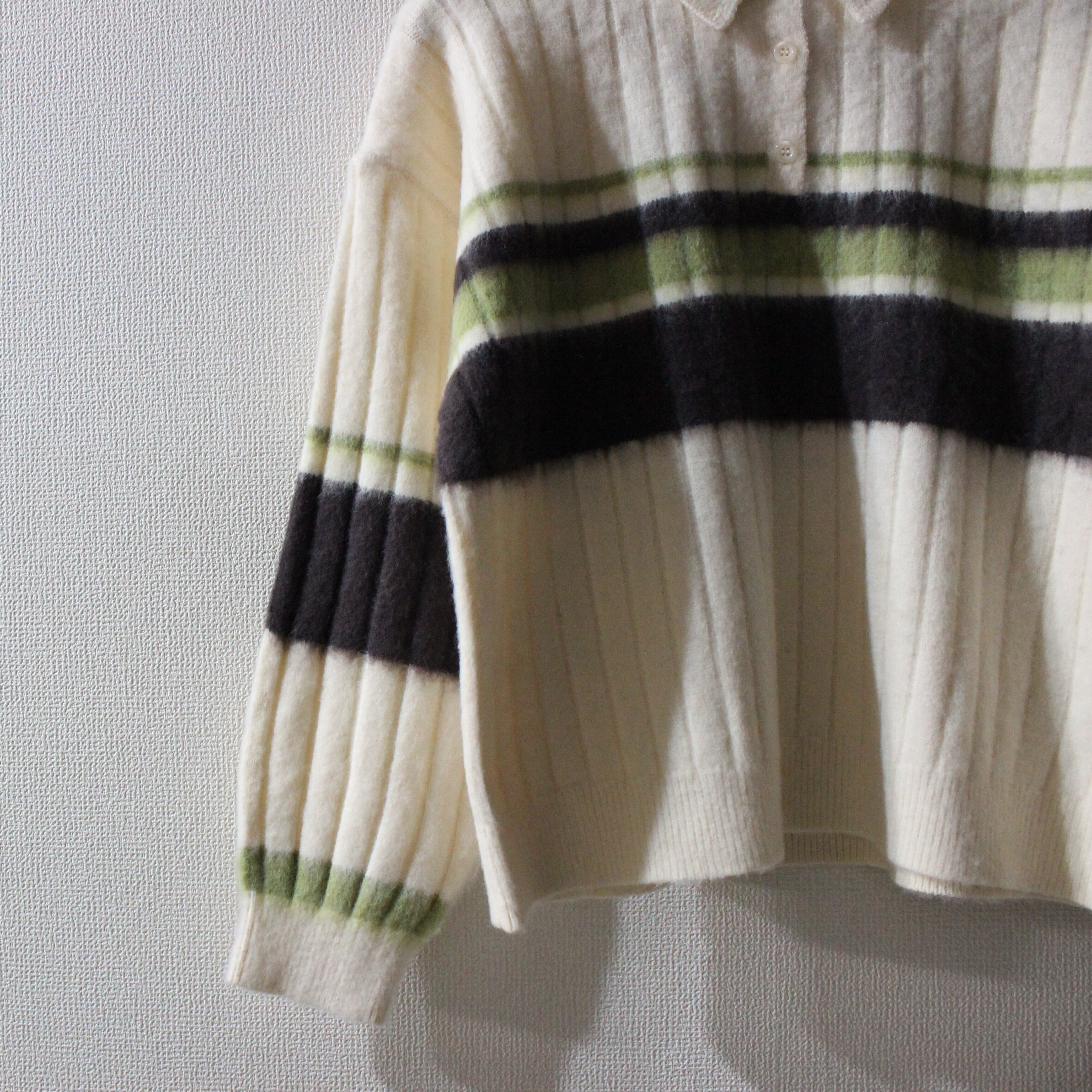 アルパカタッチのボーダーポロニットトップスです。