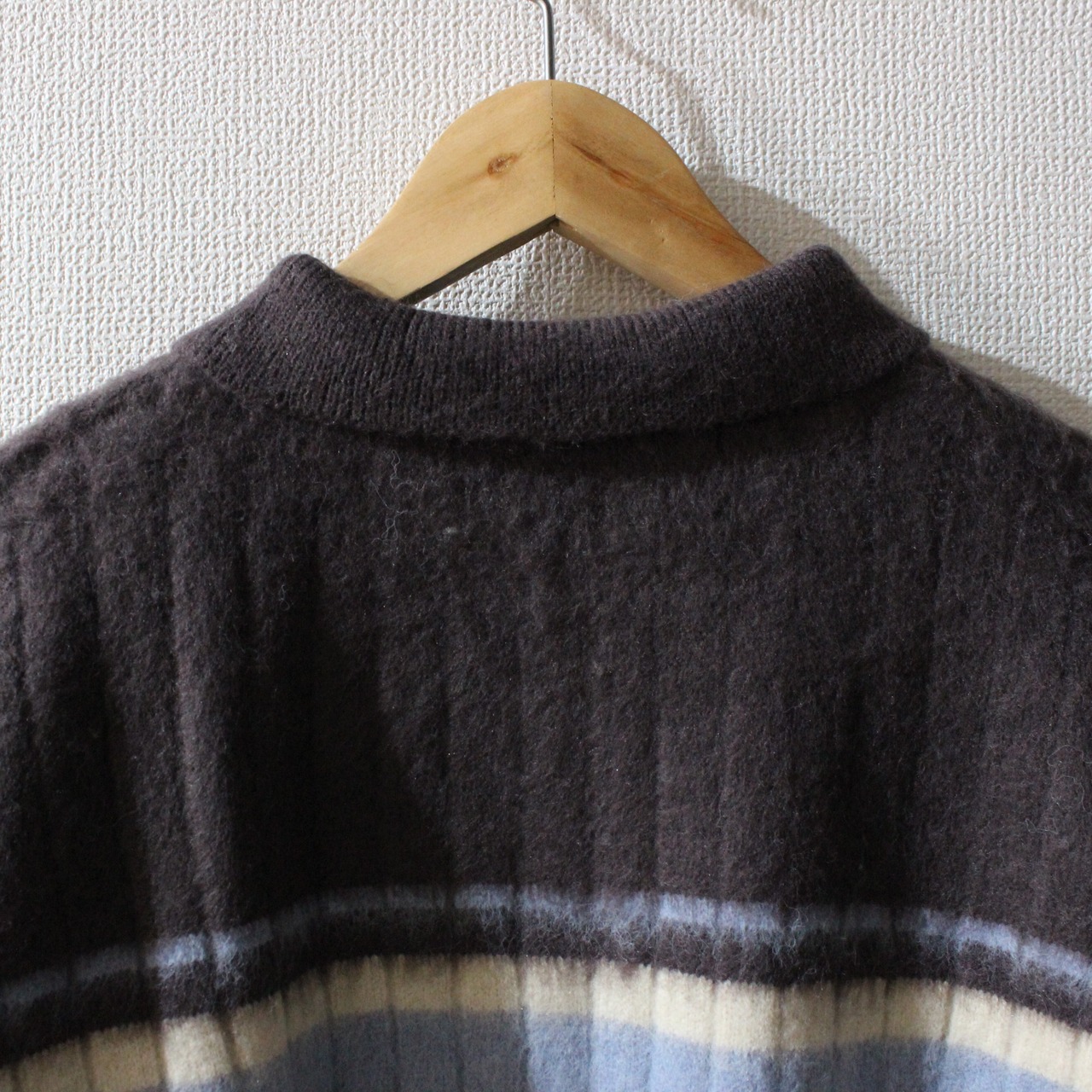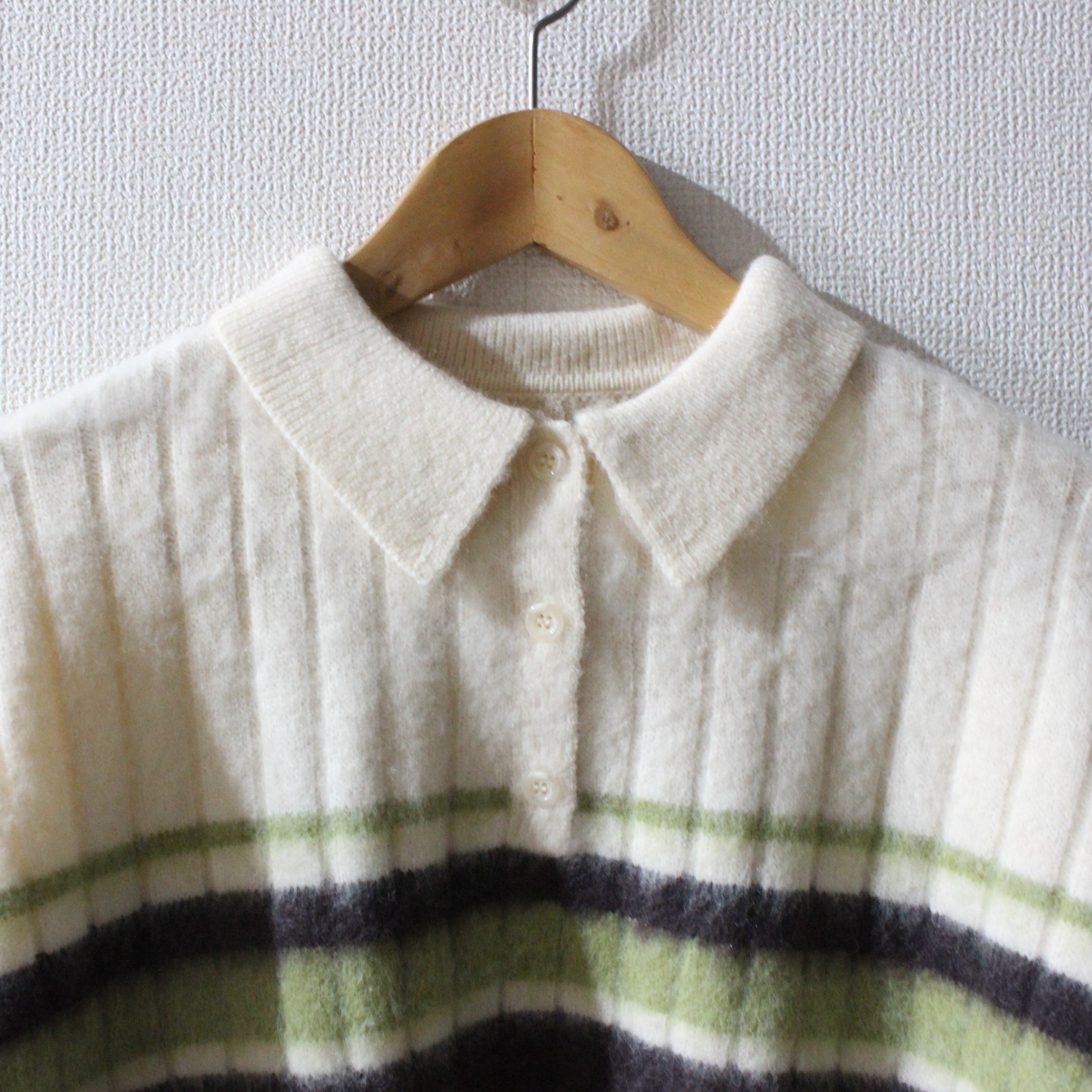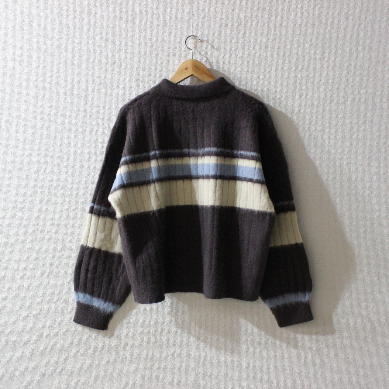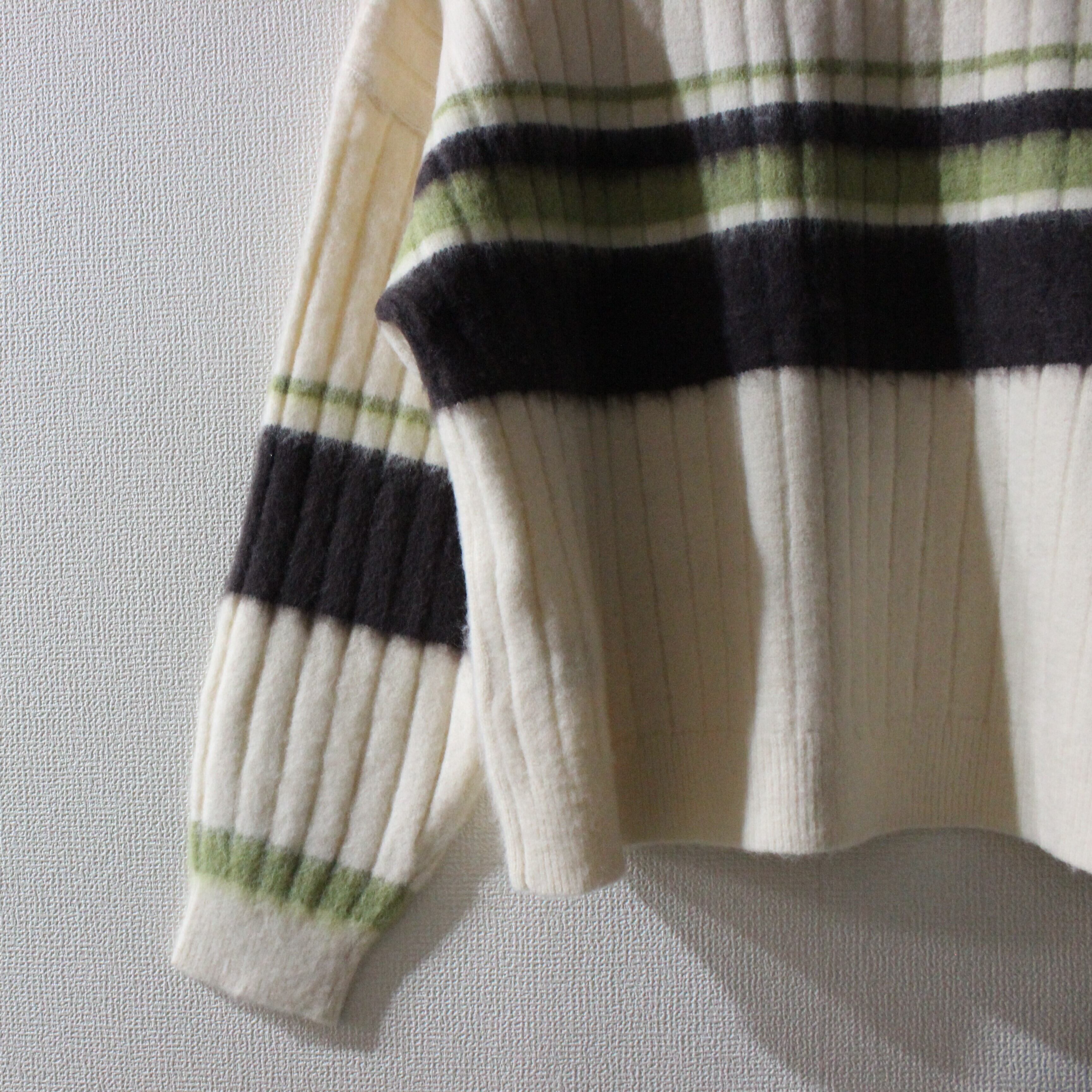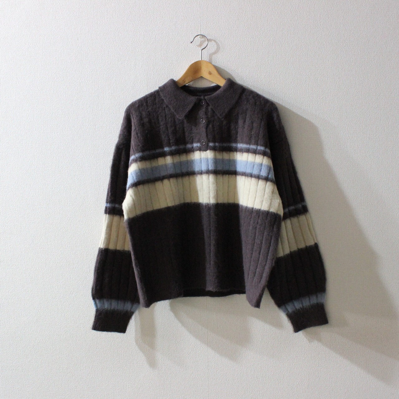 アルパカタッチのボーダーポロニットトップスです。