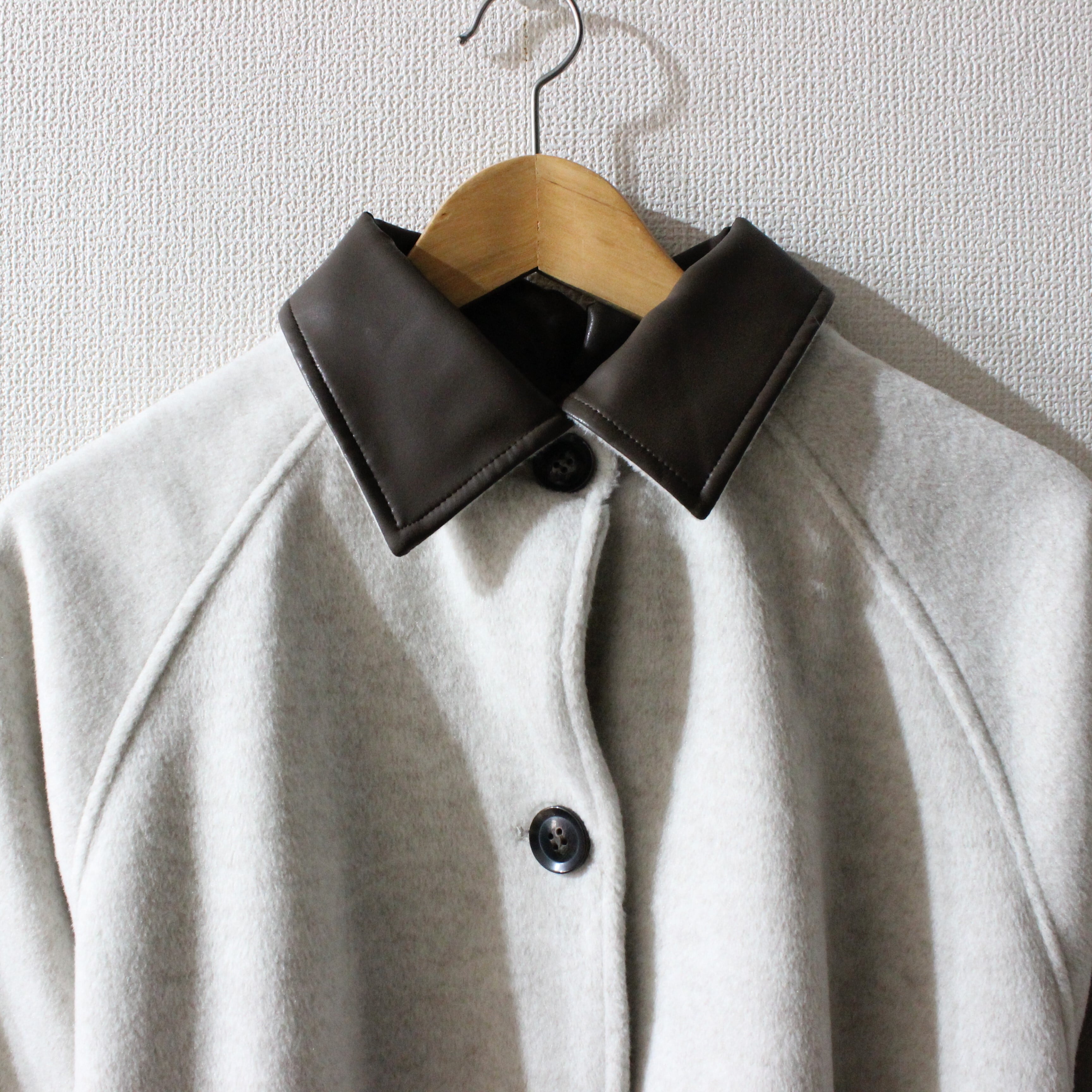 襟部分にはエコレザーを使用しています。