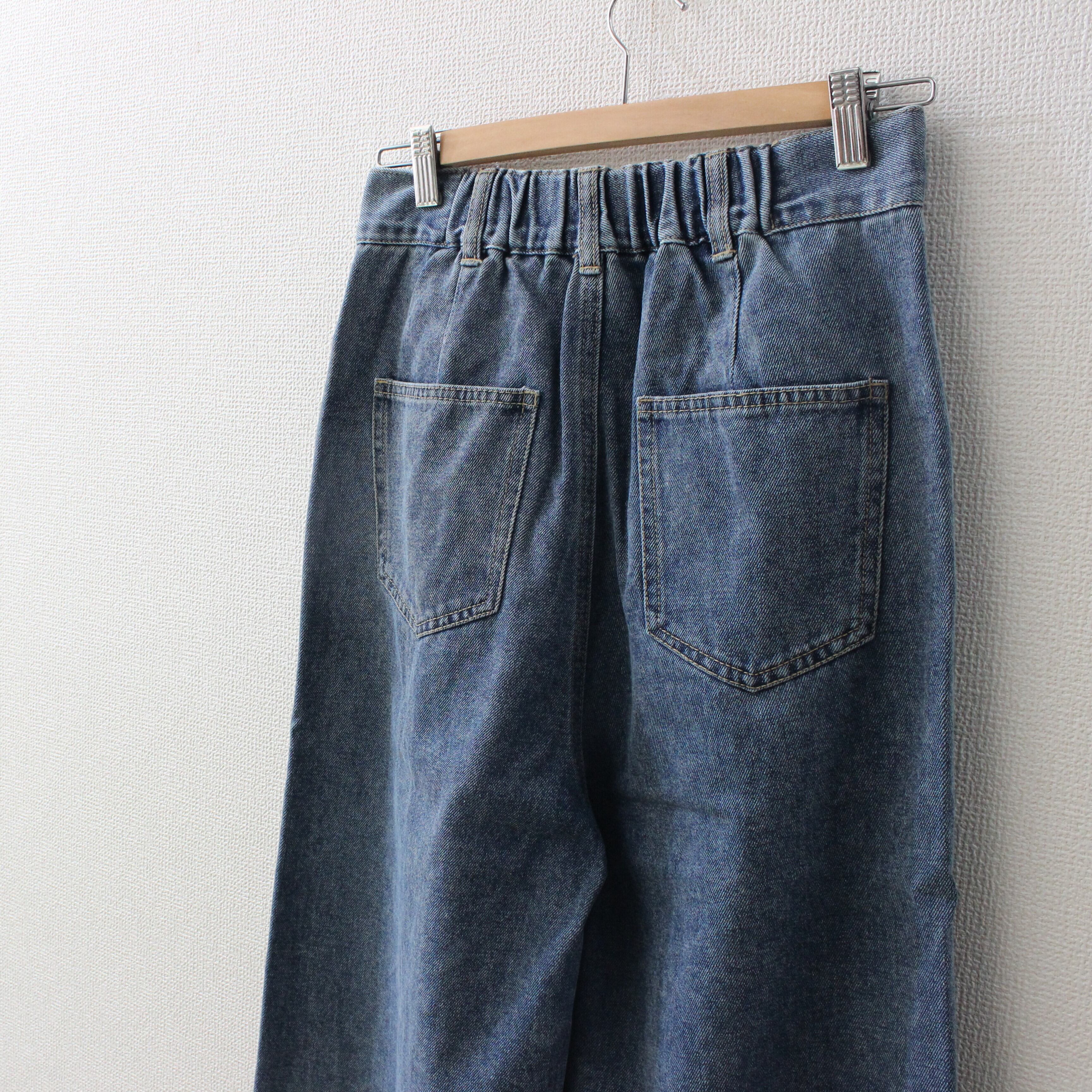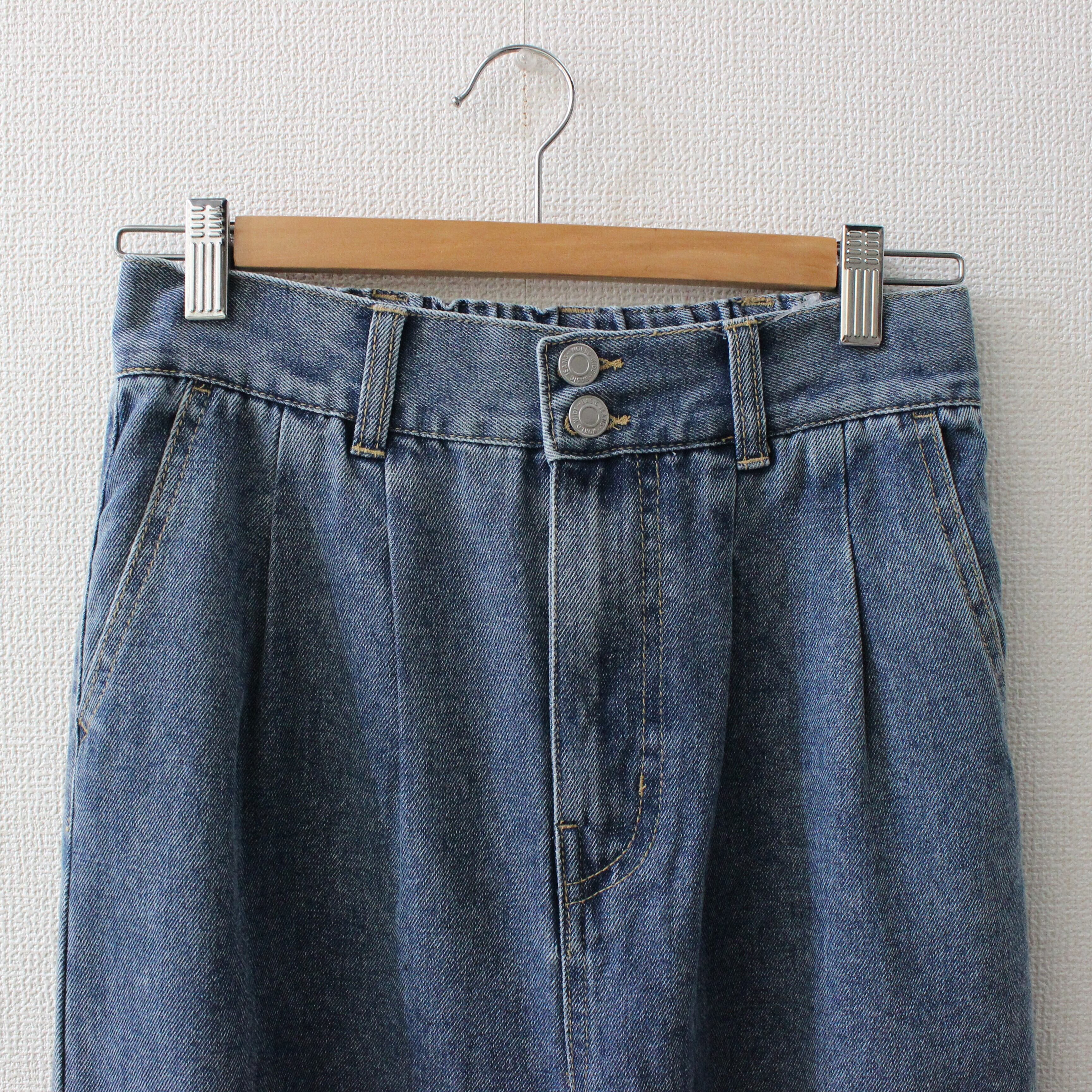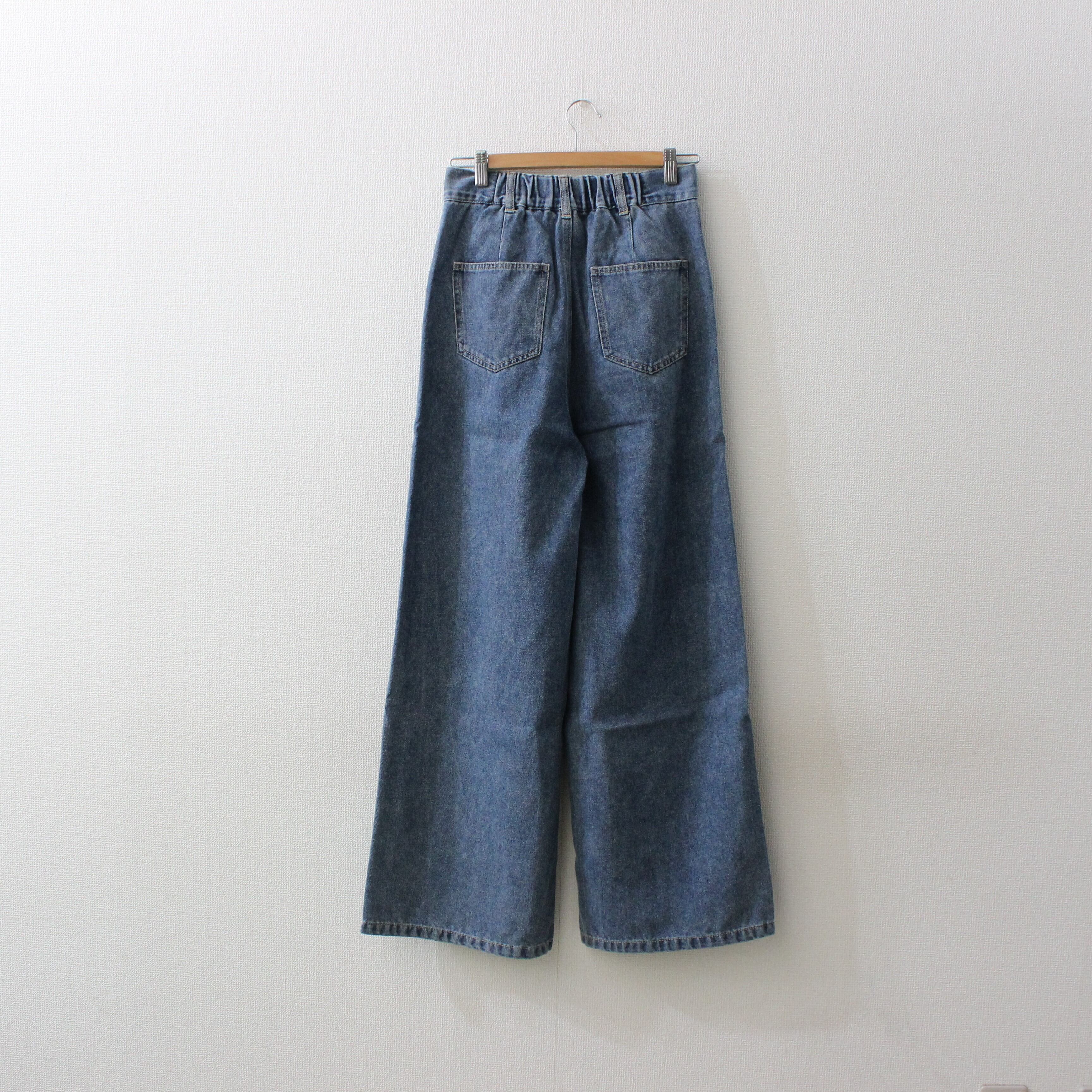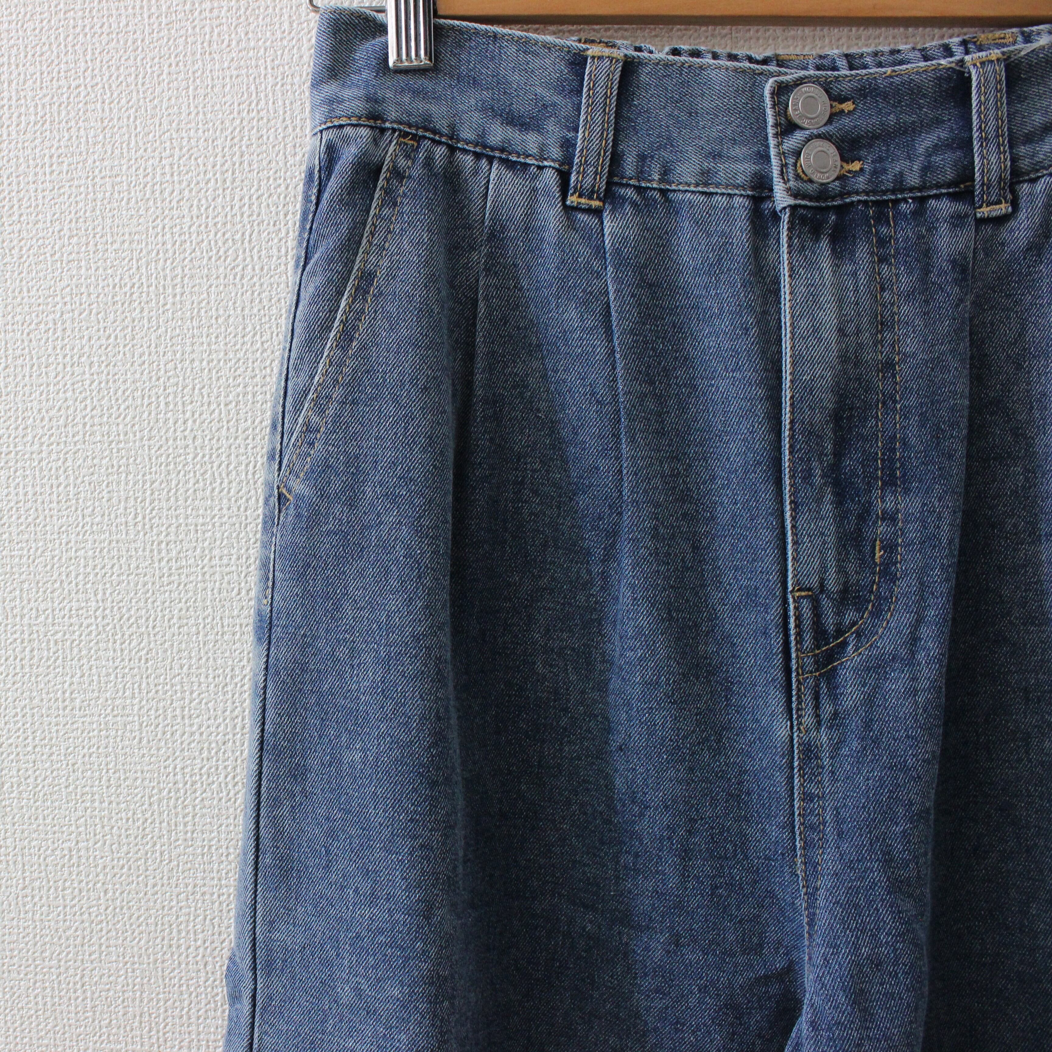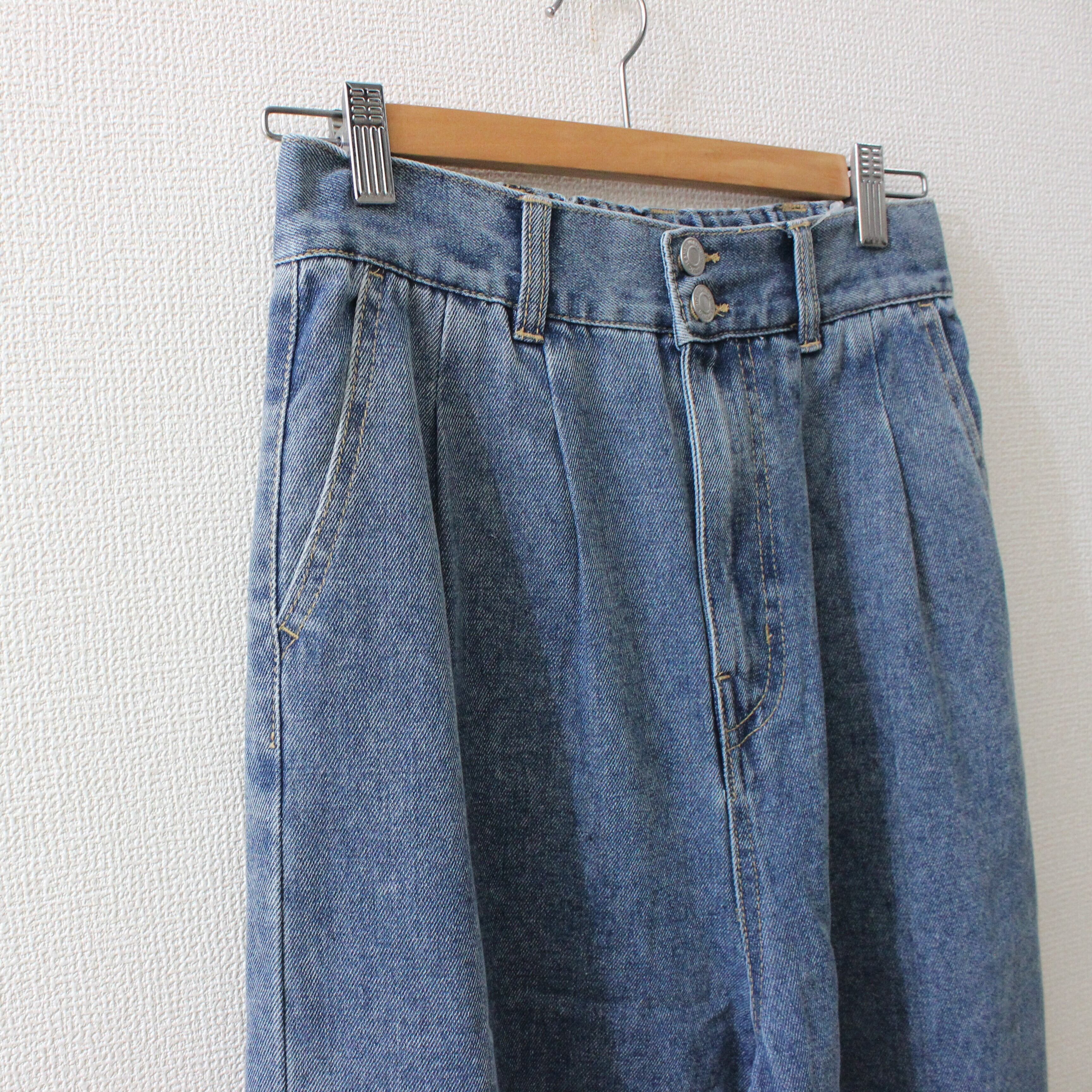 フロントのタック仕様が特徴のワイドデニムパンツです。