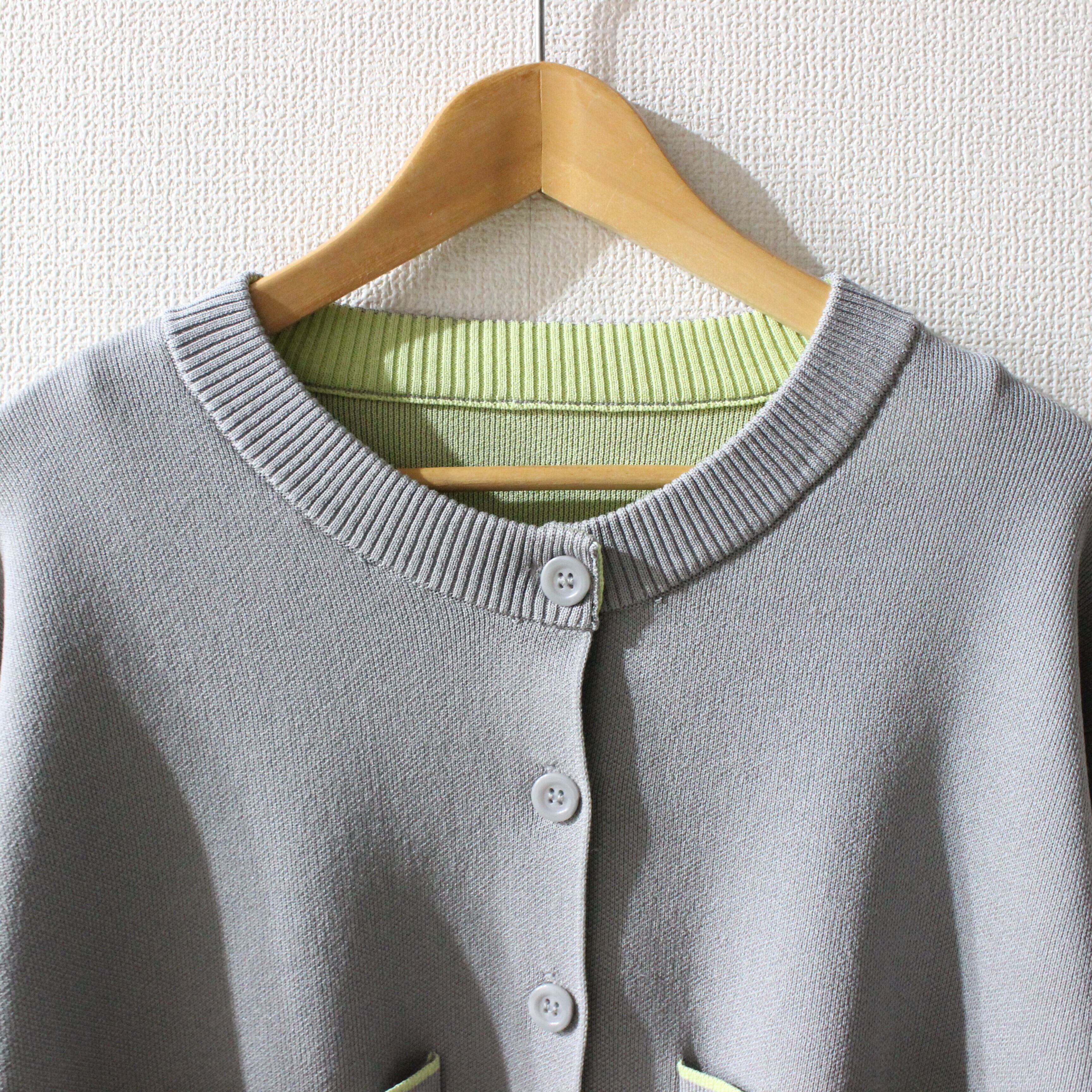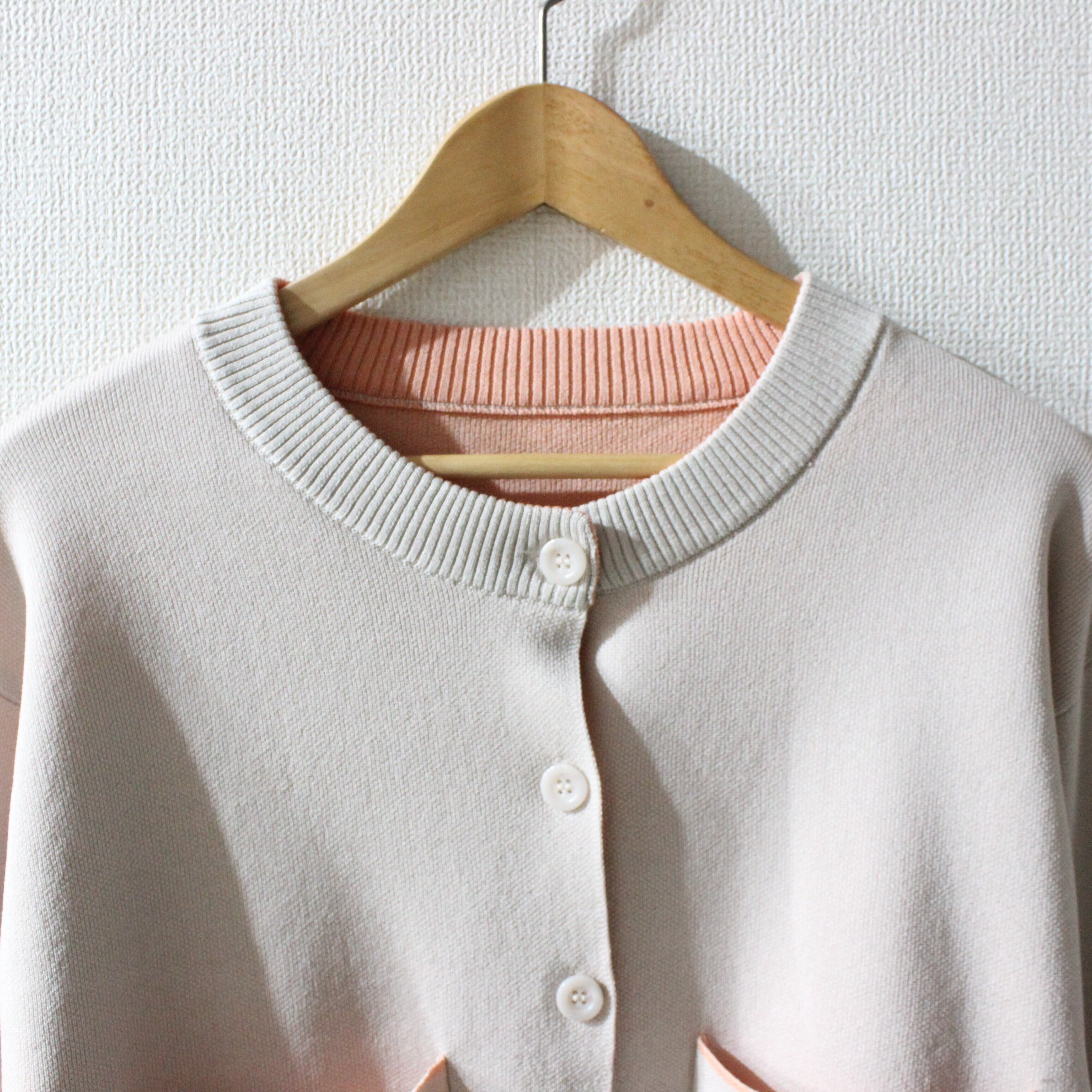 レーヨン混の滑らかな肌触りが心地よく、ダブルフェイス仕様のカーディガン。