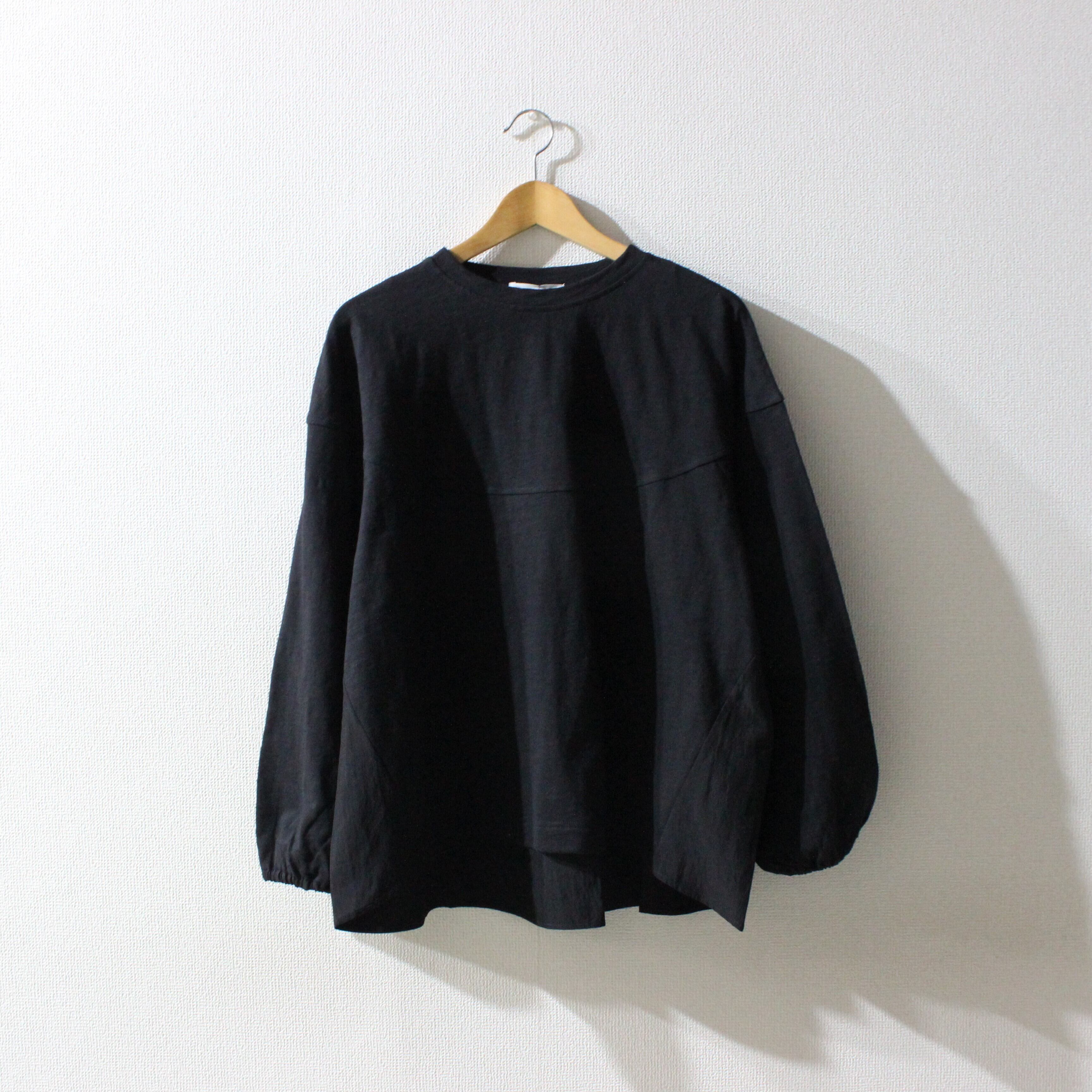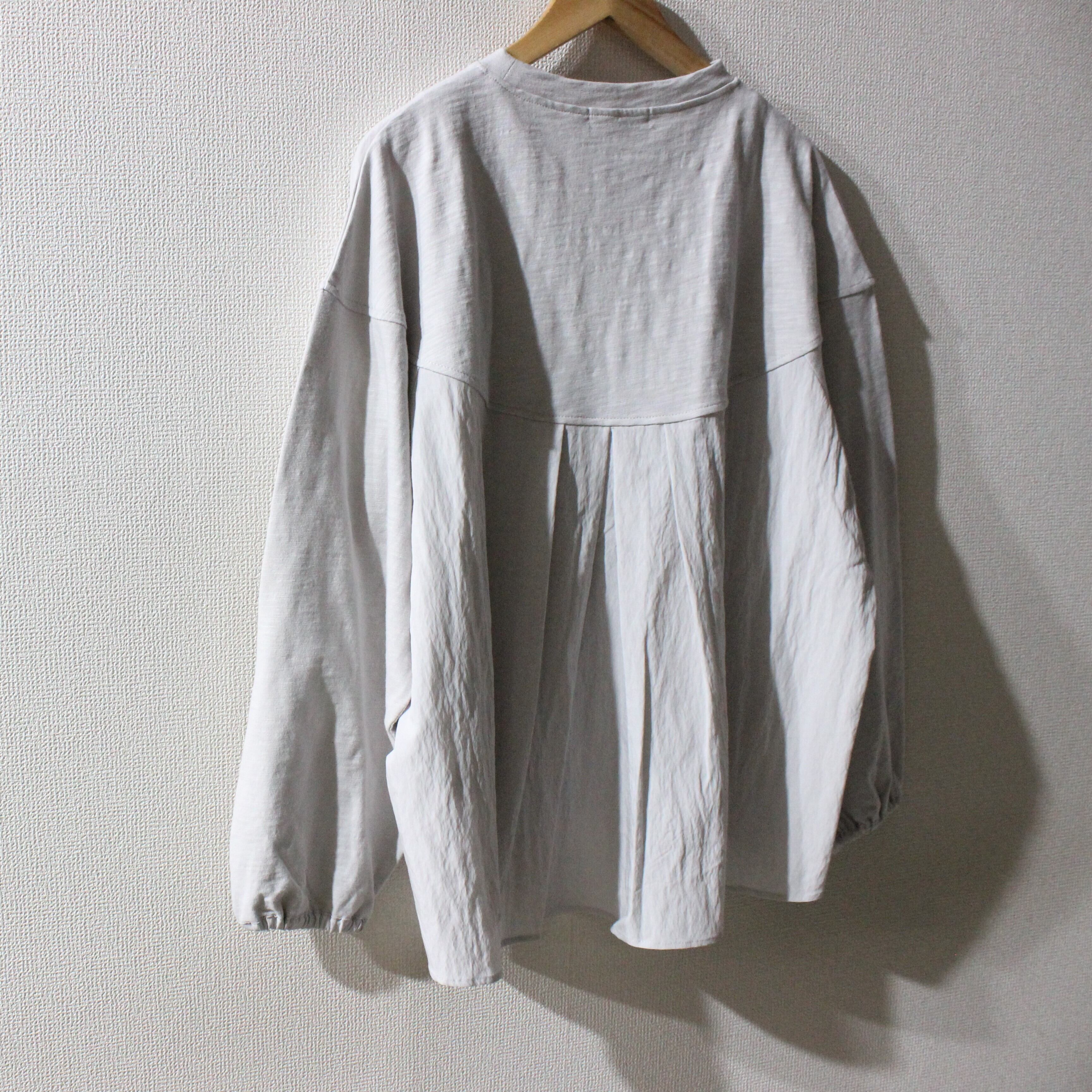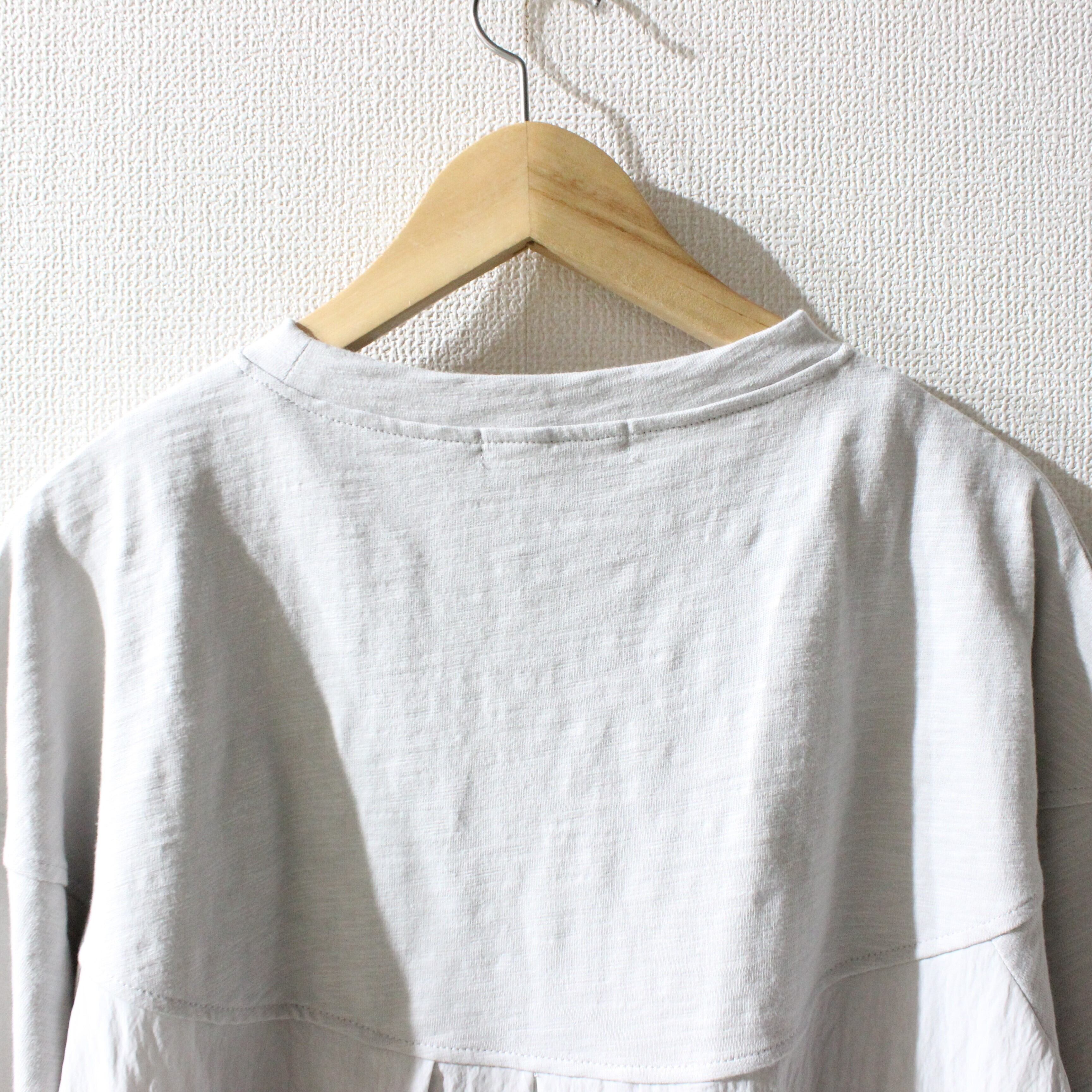 corailスラブ天竺後ろ布帛切替ラウンドトップス