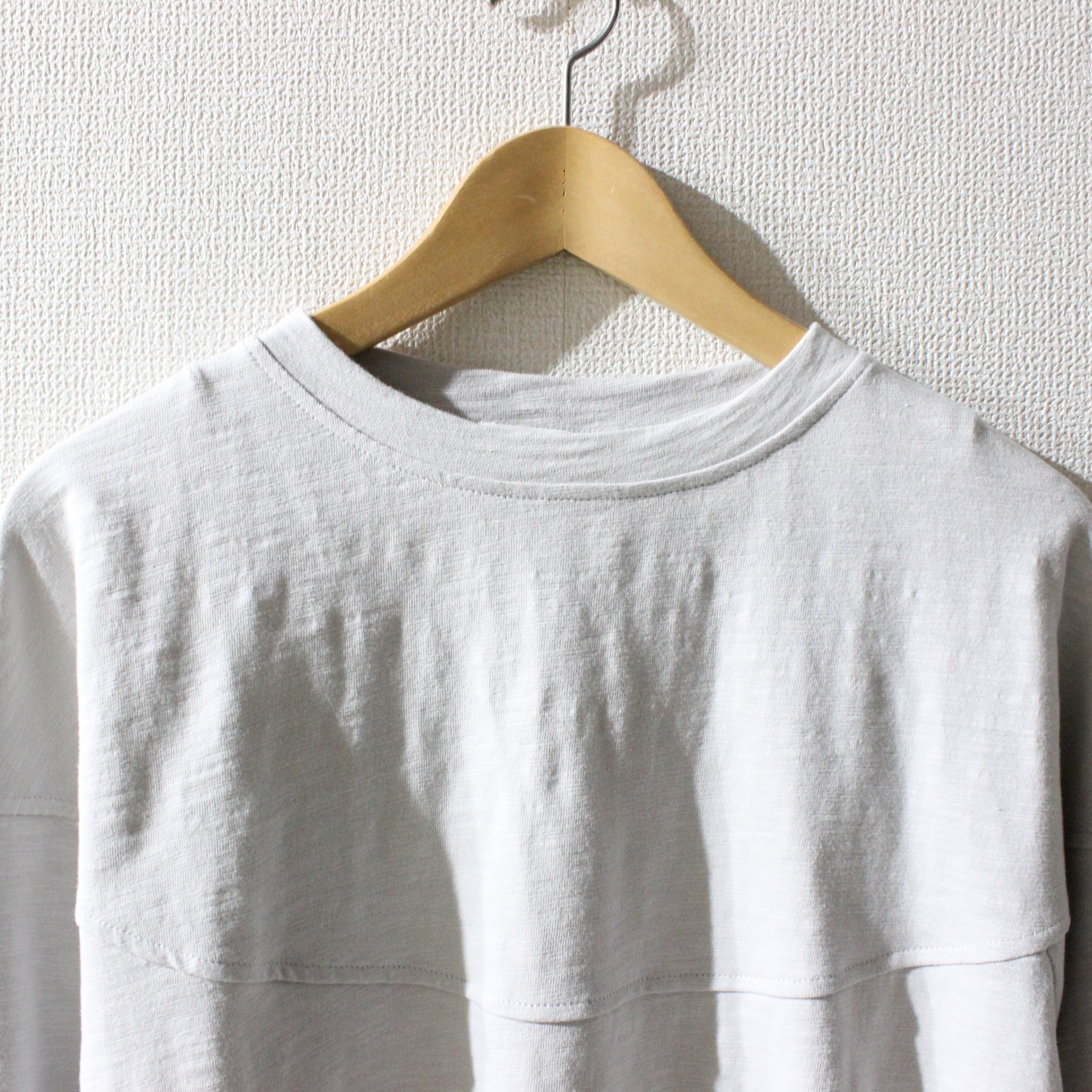ちょっぴり漂うヴィンテージ感が特徴的なコットンスラブ天竺のトップスです。