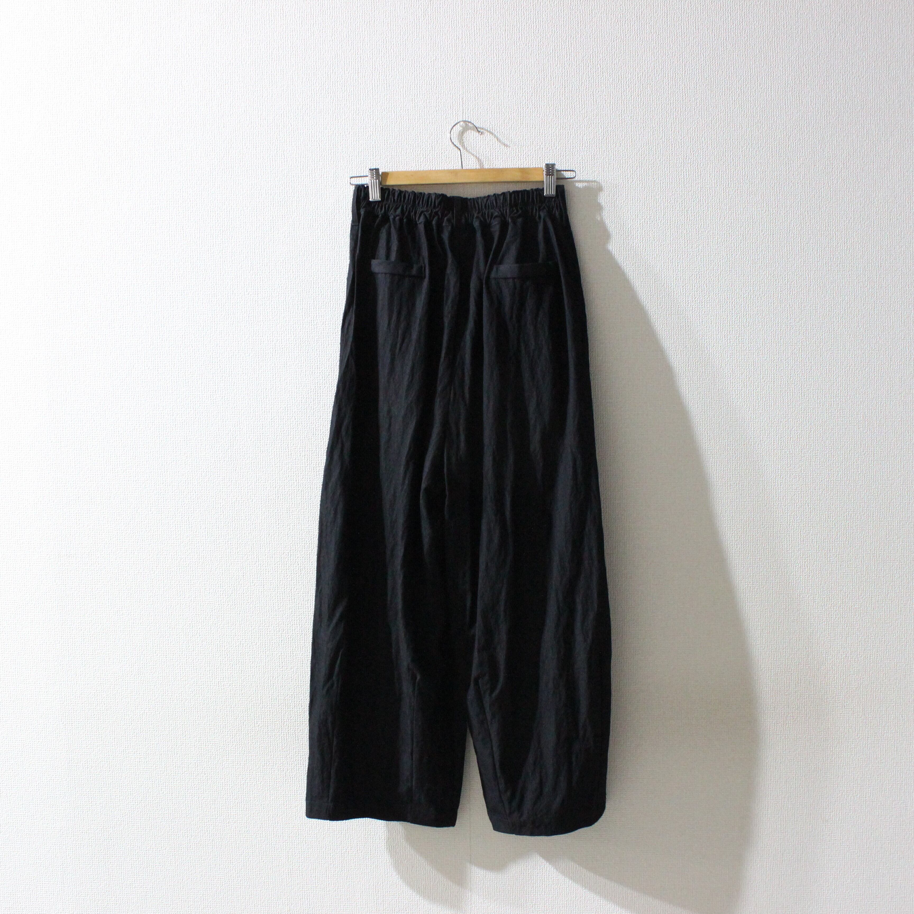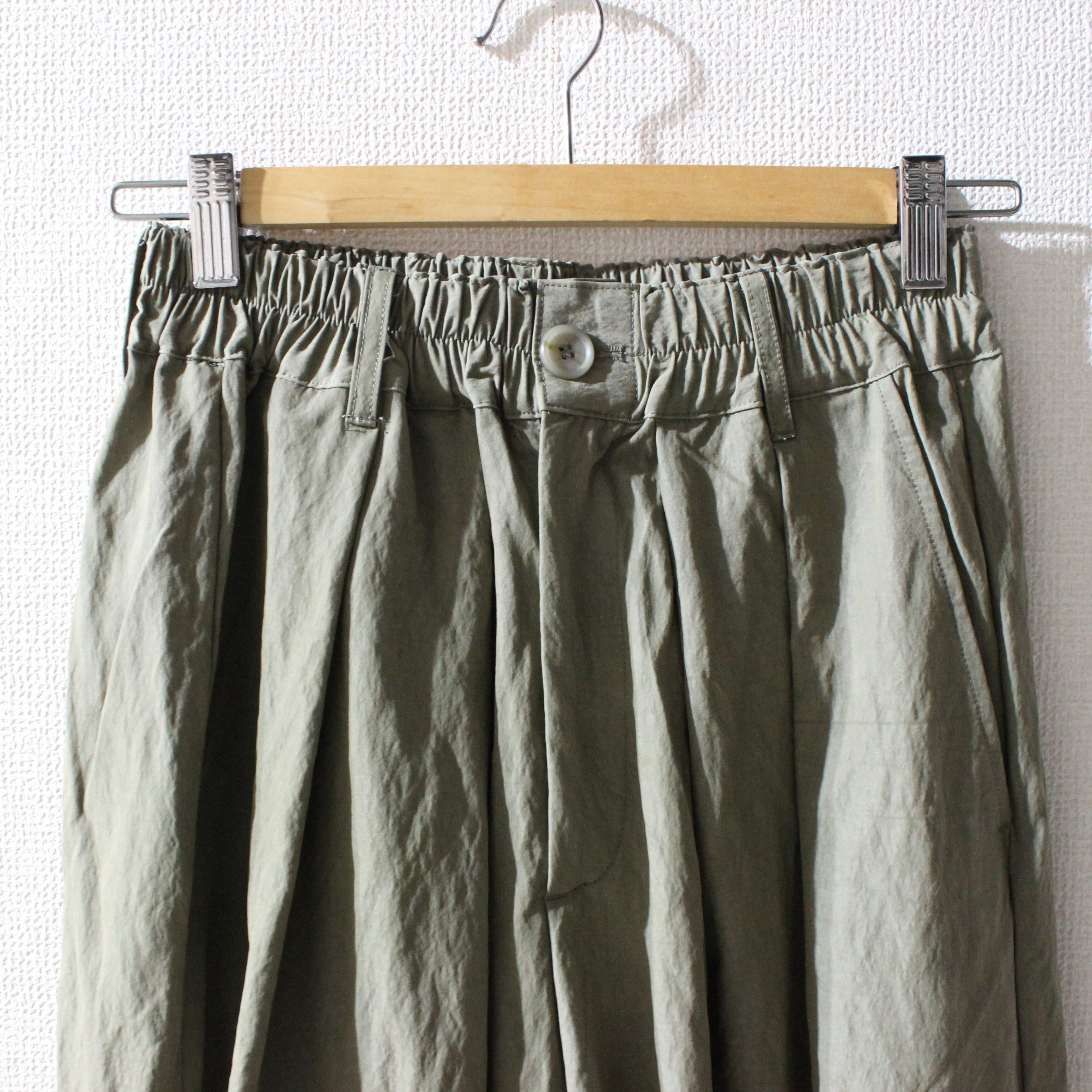 ゆったりしたタックパンツは、裾のダーツで自然な立体感も加えました。
