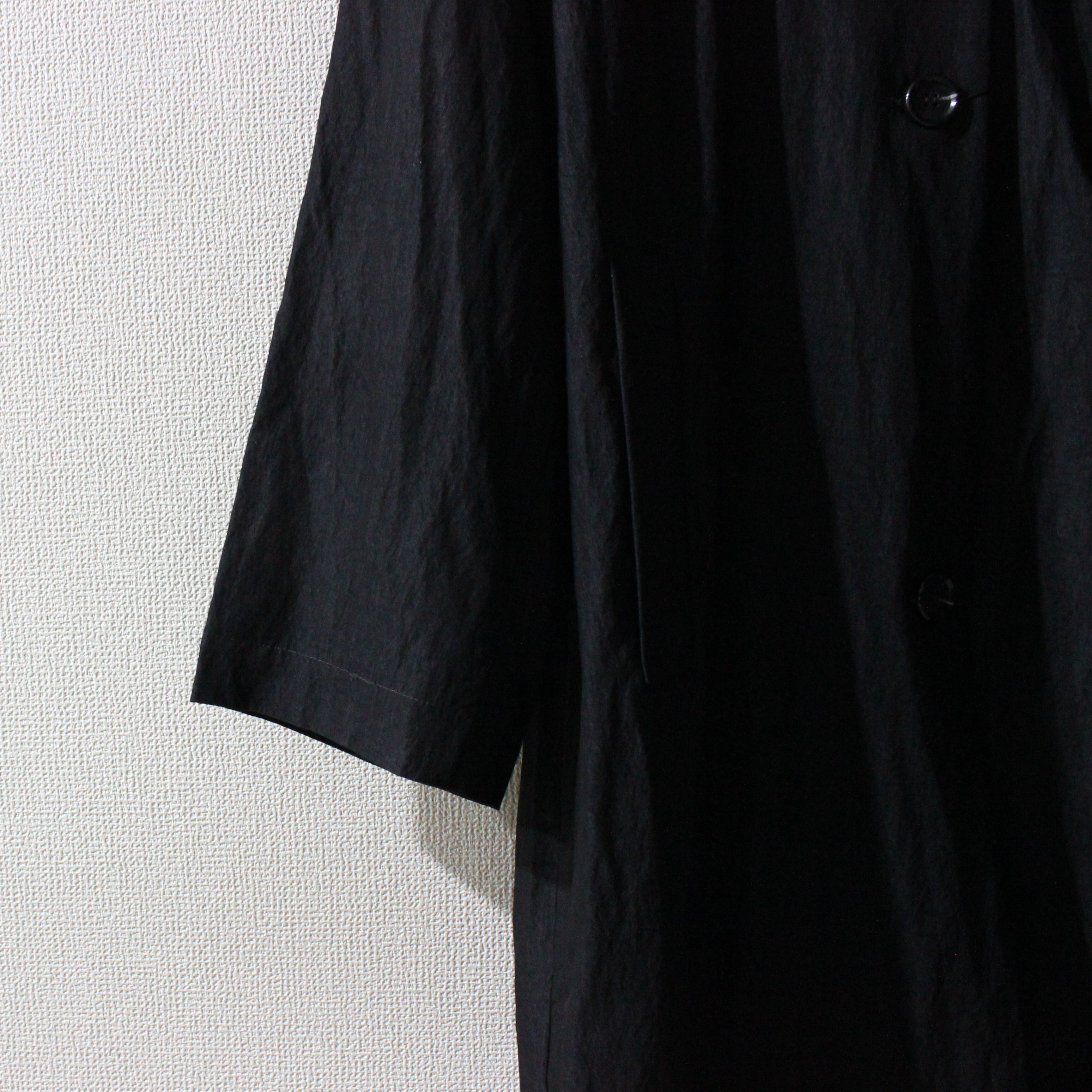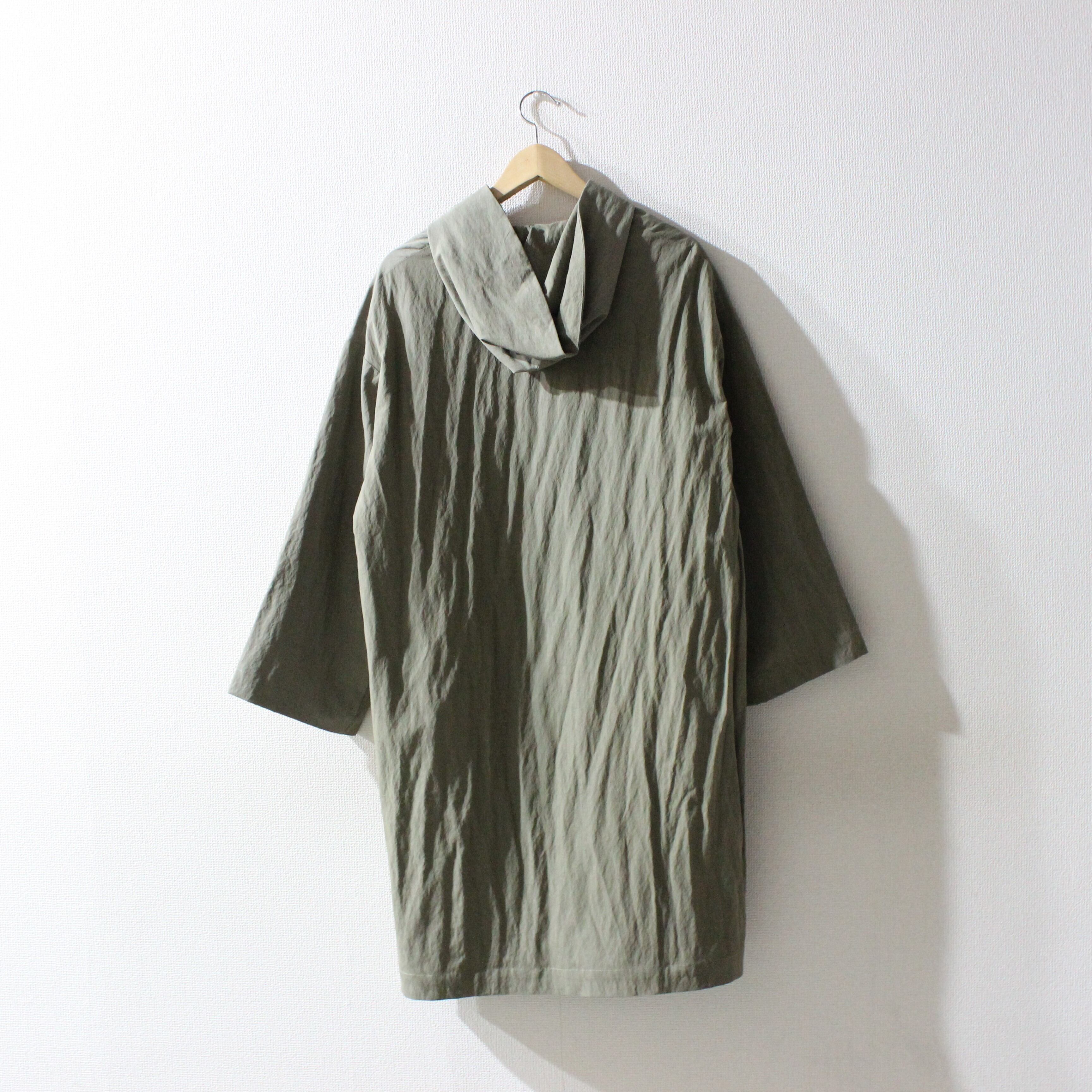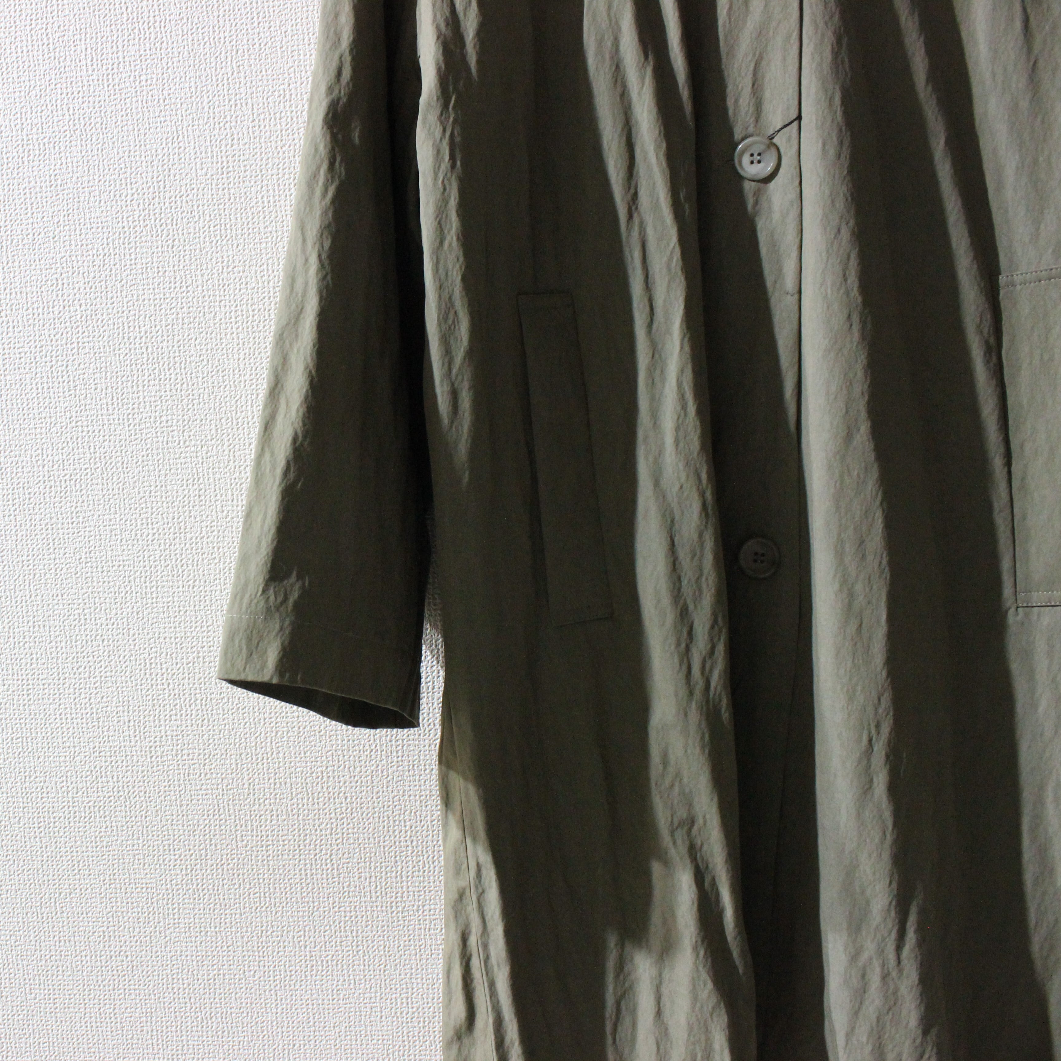ナイロンのタフさをあわせもった薄めの混紡生地を使ったコートです。
