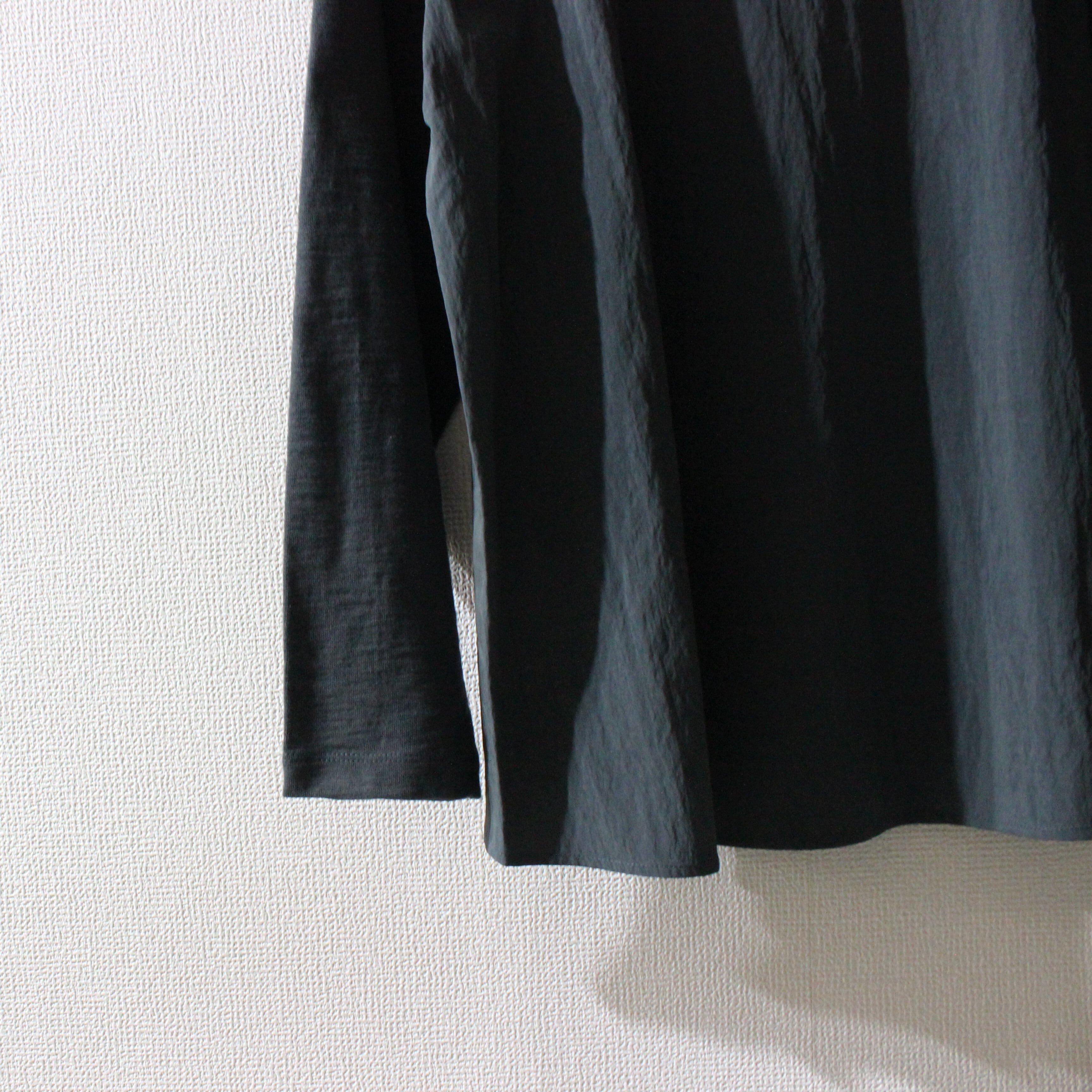 corailスラブ天竺後ろ布帛切替ボトルネックトップス