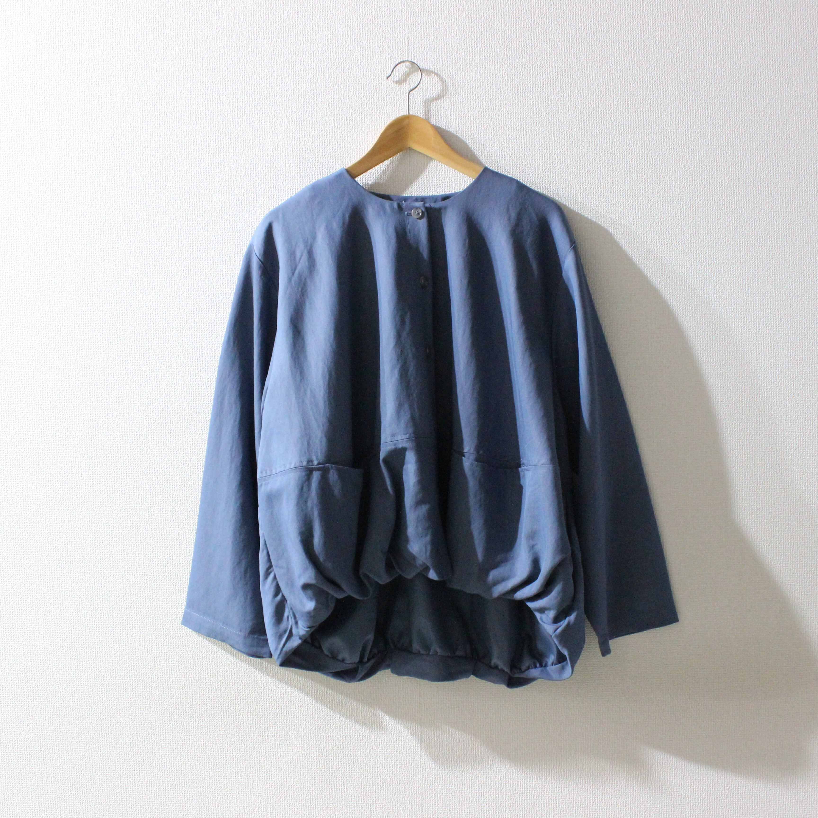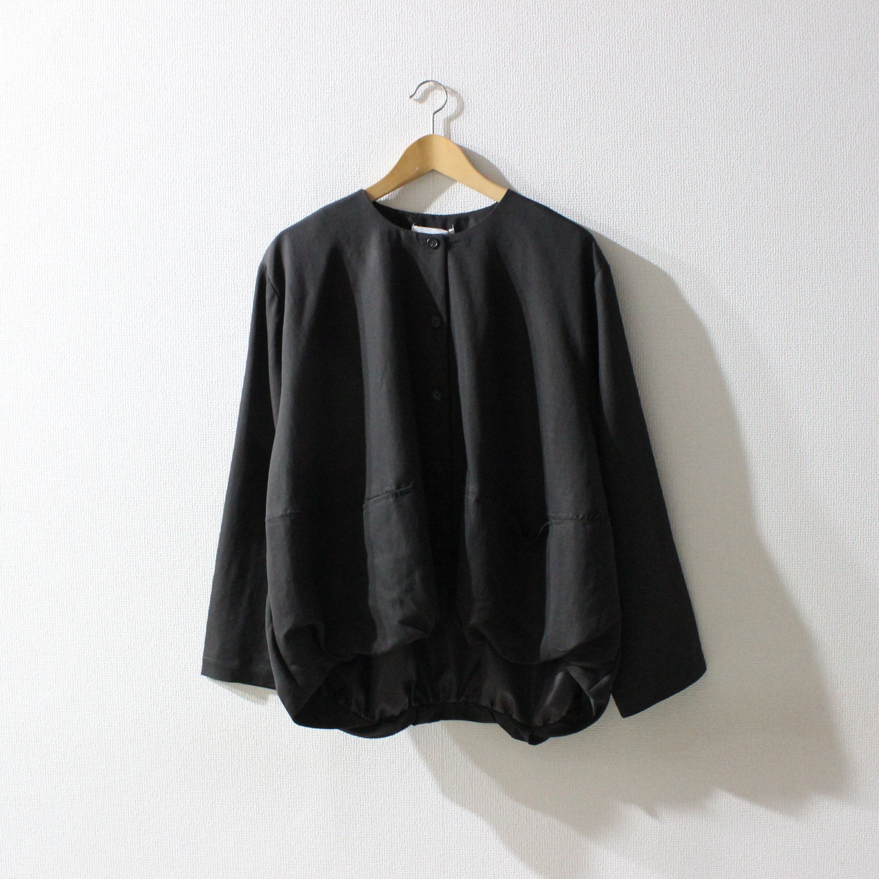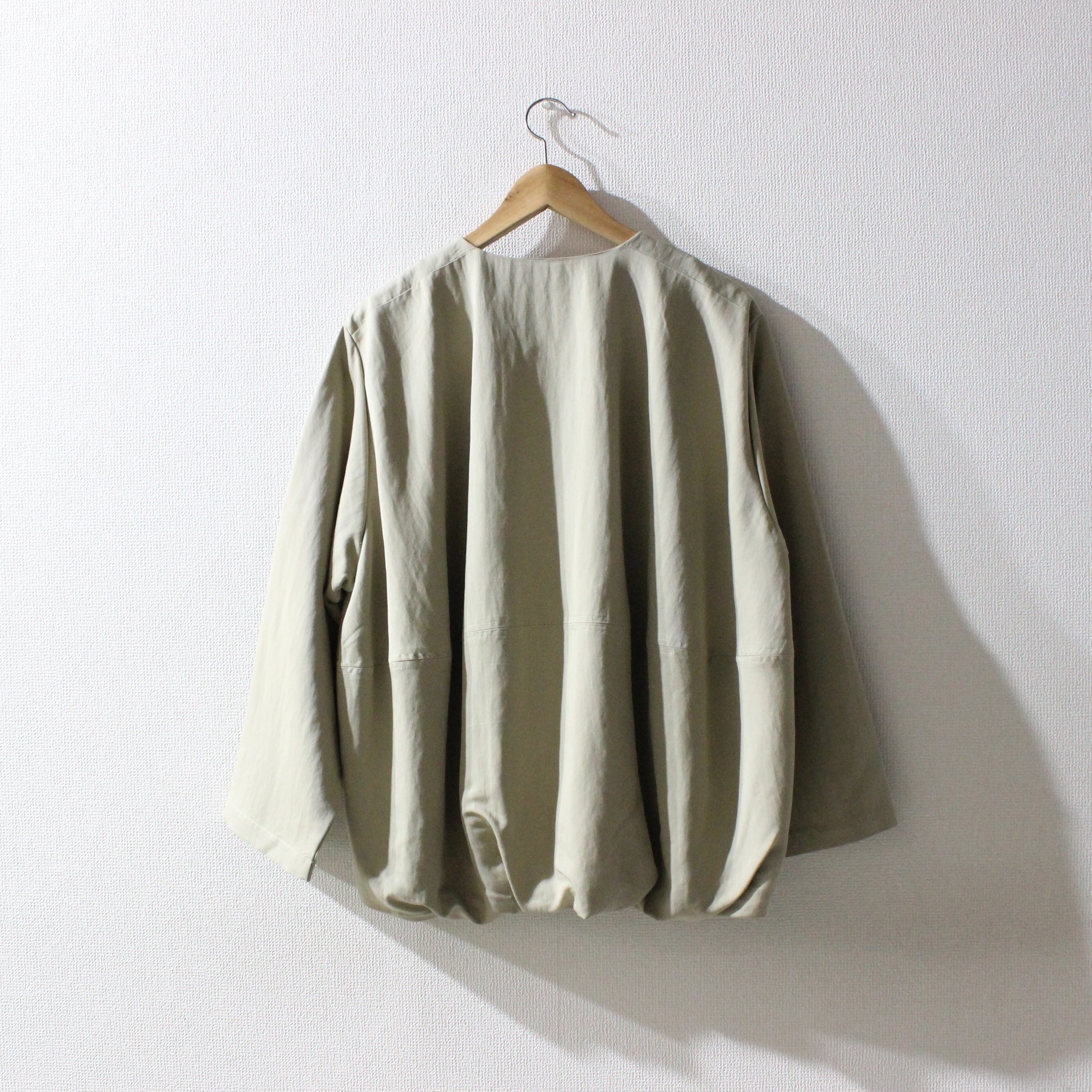 コロンとしたバルーンシルエットが特徴的なジャケット。