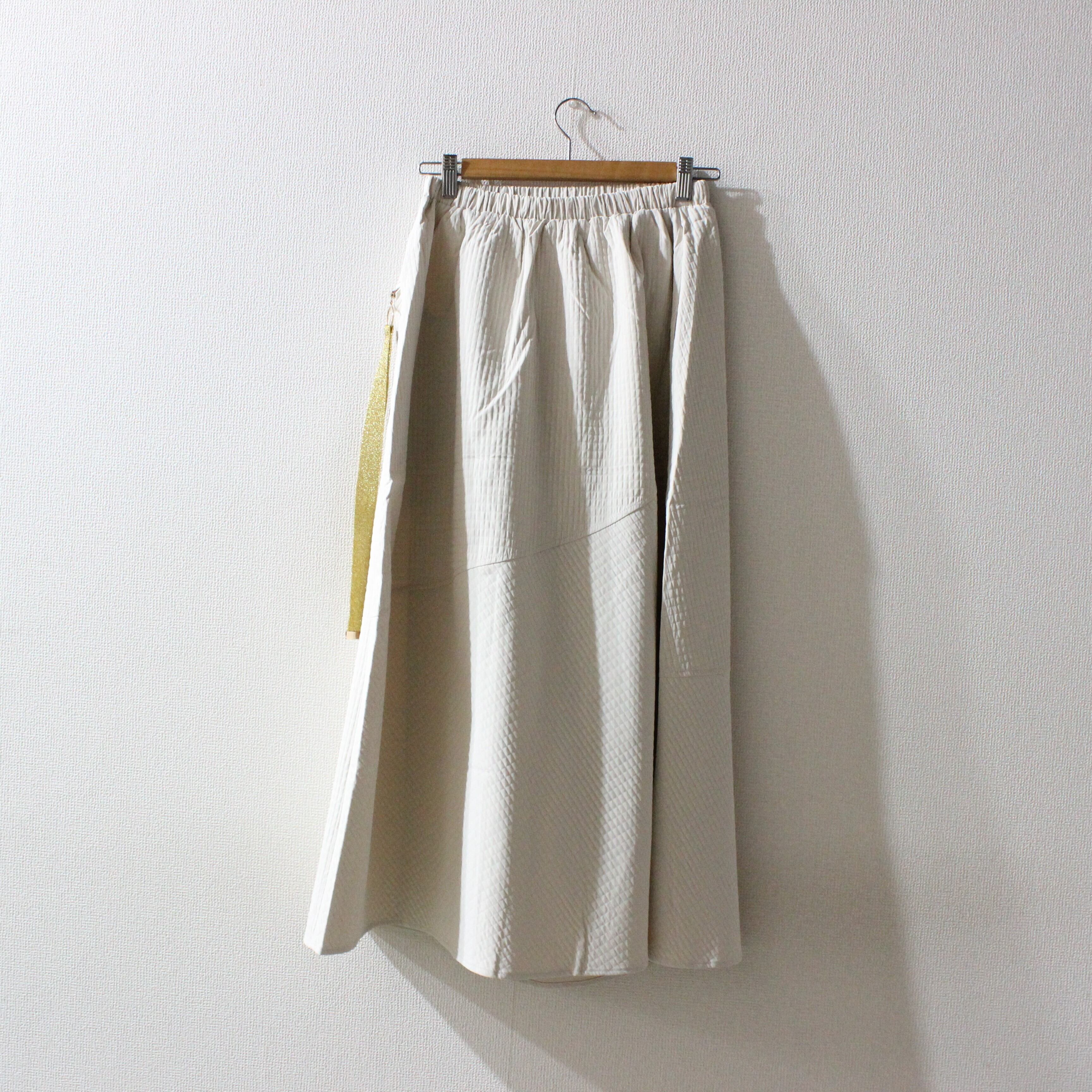定番のフレアスカートに、エッジの効いたゴールドテープを走らせることで
