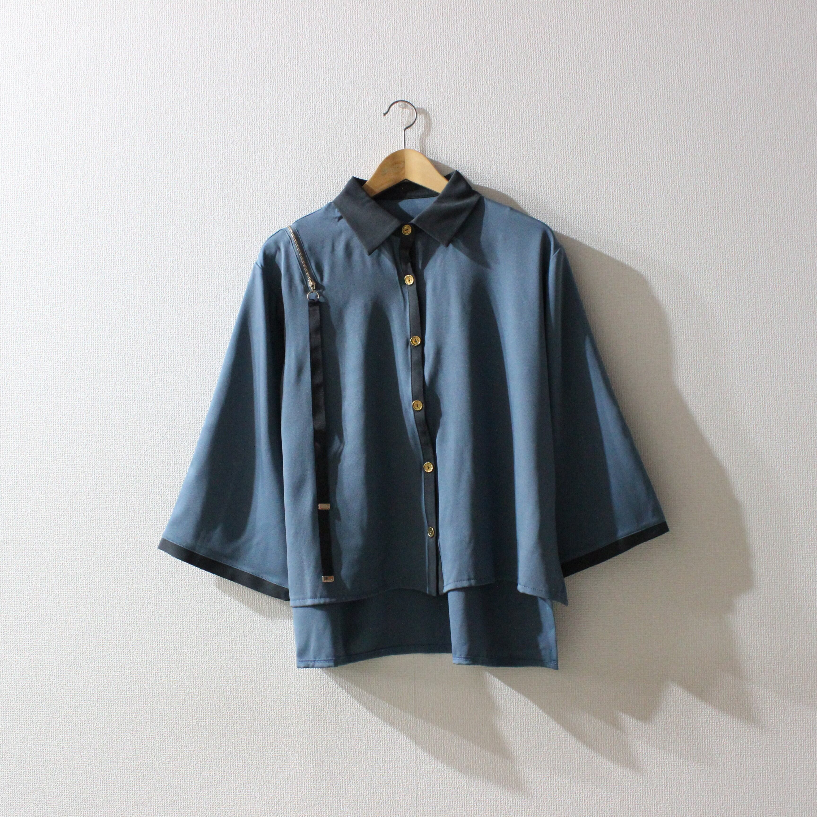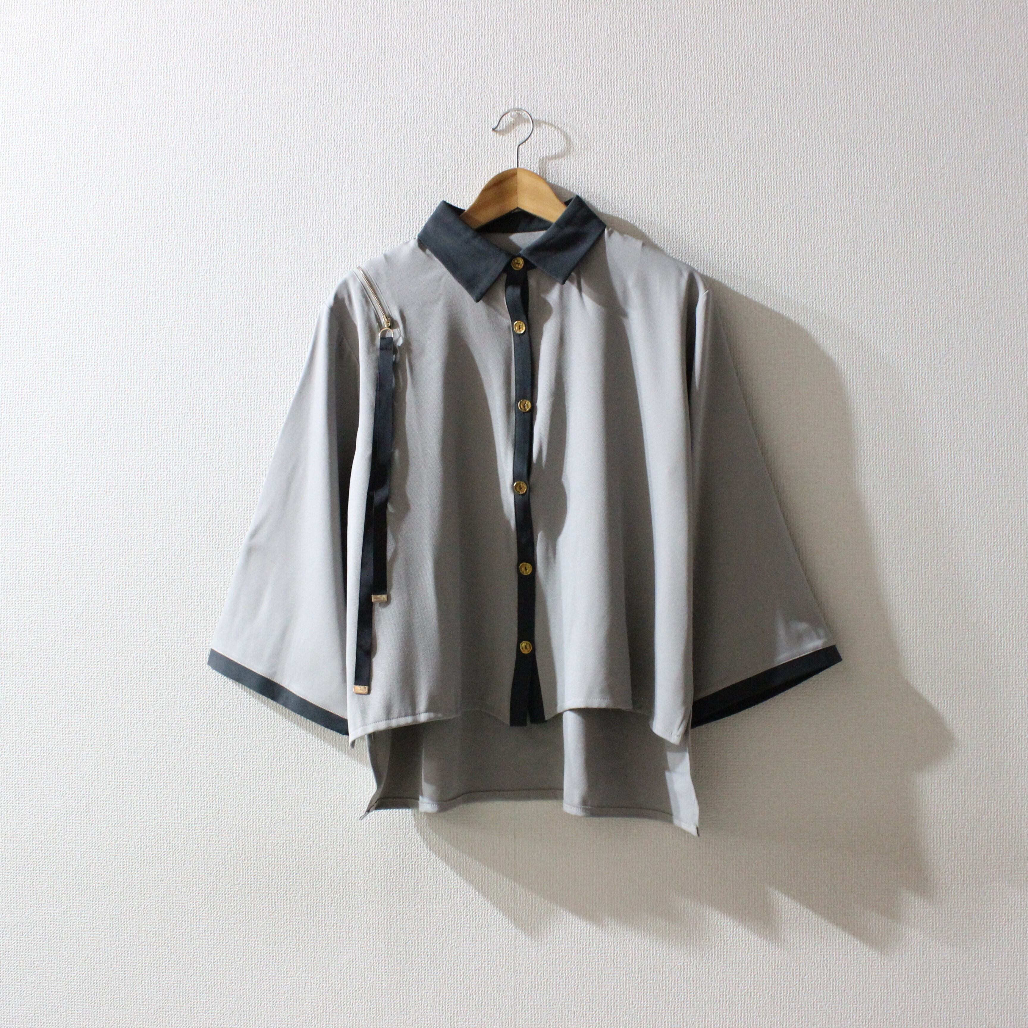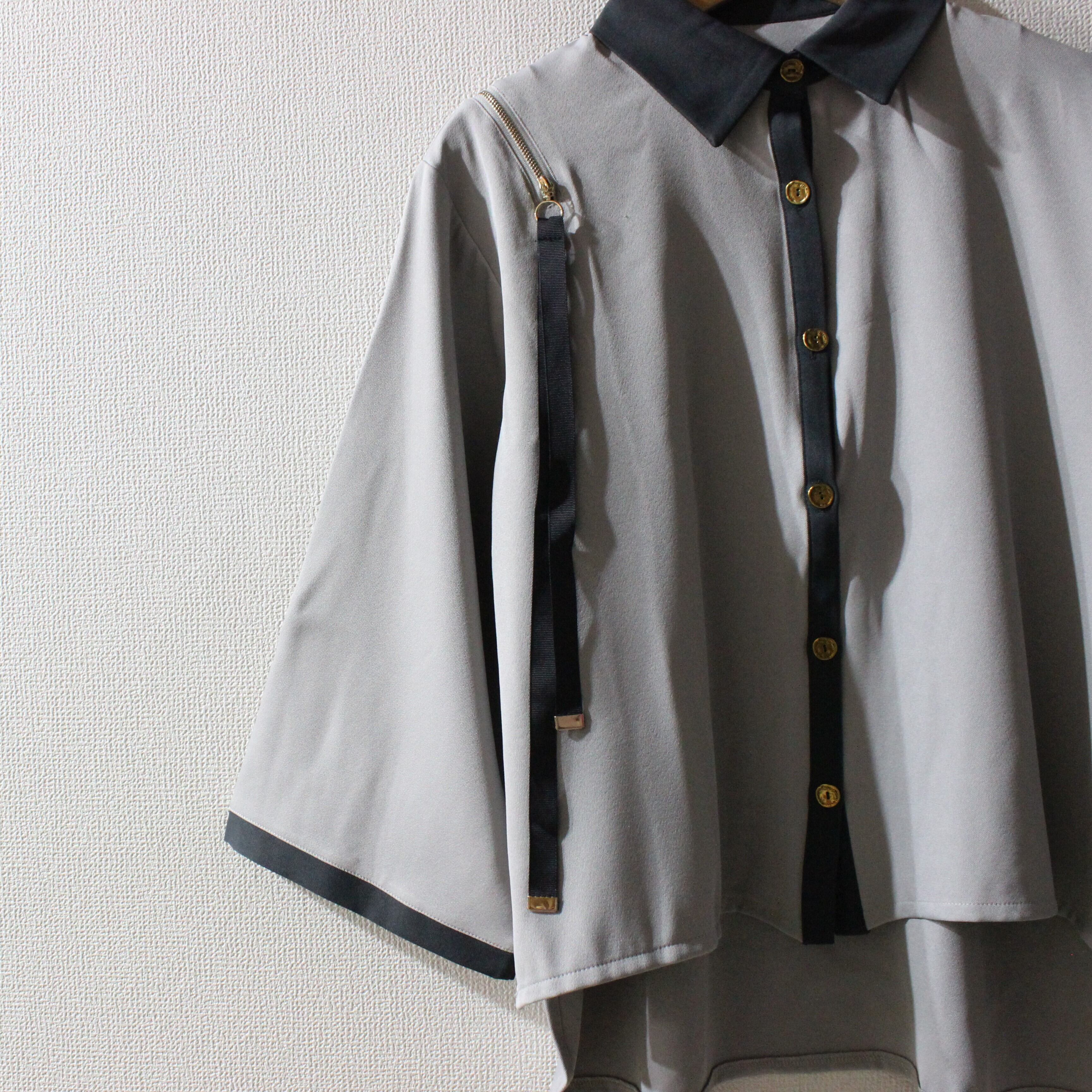 TREE OF HEARTソフトツイルショルダージップワイドスリーブブラウス