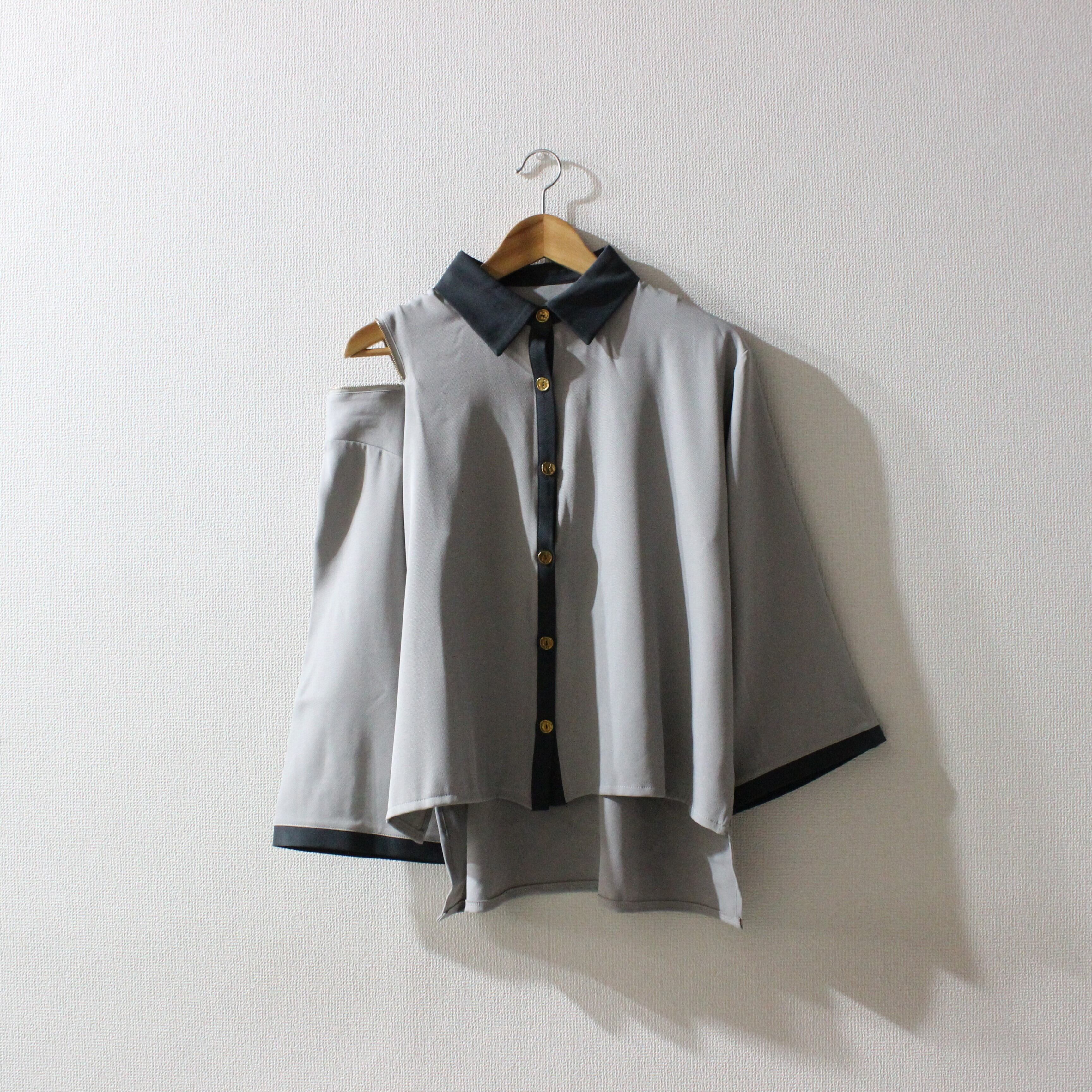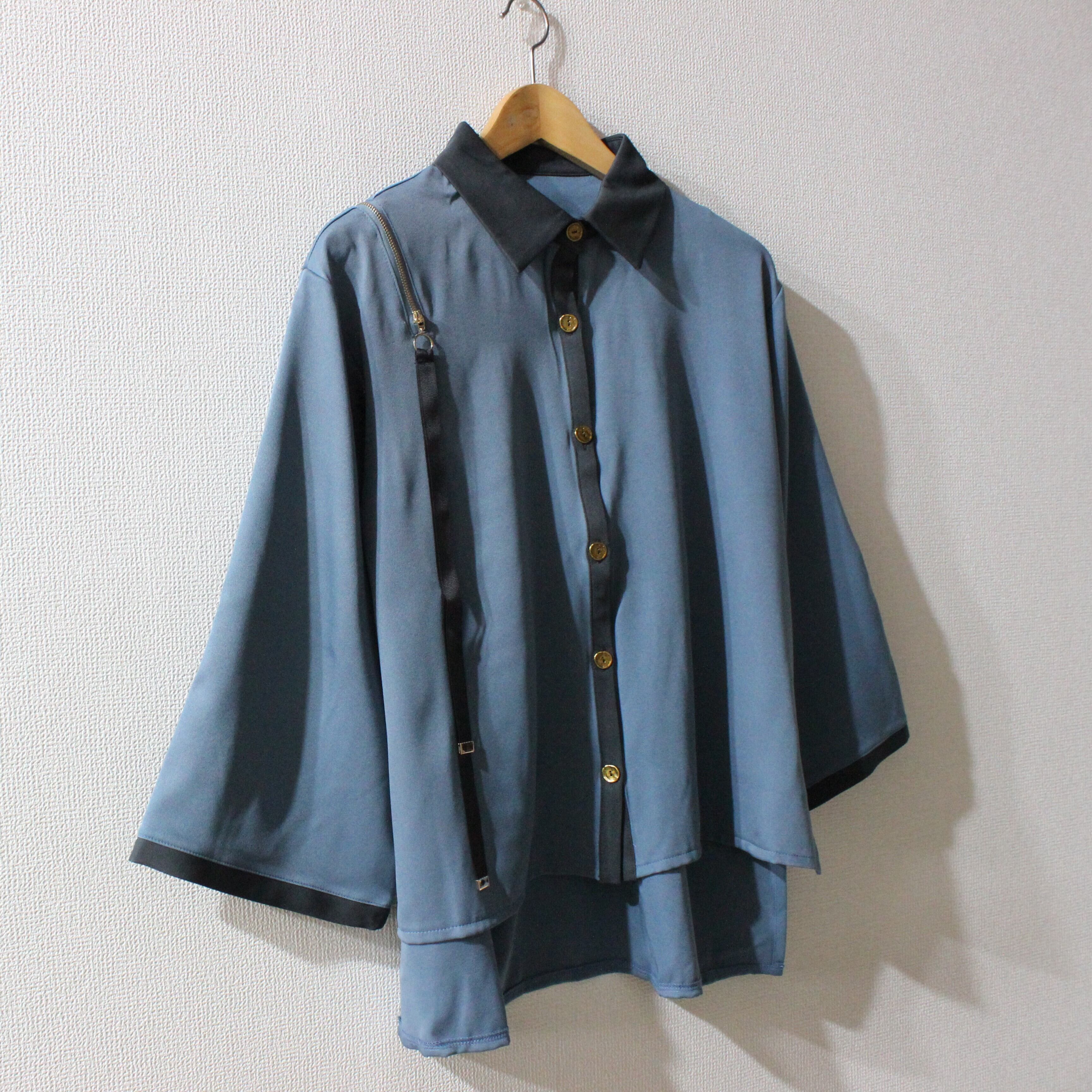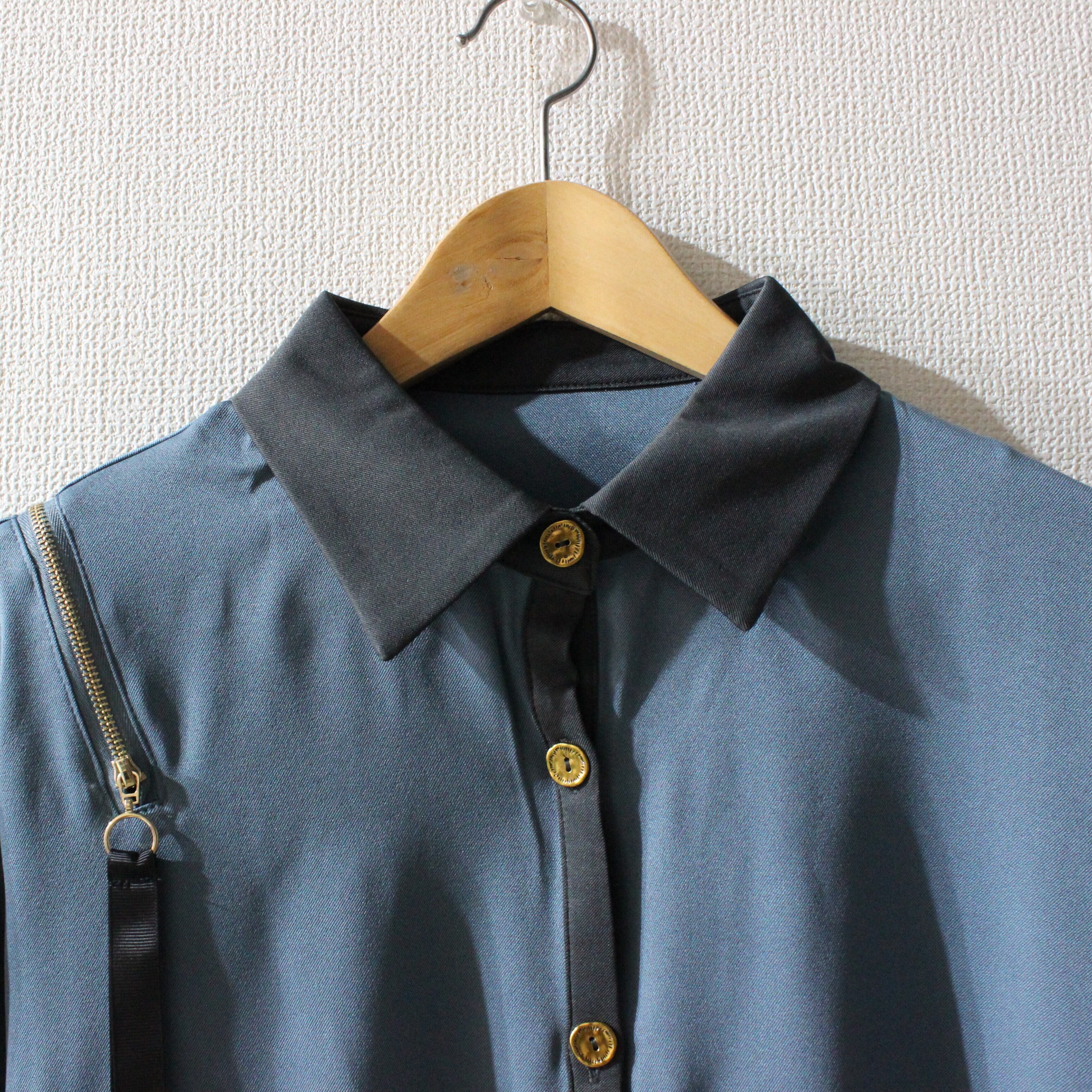 TREE OF HEARTソフトツイルショルダージップワイドスリーブブラウス