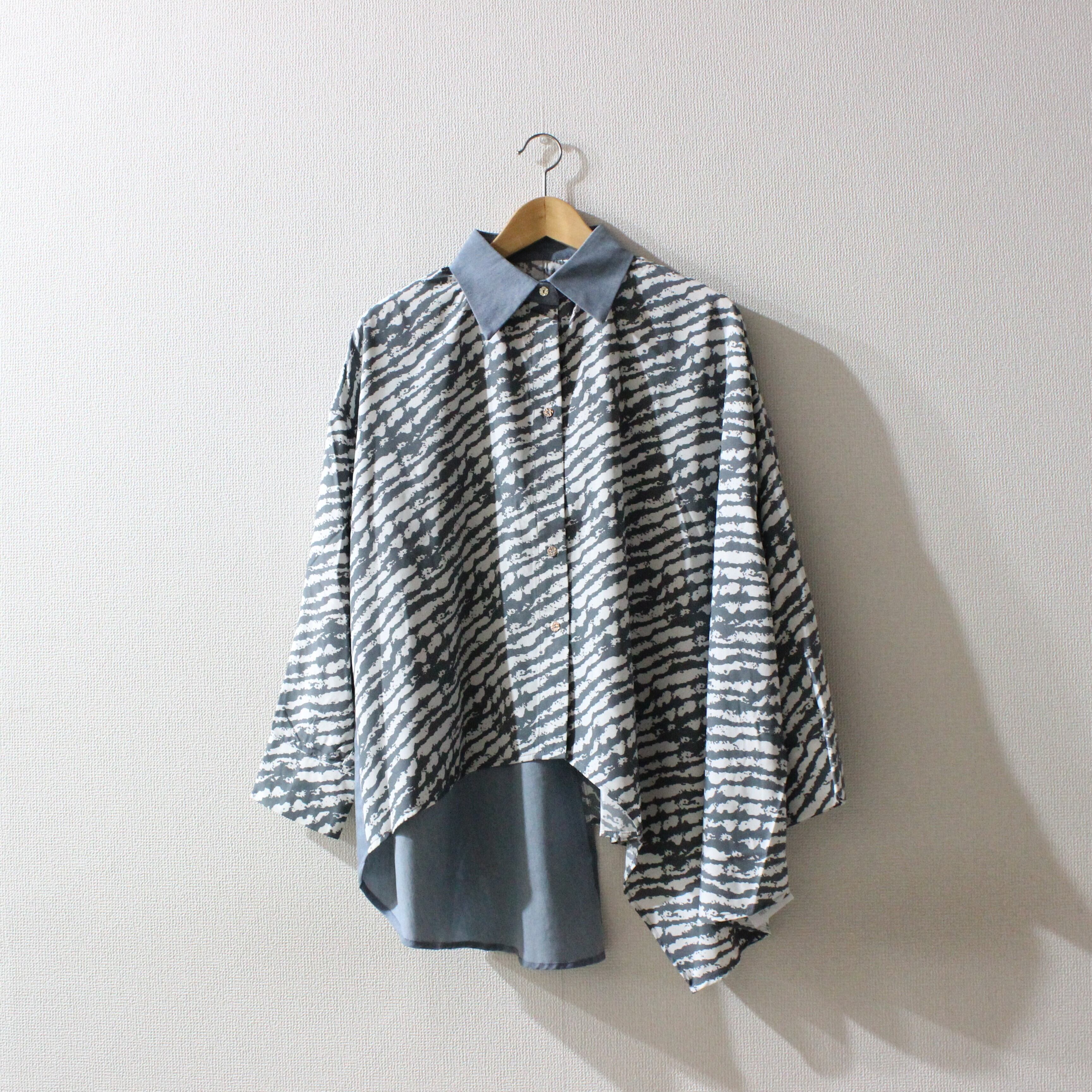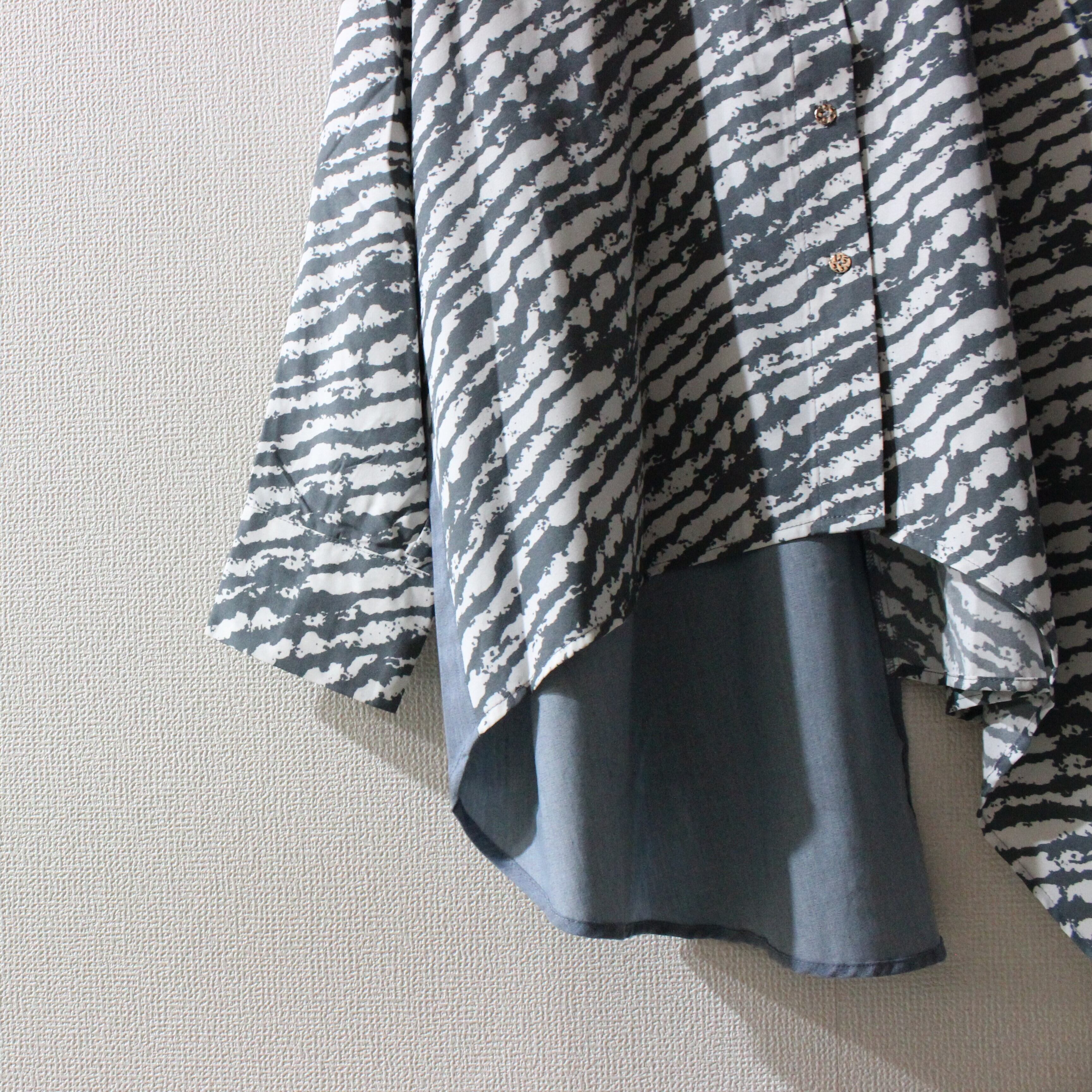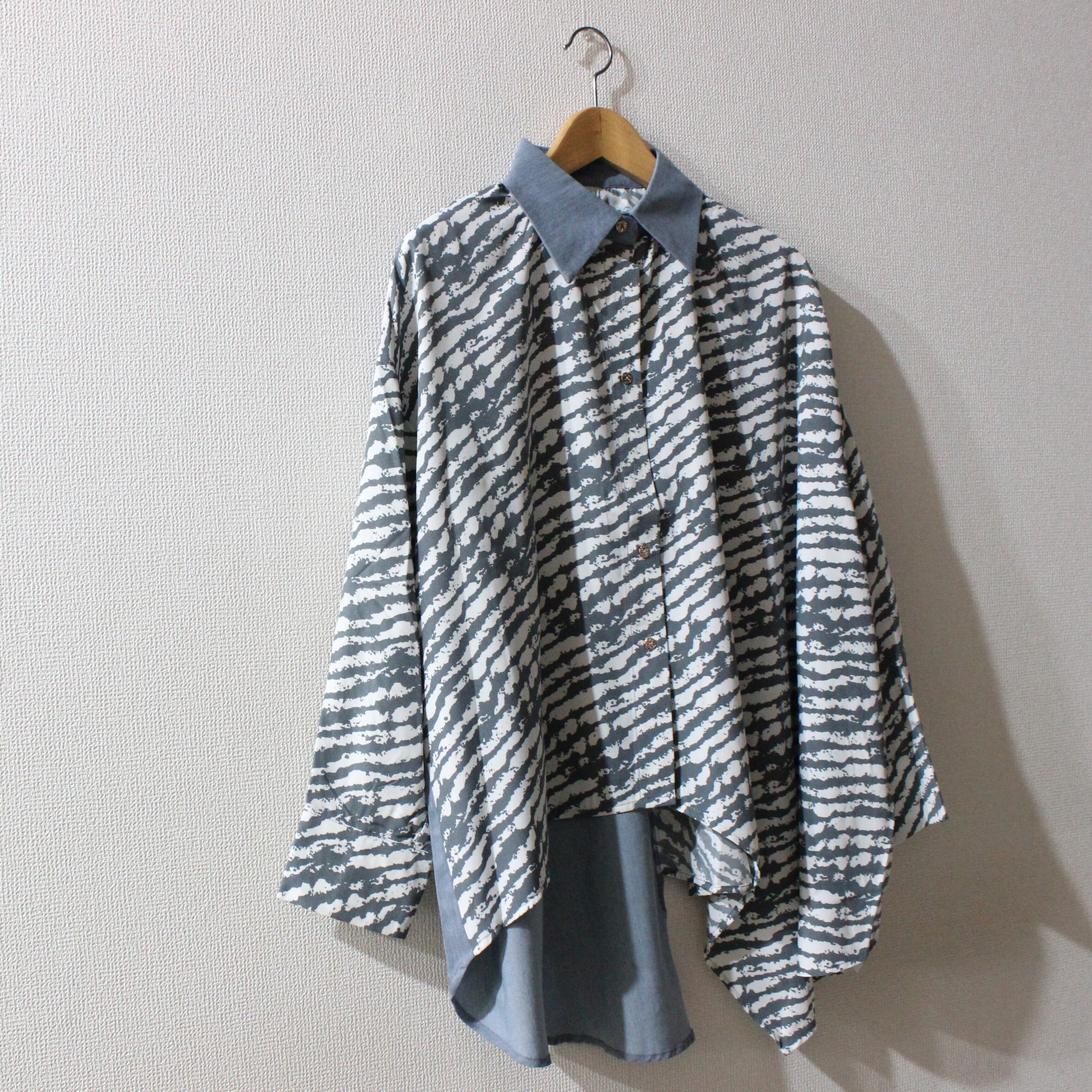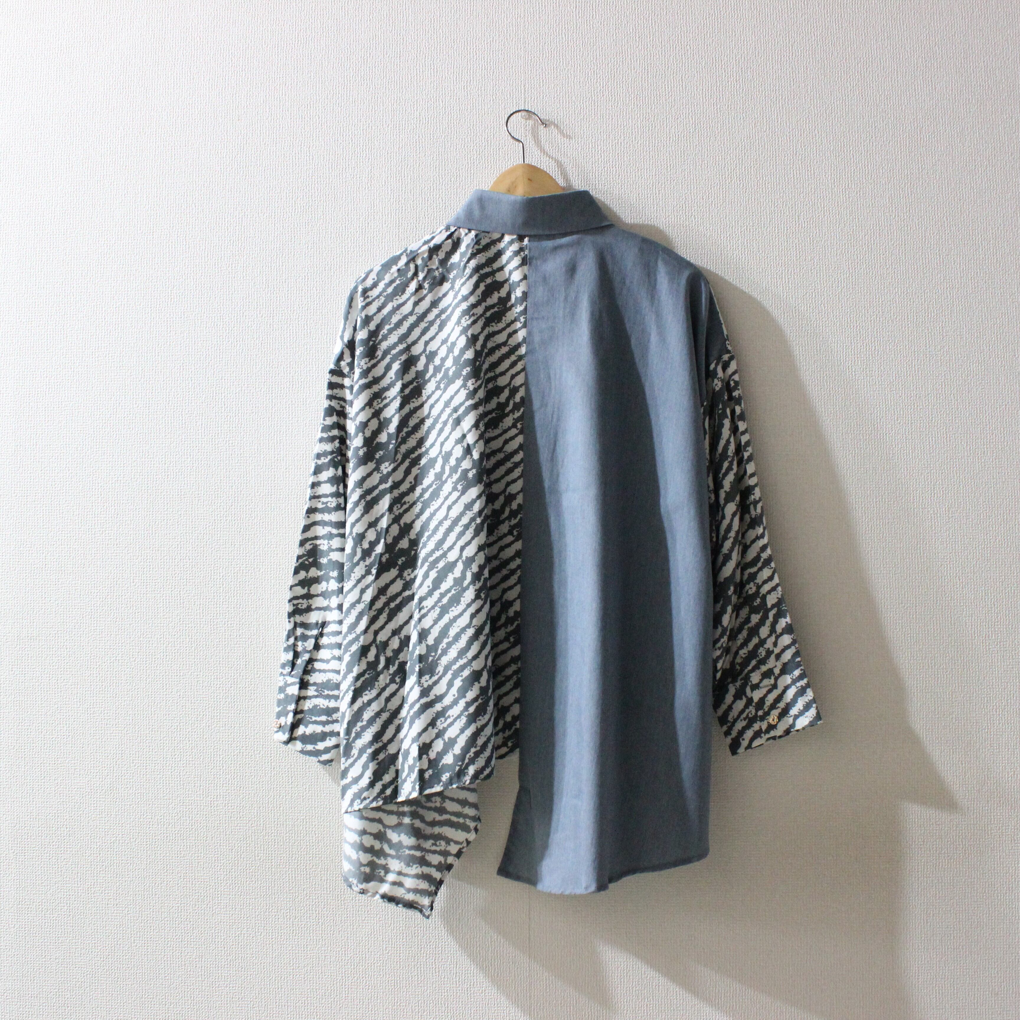 TREE OF HEARTジョーゼット×薄ソフトツイルアシメヘム異素材切替ブラウス