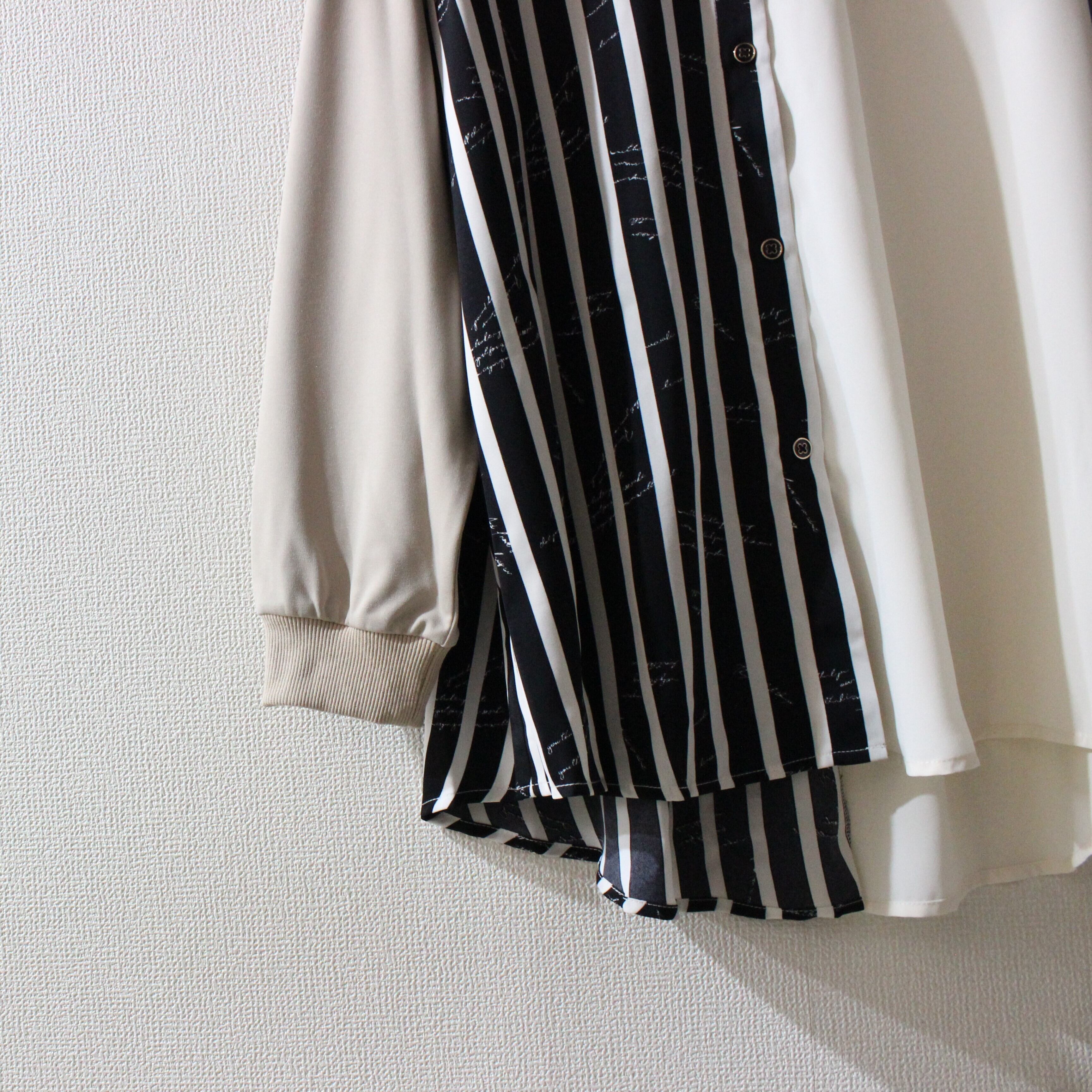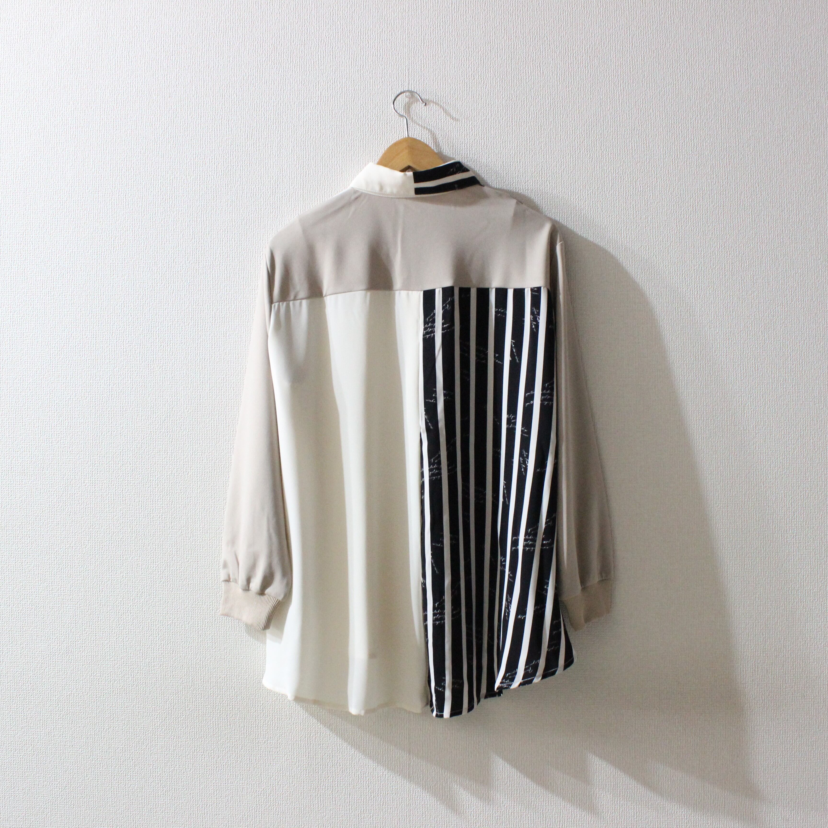 TREE OF HEARTポンチ×ジョーゼット異素材切替ストライプブラウス