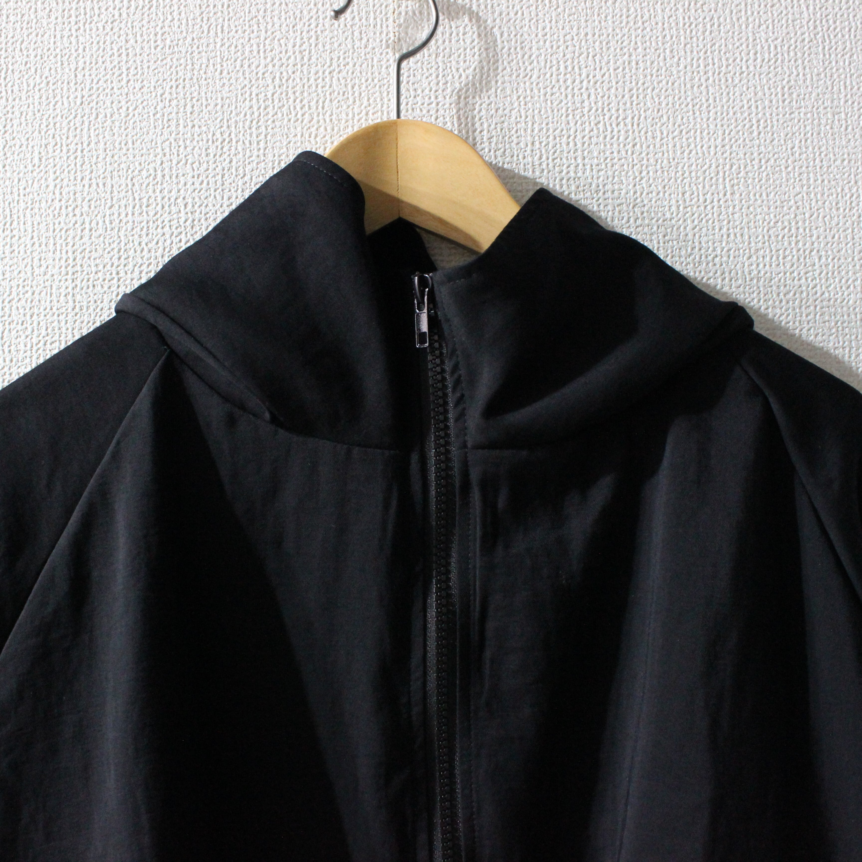 フードからつながりを見せるスタンドネックが