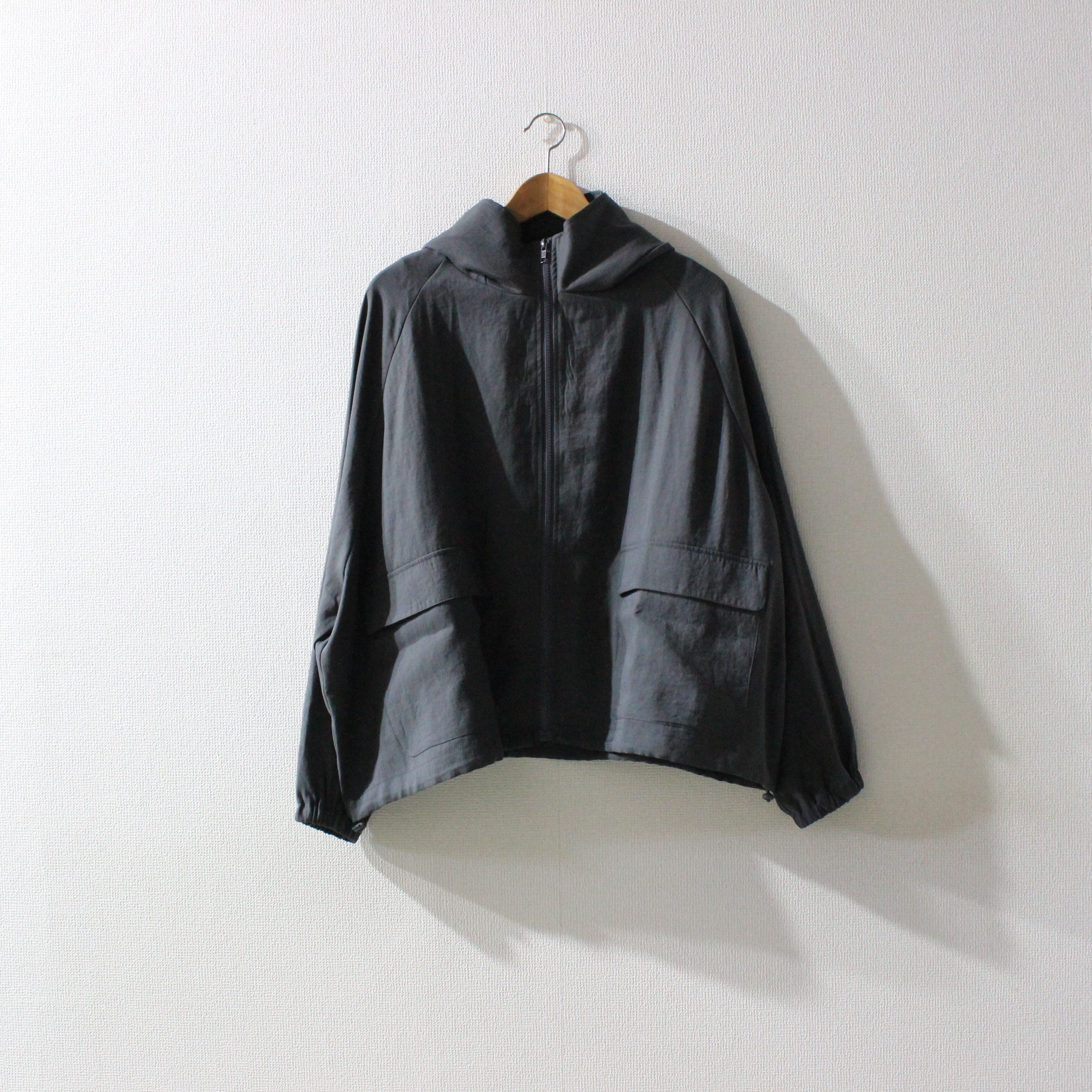 corailレーヨンナイロンスタンドフードジップアップジャケット