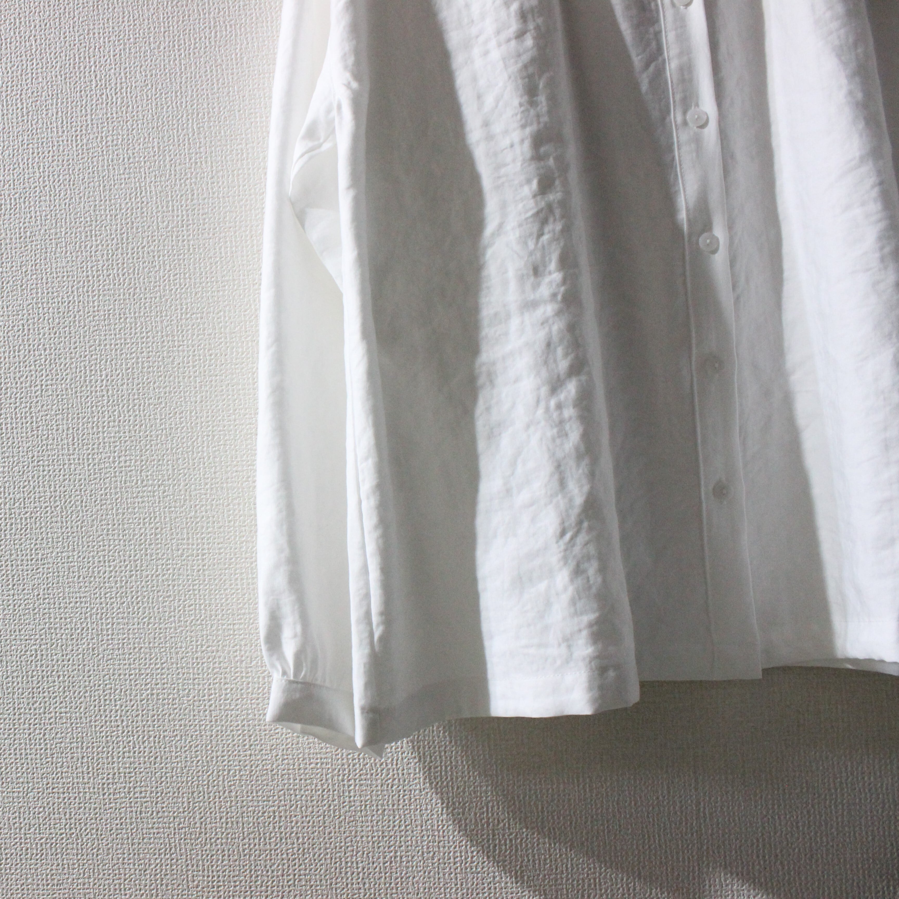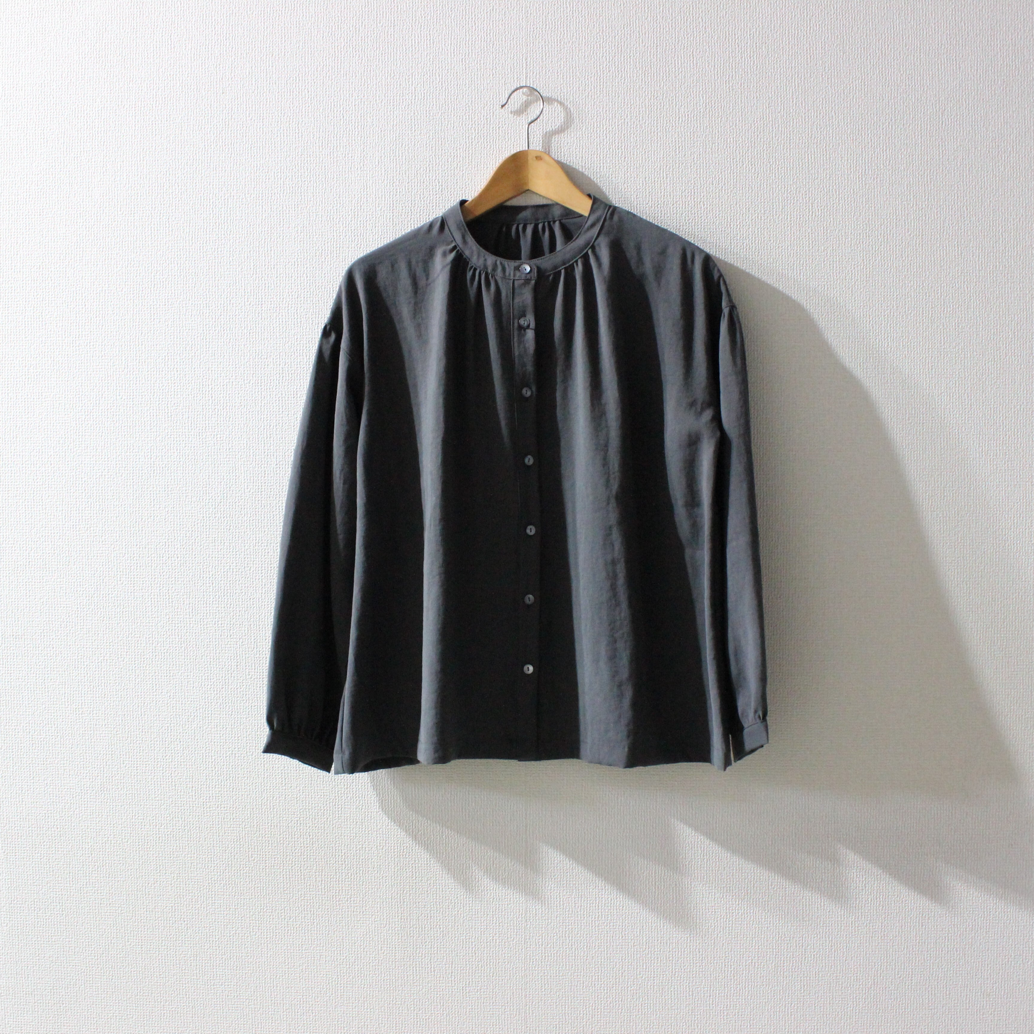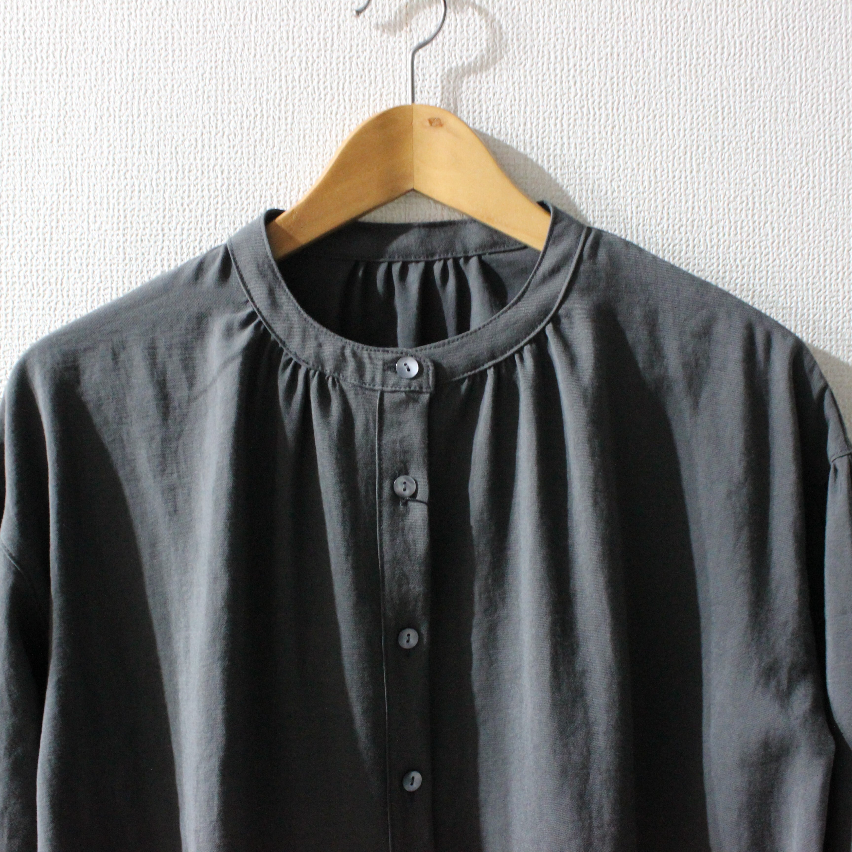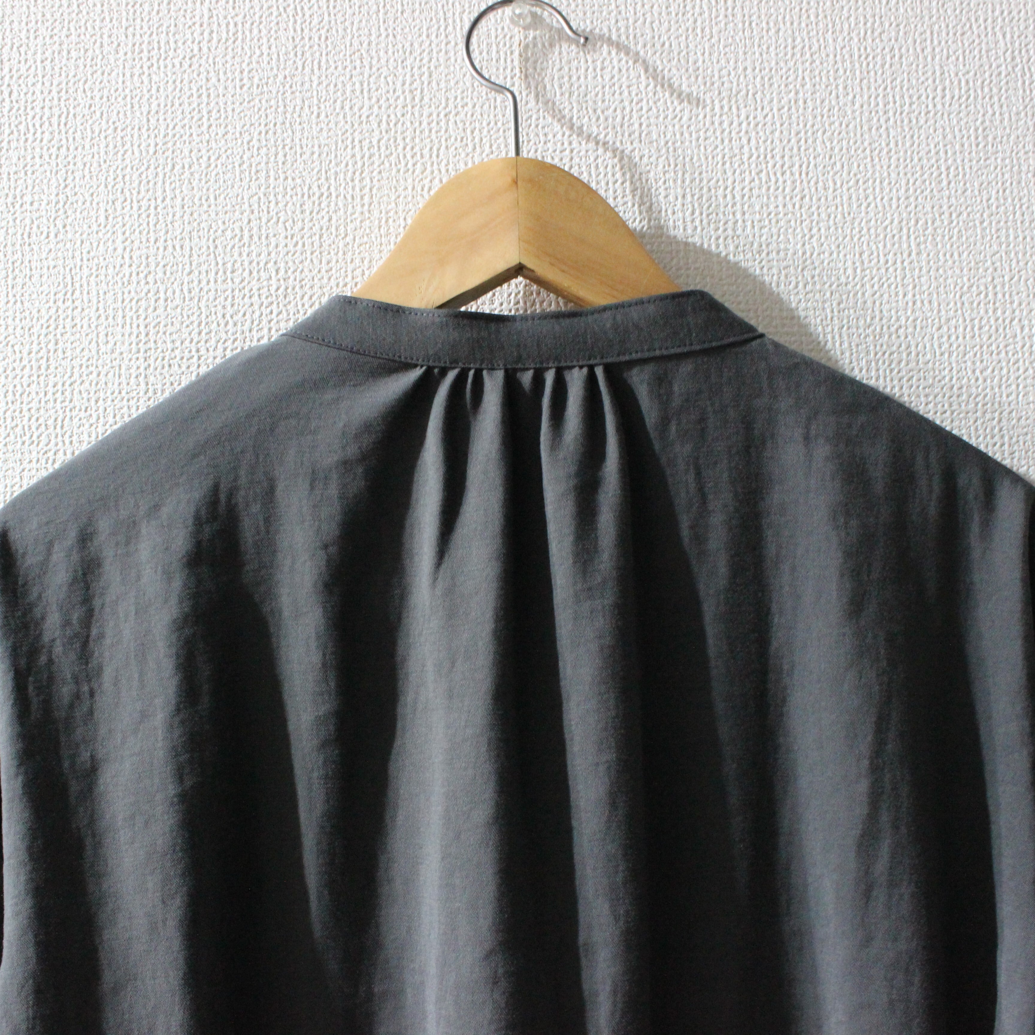 すっきりしたバンドカラーも上品な印象です。
