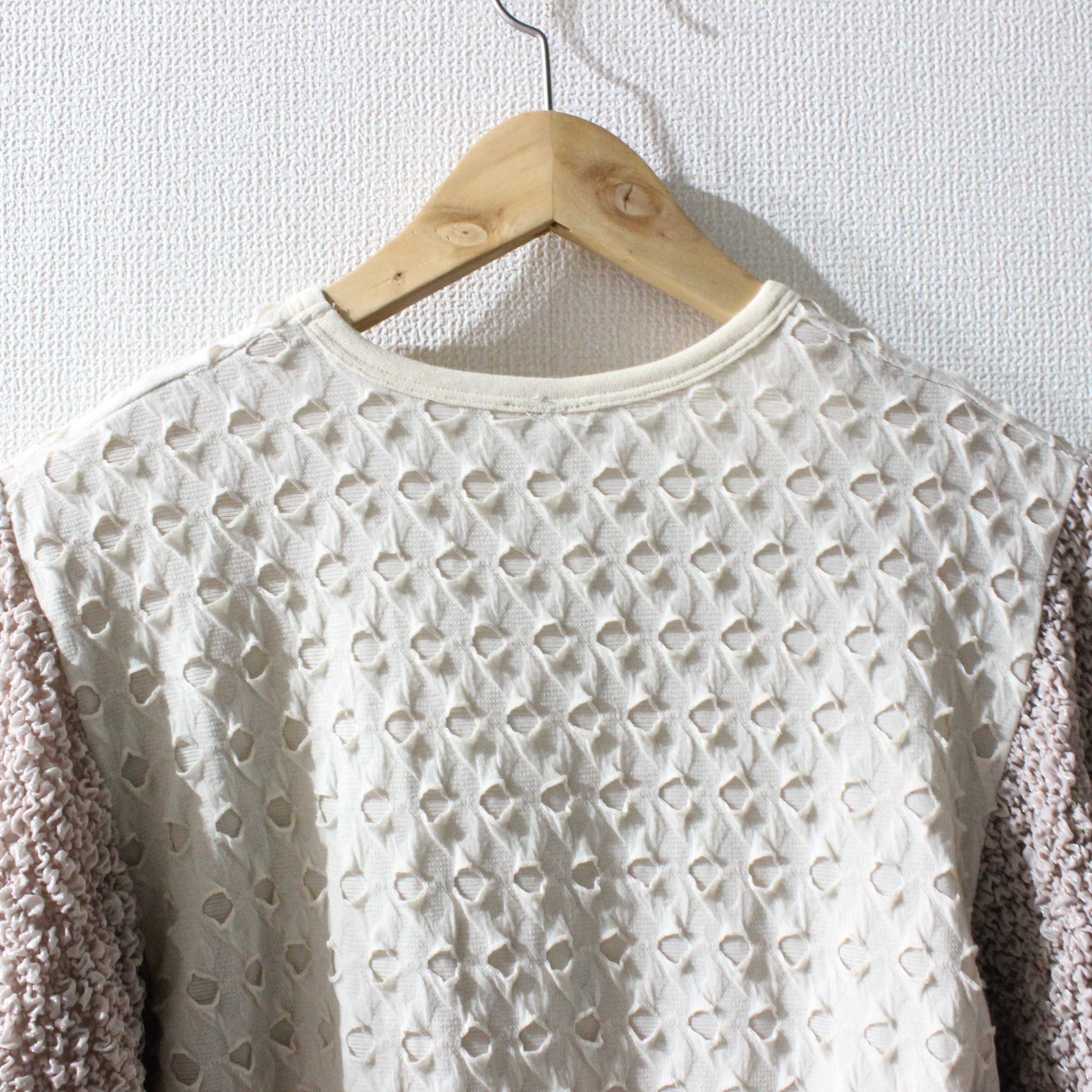 異なる素材で切り替えた袖や