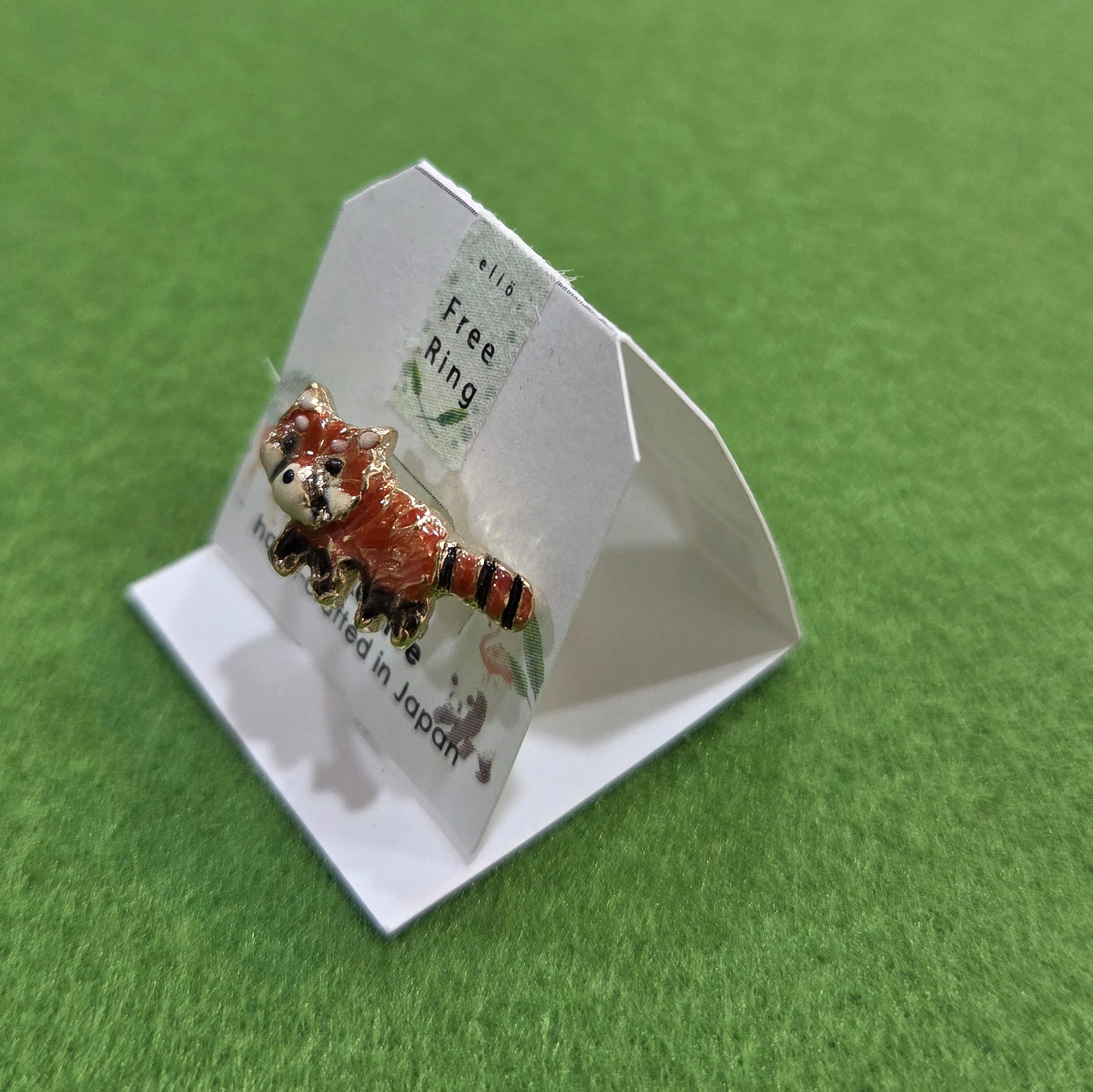 小さなレッサーパンダがこんにちはしてくれるかわいいリング。