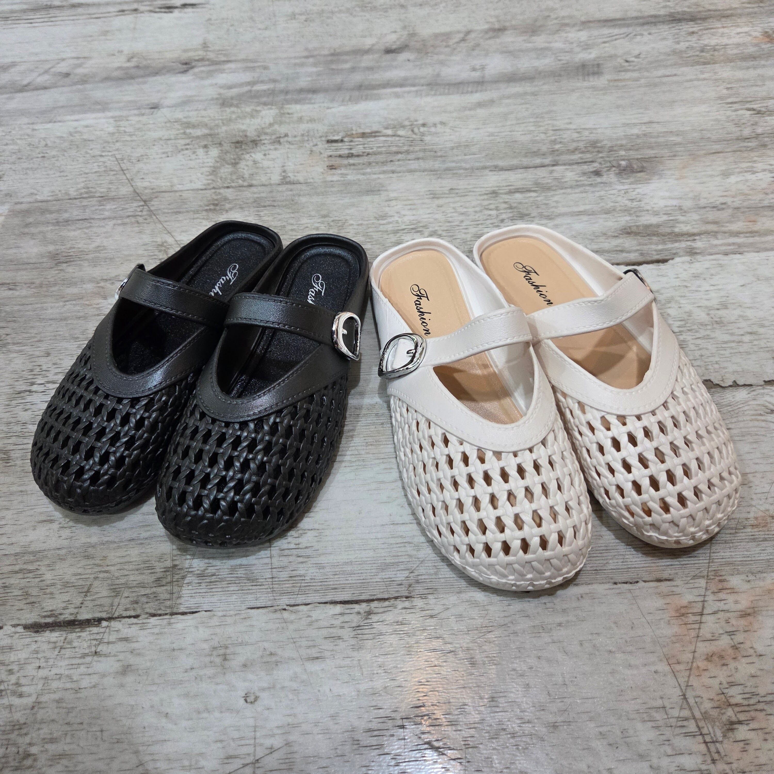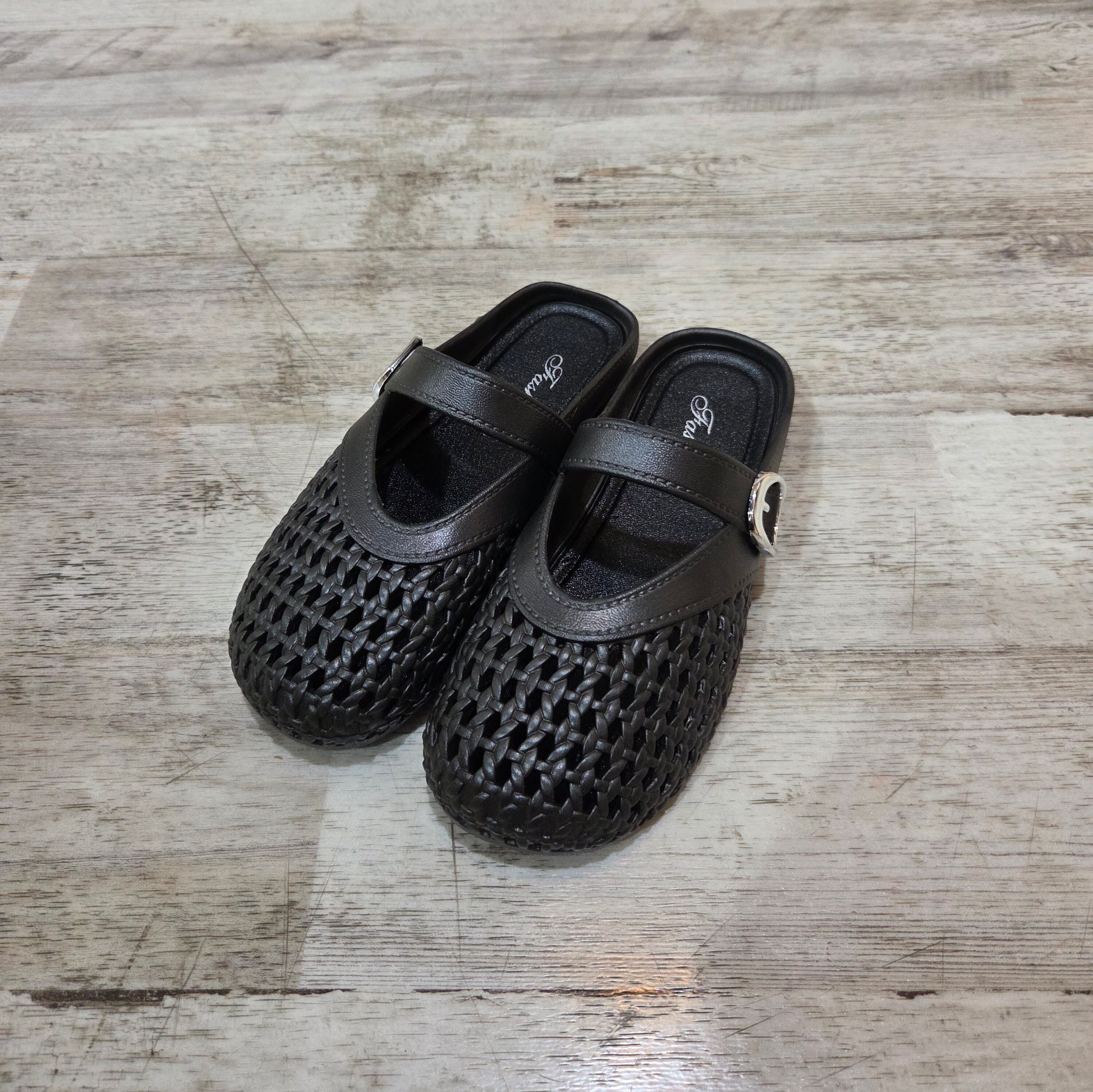 通気性のよい編み込みデザインで