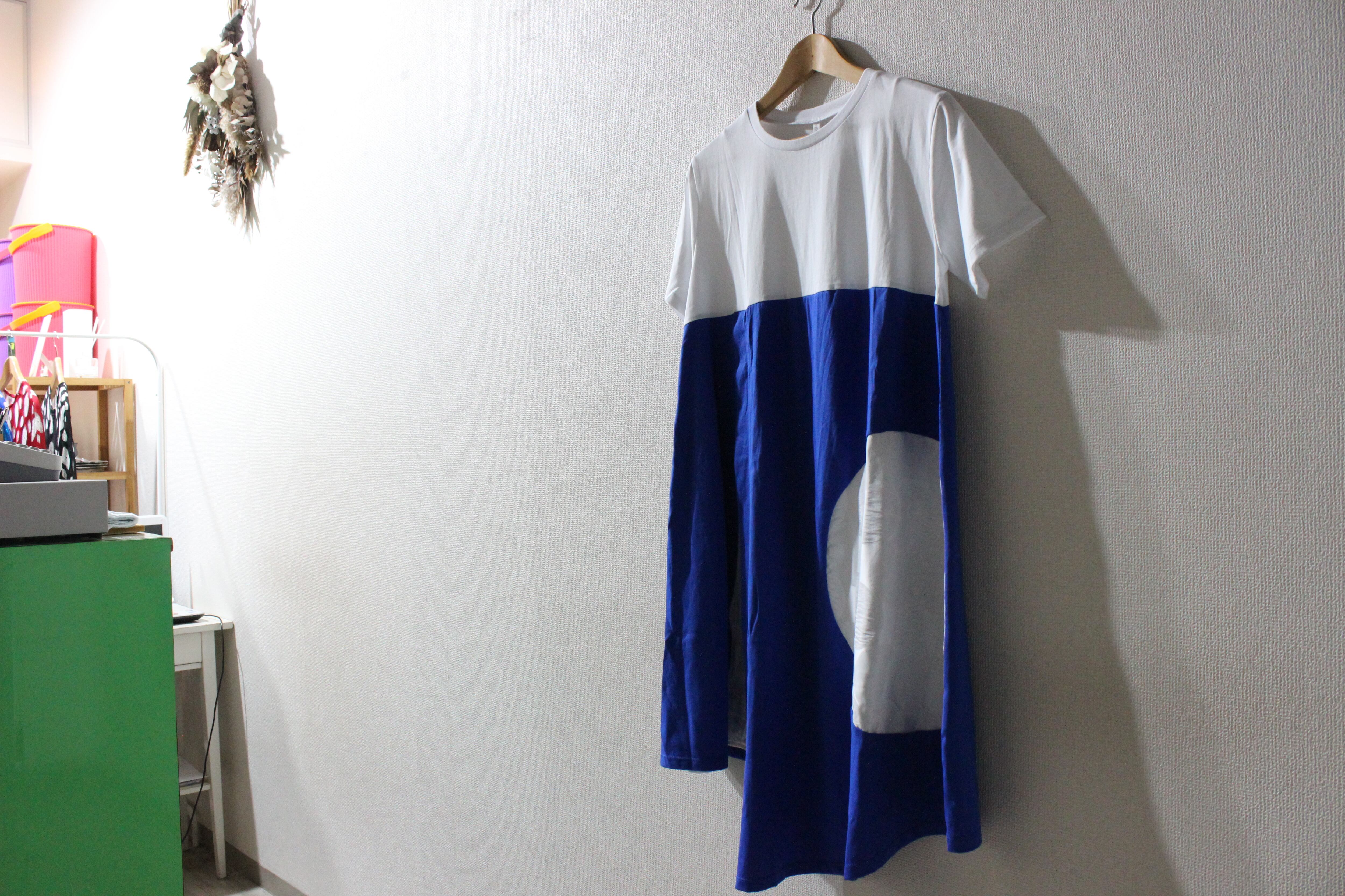 サークル切り替えが印象的なアシンメトリーワンピース。