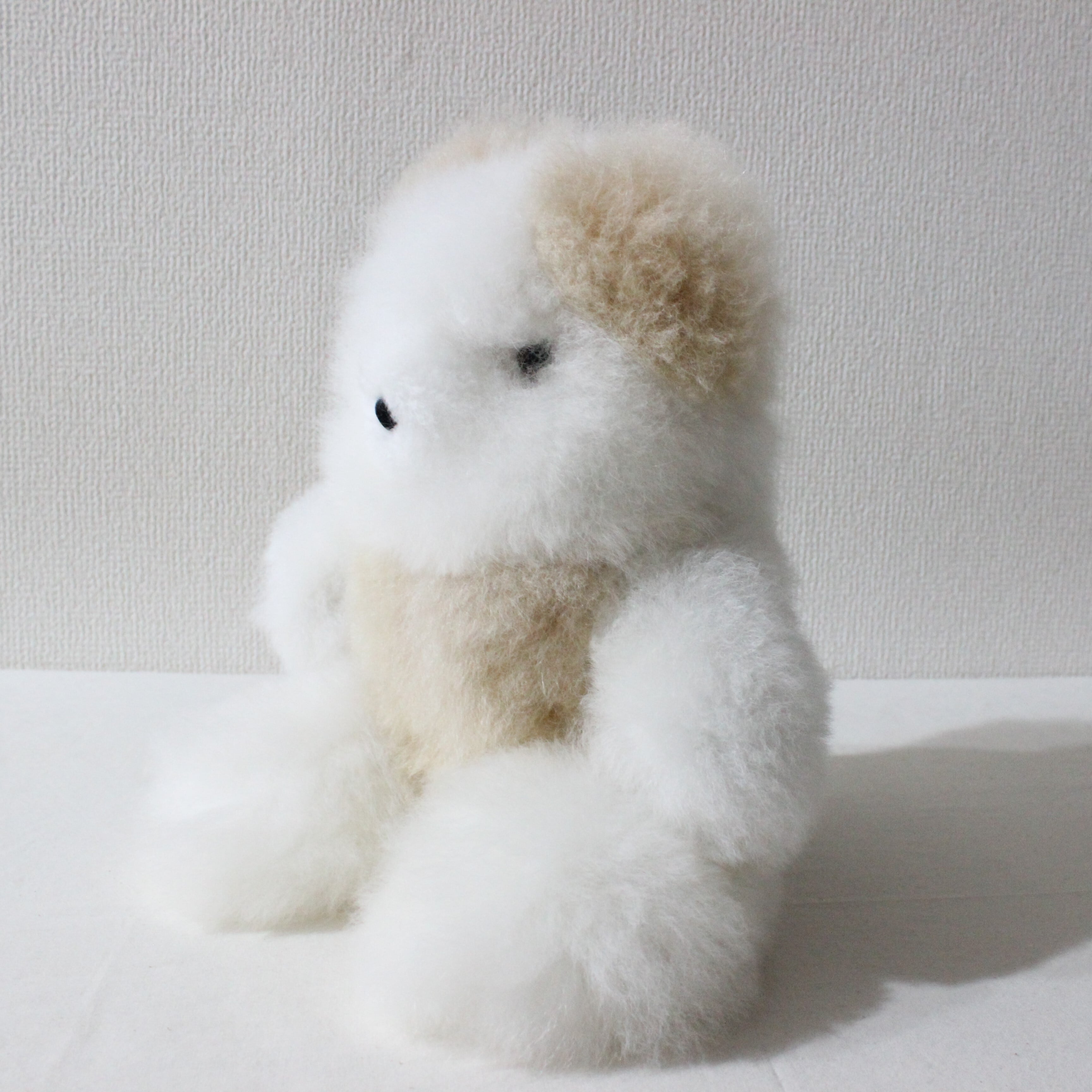 ベビーアルパカ製クマぬいぐるみオフホワイト×ライトベージュLサイズ