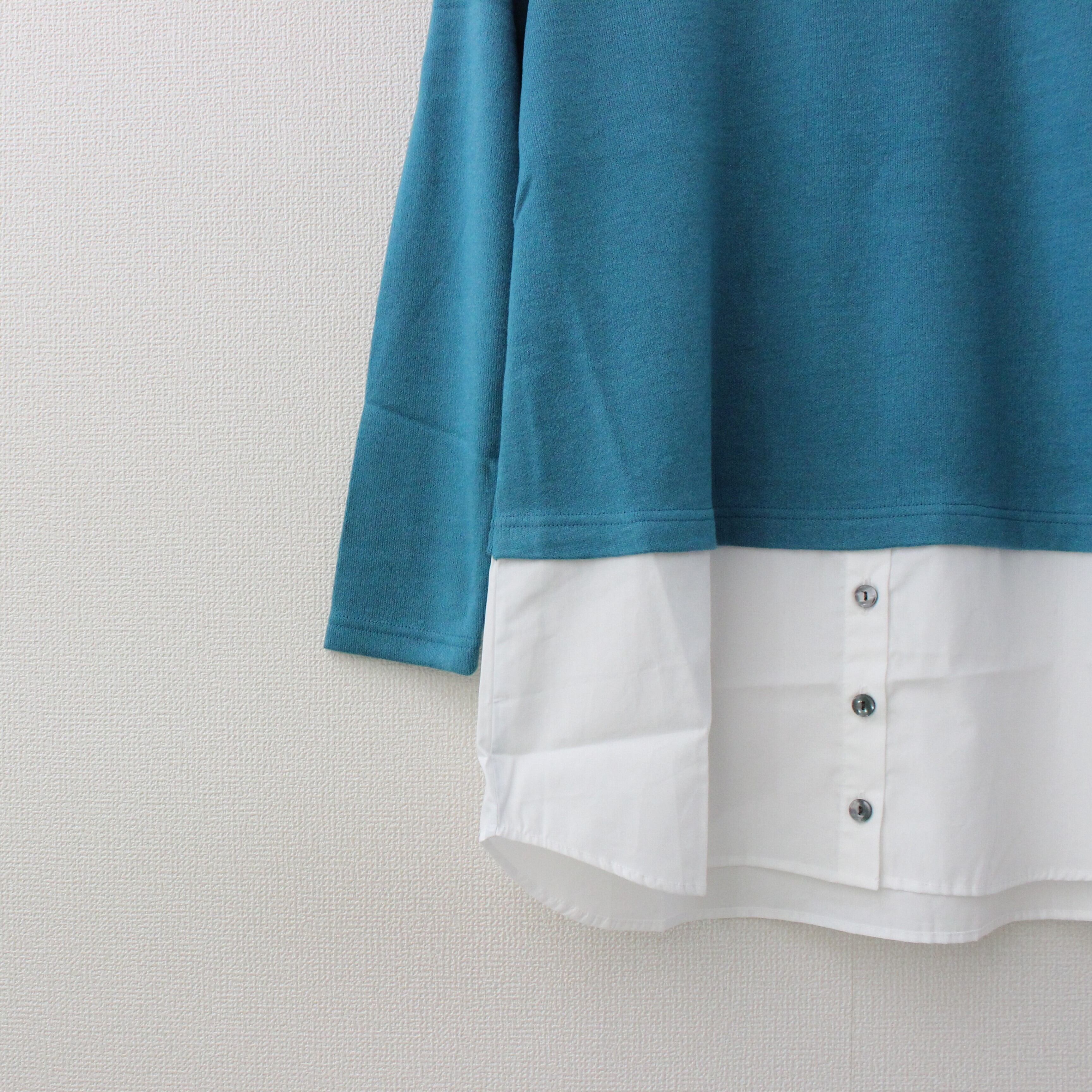 ブラウスの上にセーターを重ね着しているようなデザイントップスです。